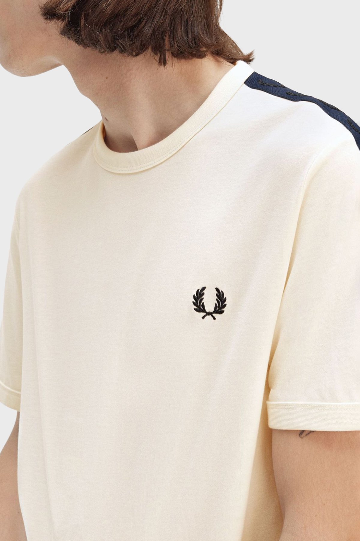 % 100 Pamuk Regular Fit Bisiklet Yaka Bant Detaylı Erkek T Shirt M4613 170 BEYAZ