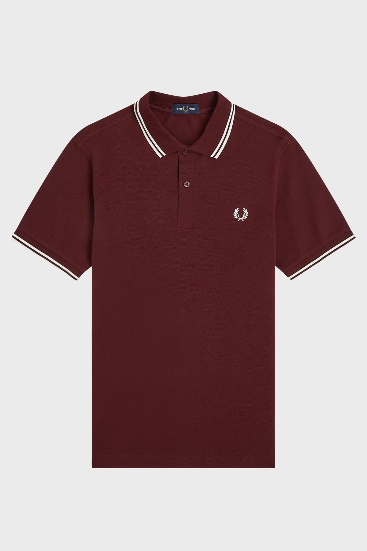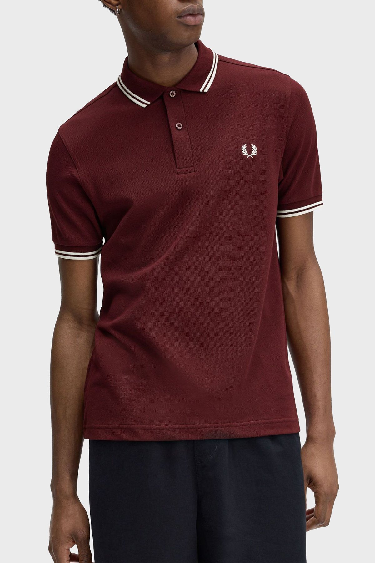 % 100 Pamuk Regular Fit Şerit Detaylı Düğmeli Erkek Polo Yaka T Shirt M3600 597 BORDO