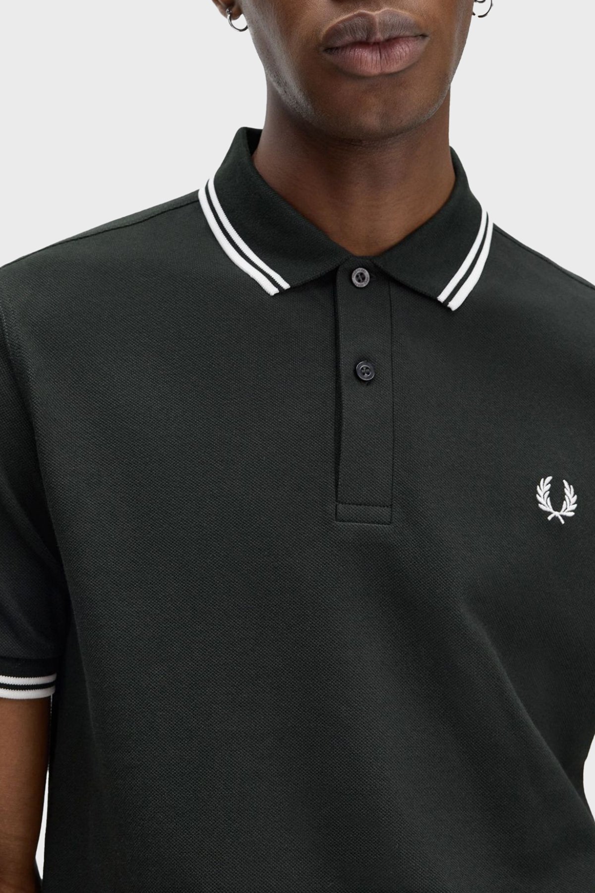 % 100 Pamuk Regular Fit Şerit Detaylı Düğmeli Erkek Polo Yaka T Shirt M3600 T50 KOYU YEŞİL