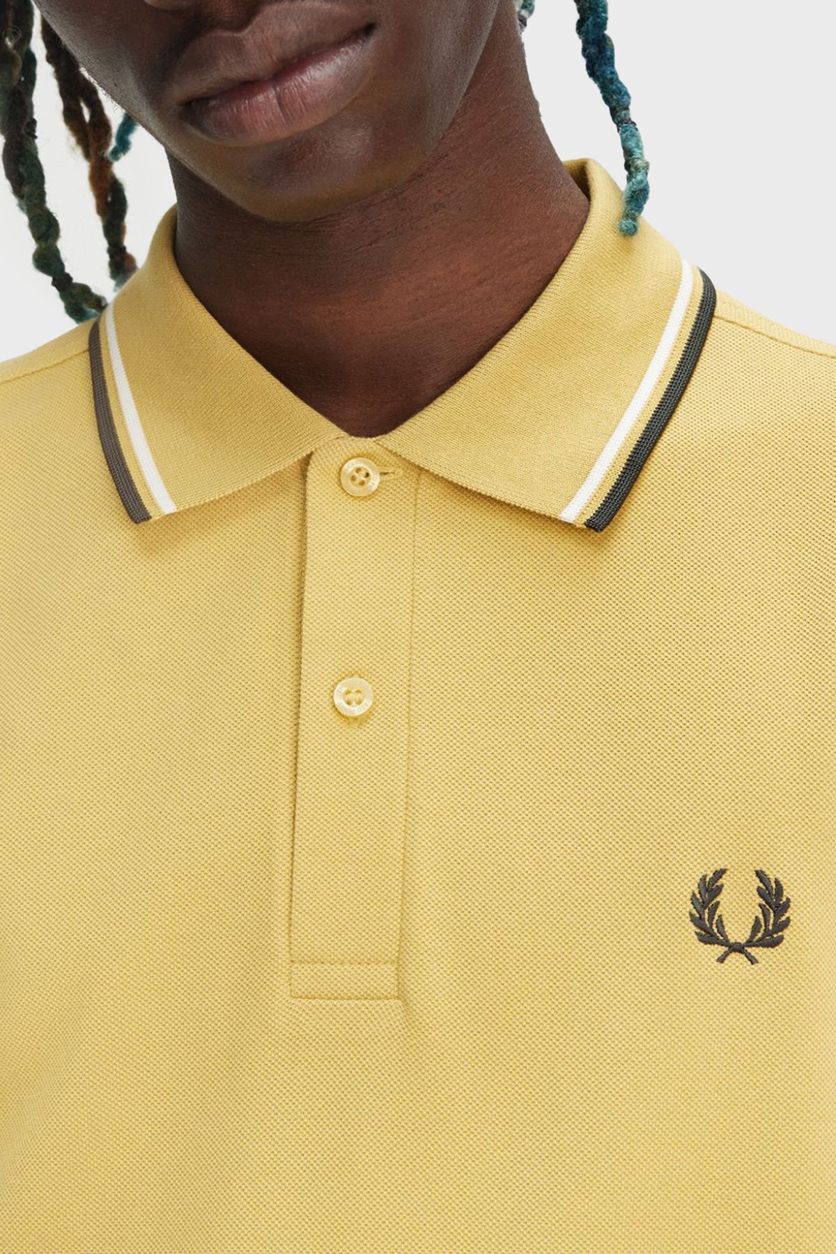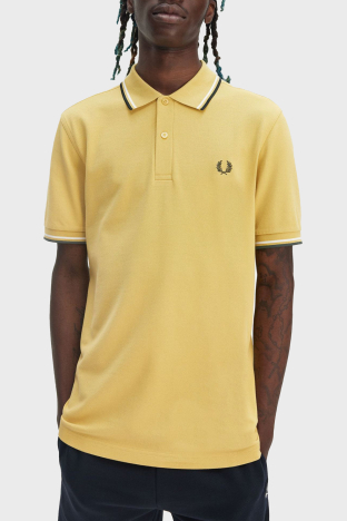 % 100 Pamuk Regular Fit Şerit Detaylı Düğmeli Erkek Polo Yaka T Shirt M3600 Y33 SARI