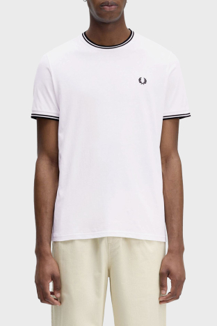 % 100 Pamuk Regular Fit Şerit Detaylı Sıfır Yaka Erkek T Shirt M1588 100 BEYAZ