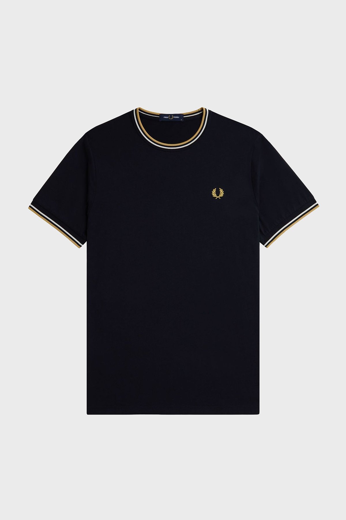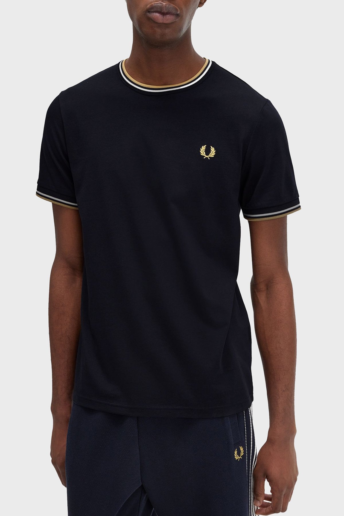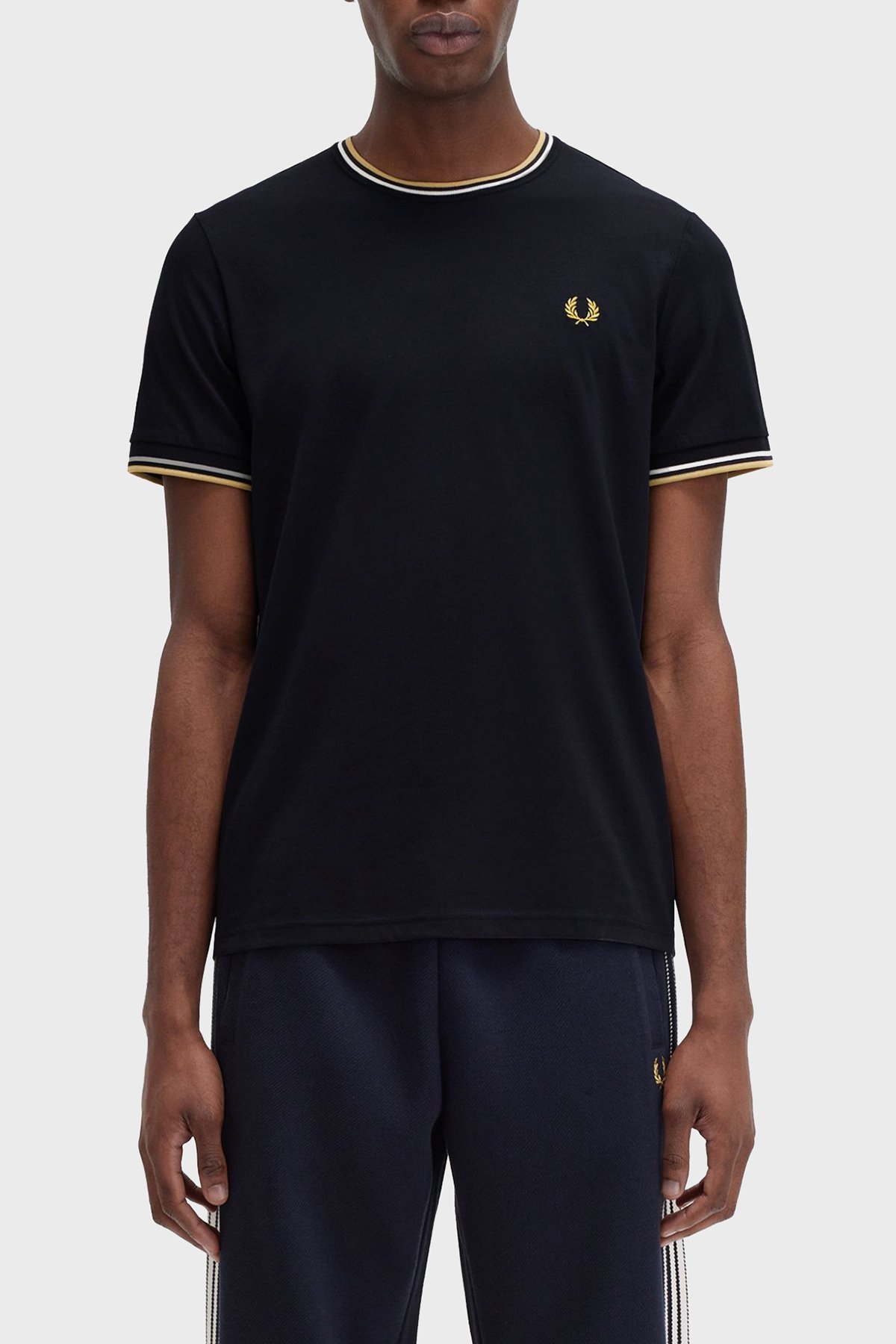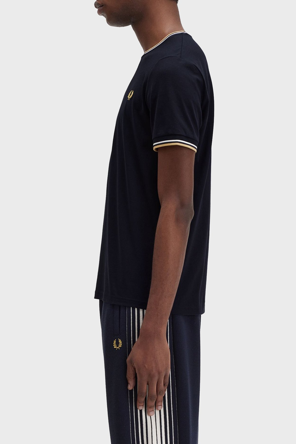 % 100 Pamuk Regular Fit Şerit Detaylı Sıfır Yaka Erkek T Shirt M1588 W53 LACİVERT