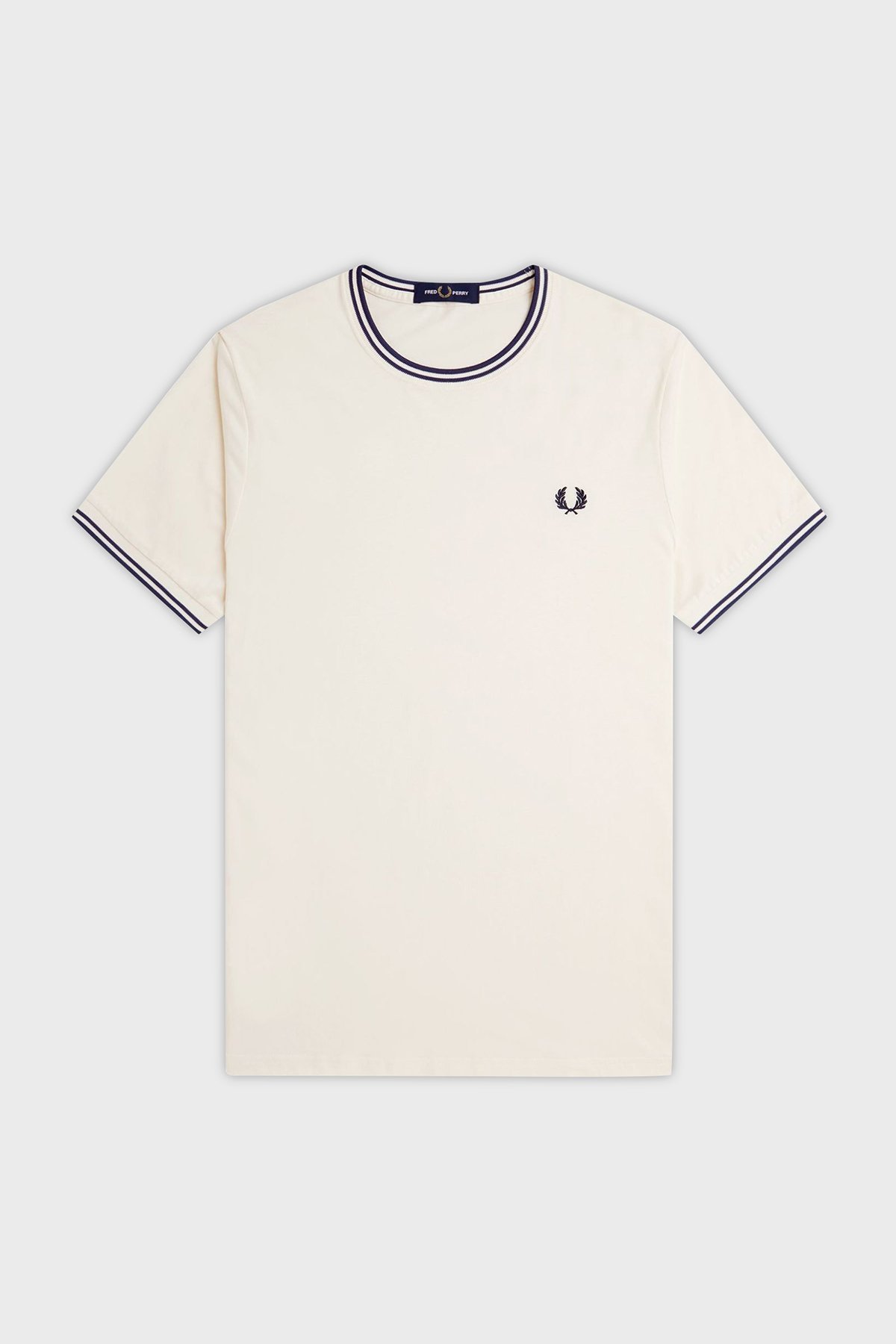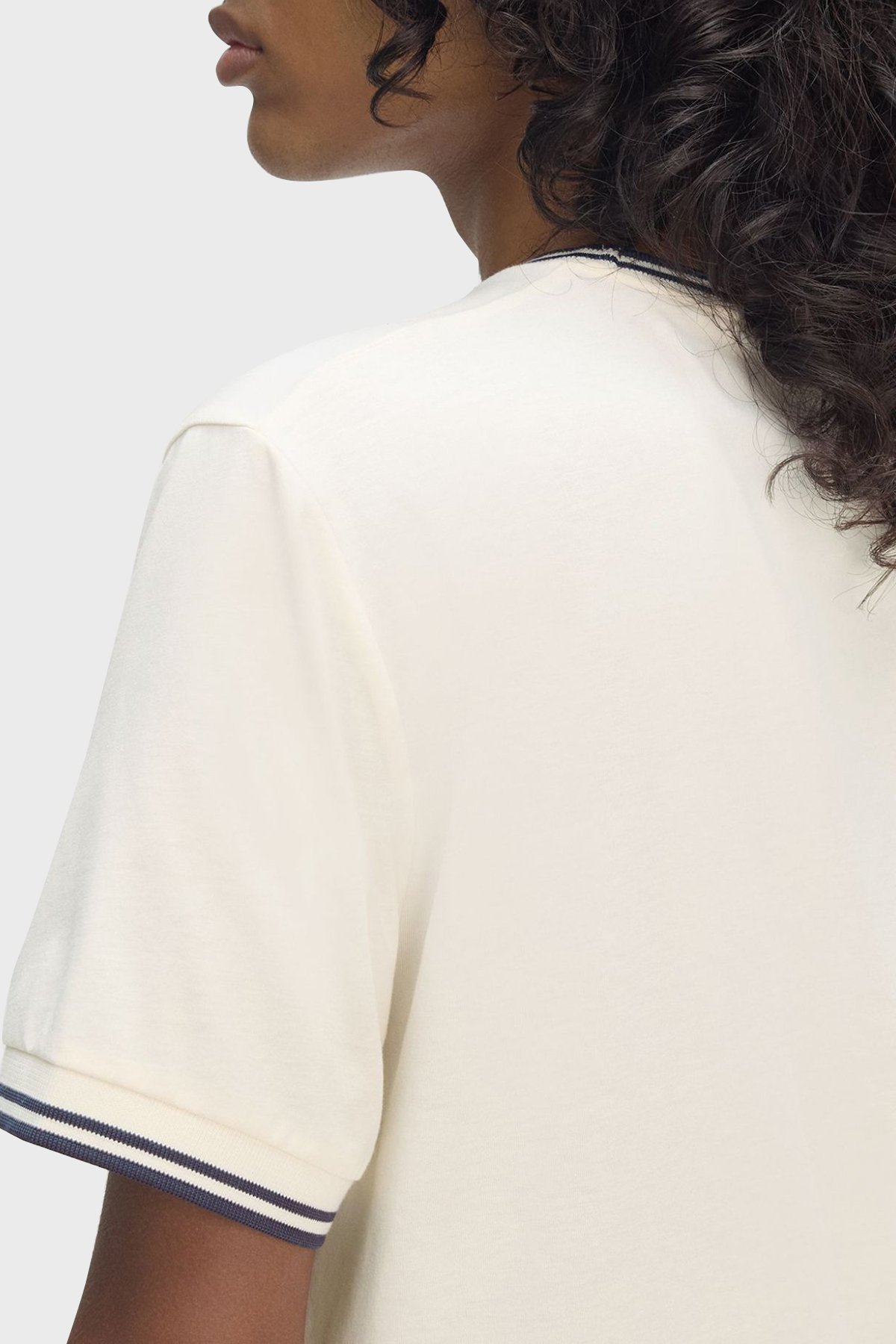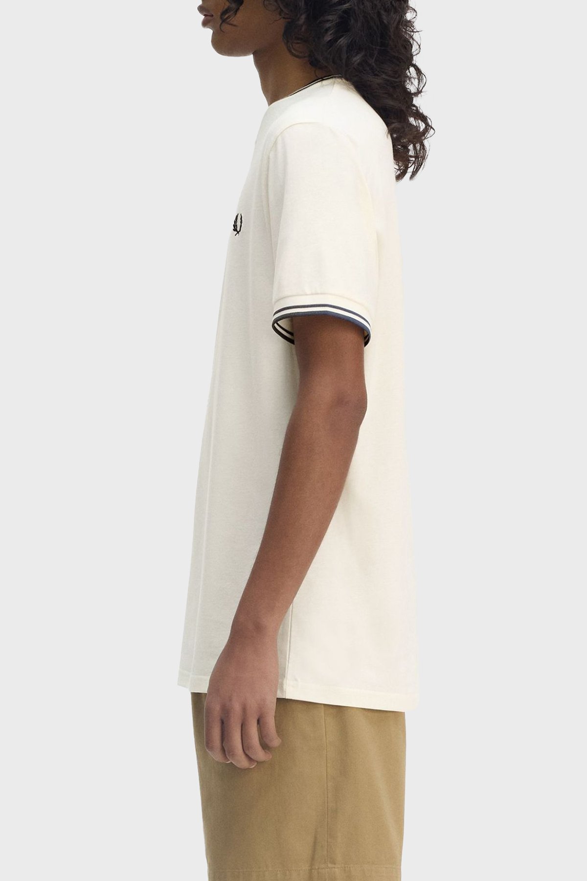 % 100 Pamuk Regular Fit Şerit Detaylı Sıfır Yaka Erkek T Shirt M1588 Y24 EKRU