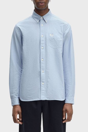 Logolu % 100 Pamuk Regular Fit Tek Cepli Düğmeli Yaka Erkek Gömlek M5516 146 AÇIK MAVİ