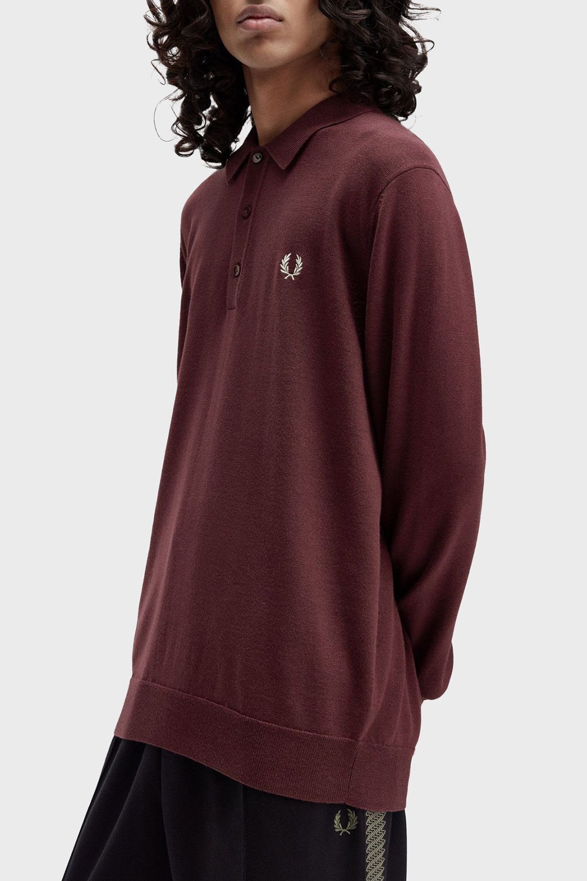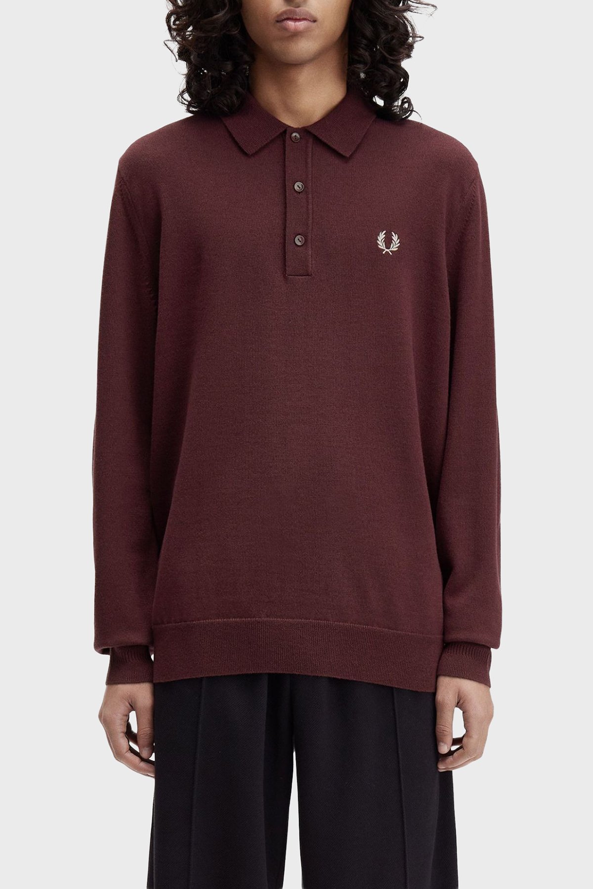 Logolu Yün Karışımlı Regular Fit Düğmeli Erkek Polo Yaka Kazak K4535 597 BORDO