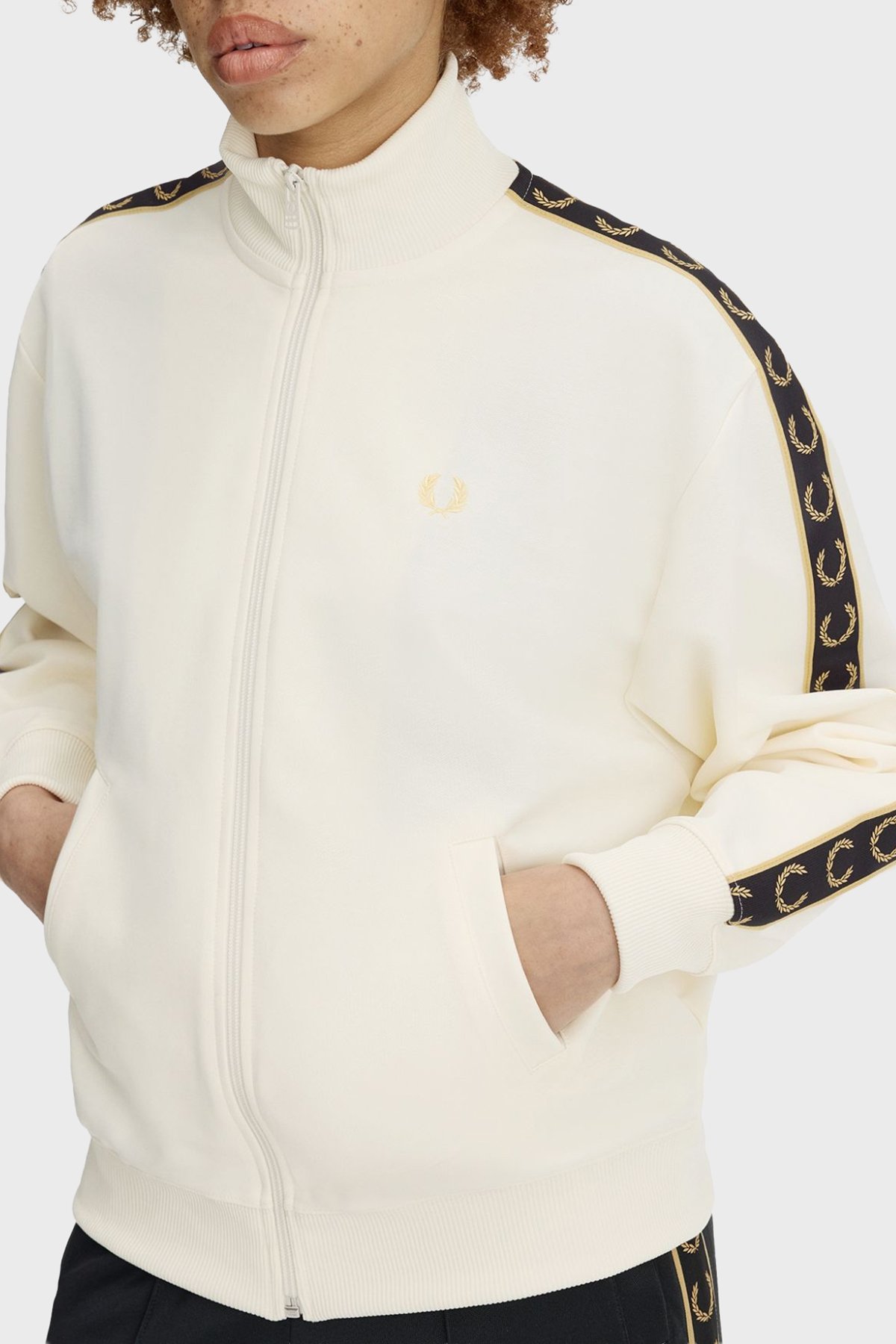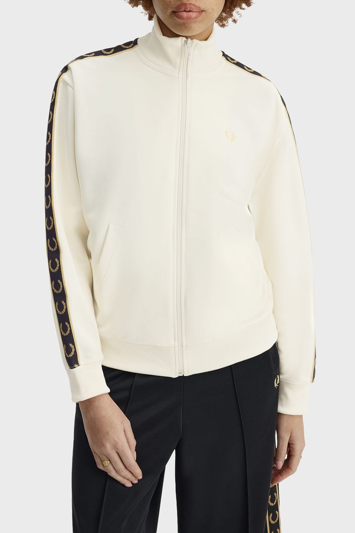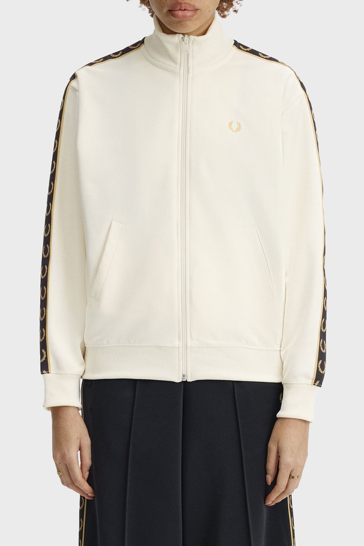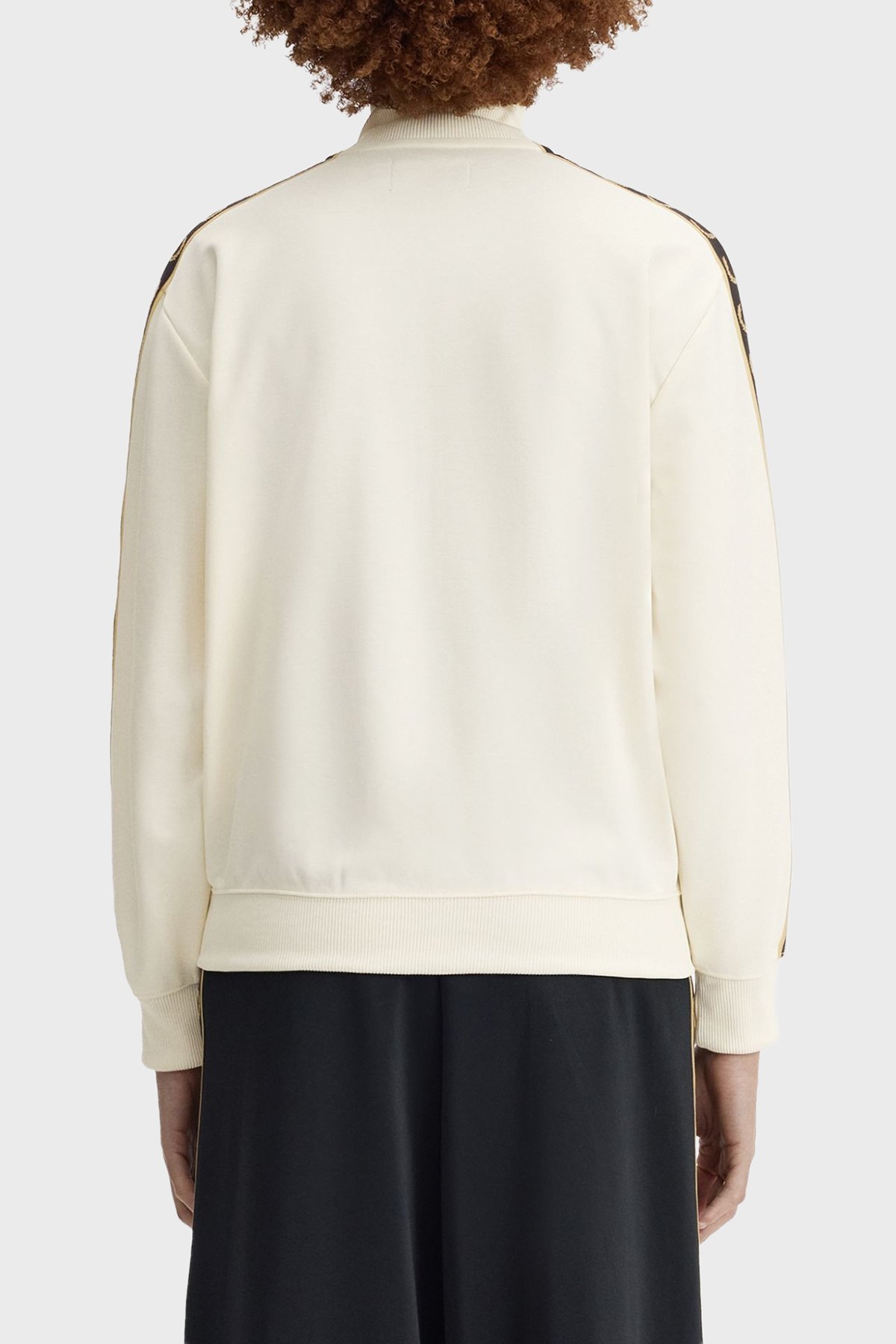 Pamuk Karışımlı Relaxed Fit Logo şeritli Dik Yaka Fermuarlı Bayan Sweat J9100 560 EKRU