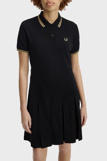 Pamuklu Regular Fit Logolu Düğmeli Polo Yaka Pileli Bayan Elbise D1177 90A SİYAH