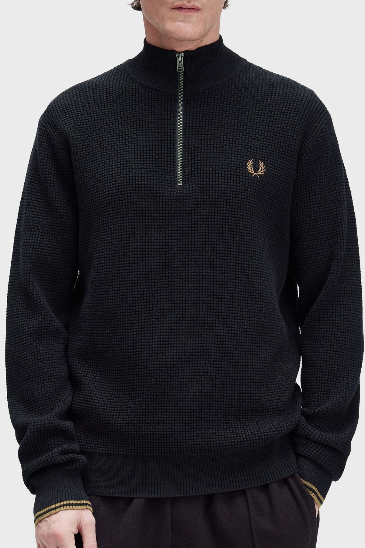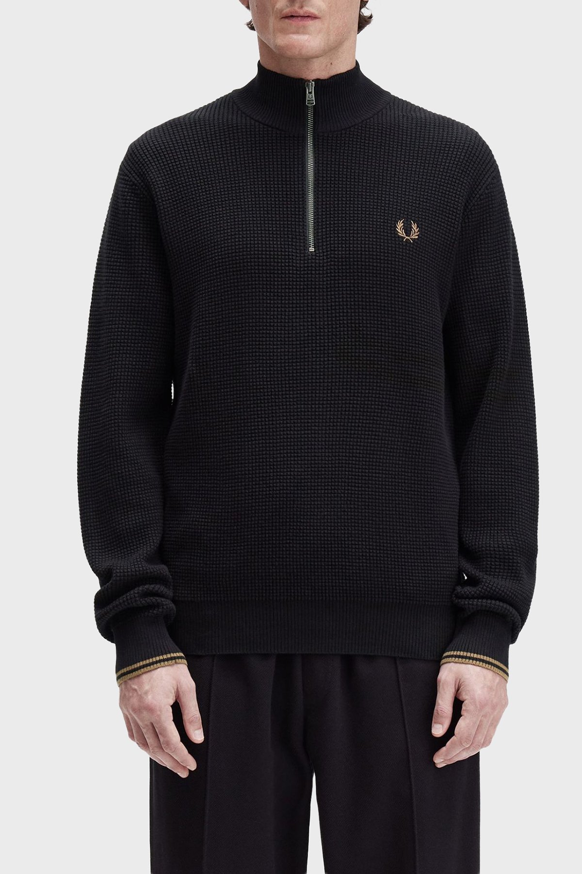 Pamuklu Regular Fit Yarım Fermuarlı Dik Yaka Yivli Erkek Sweat K8557 102 SİYAH