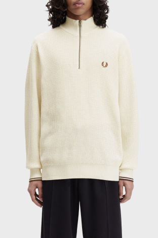 Pamuklu Regular Fit Yarım Fermuarlı Dik Yaka Yivli Erkek Sweat K8557 560 BEYAZ