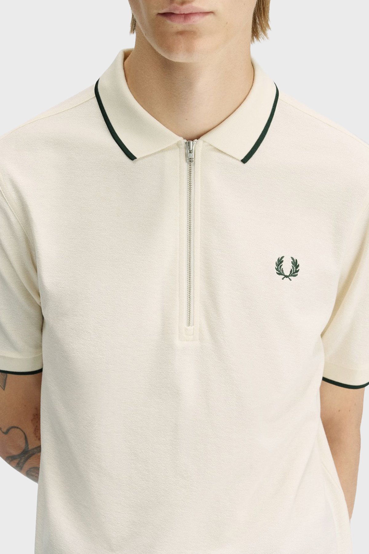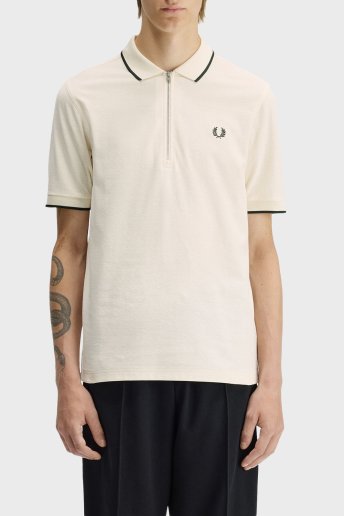 Şerit Detaylı % 100 Pamuk Regular Fit Yarım Fermuarlı Erkek Polo M2383 560 EKRU
