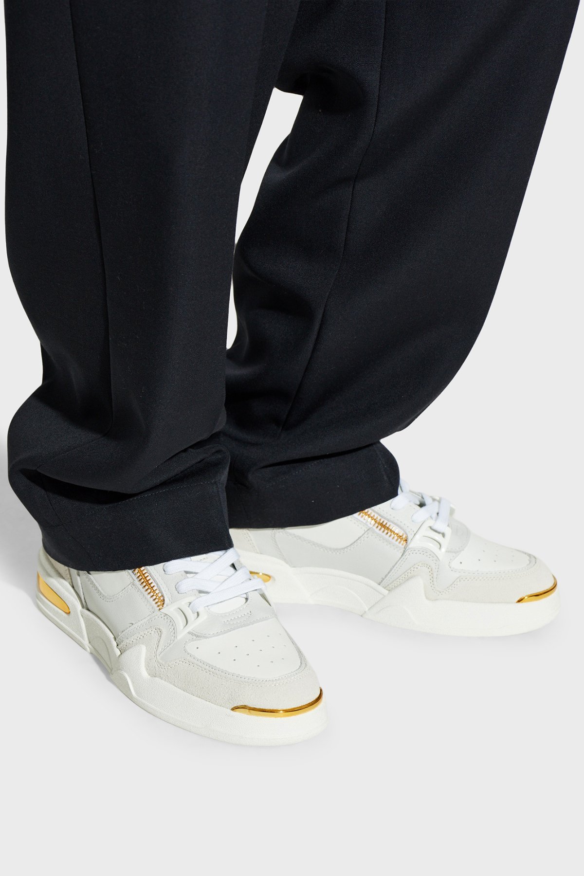 Fermuar Detaylı Deri Sneaker Erkek Ayakkabı RU50015-002 BEYAZ-GRİ