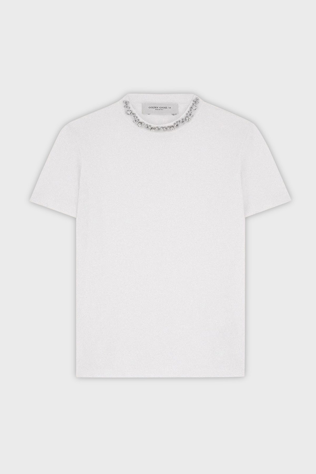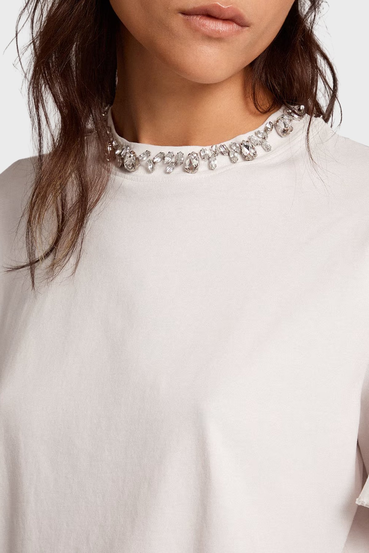 Pamuklu Regular Fit Parlak Taşlı Sıfır Yaka Bayan T Shirt GWP01220.P000673.10363 BEYAZ
