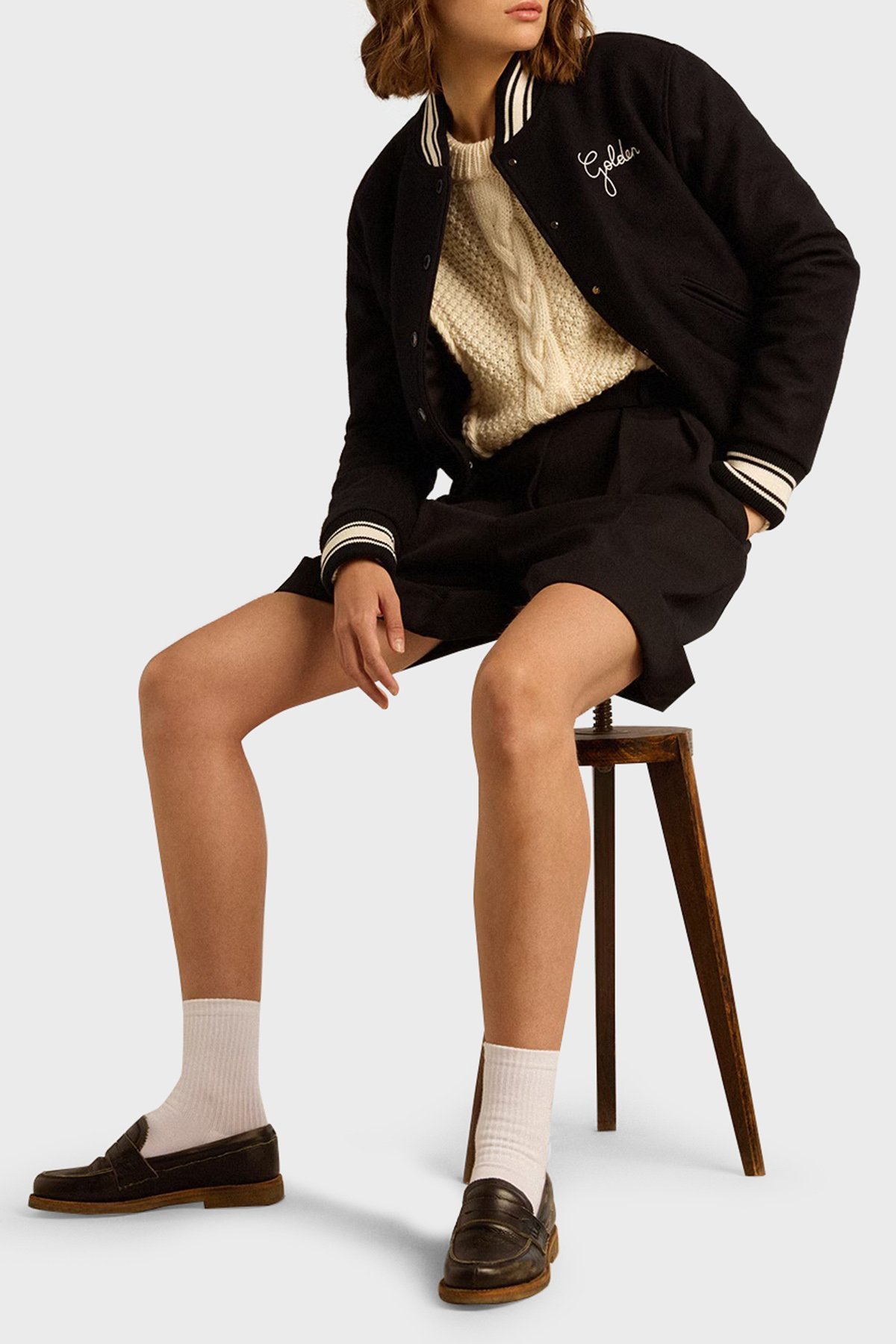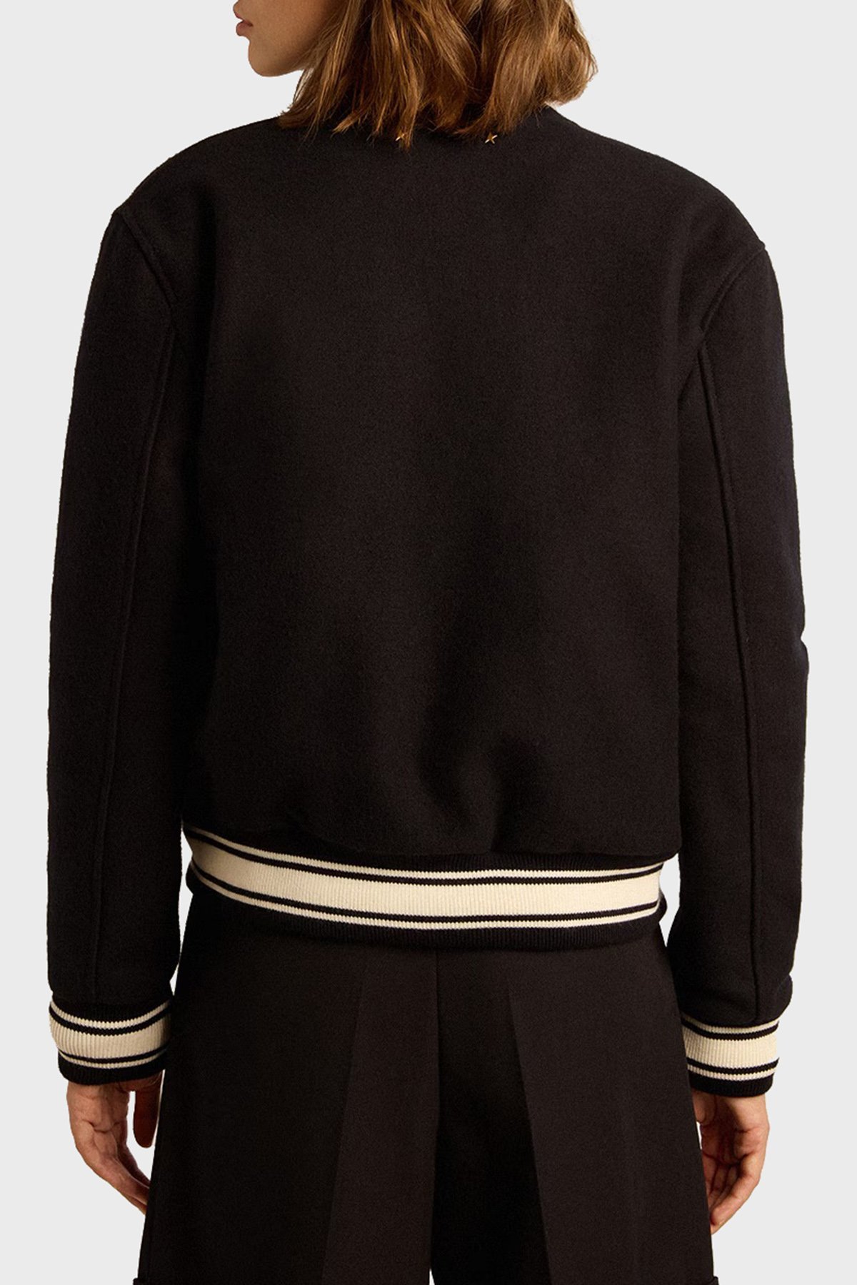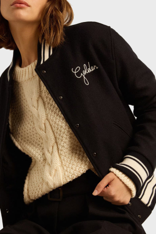 Yünlü Logolu Loose Fit Kolej Yaka Bayan Ceket GWP00832.P000618.50486 LACİVERT