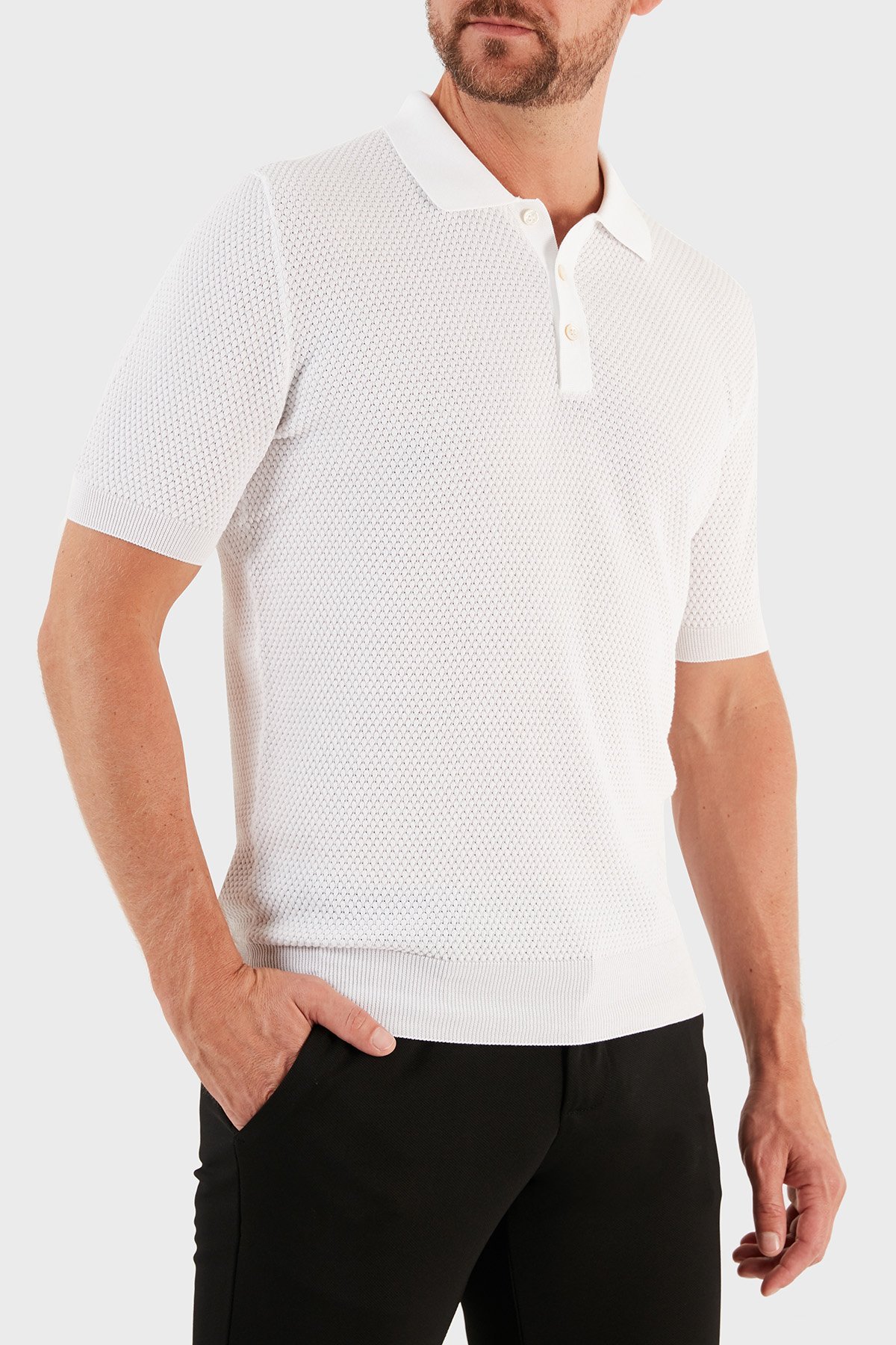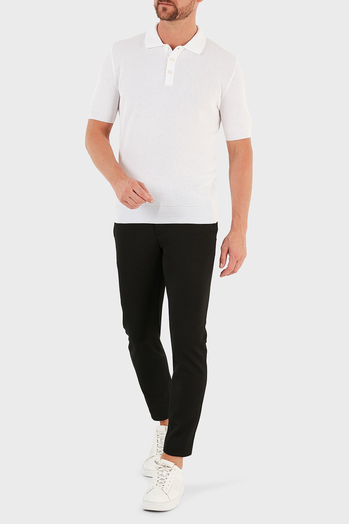 % 100 Pamuk Slim Fit Düğmeli Erkek Polo T Shirt 57113 20620 002 BEYAZ
