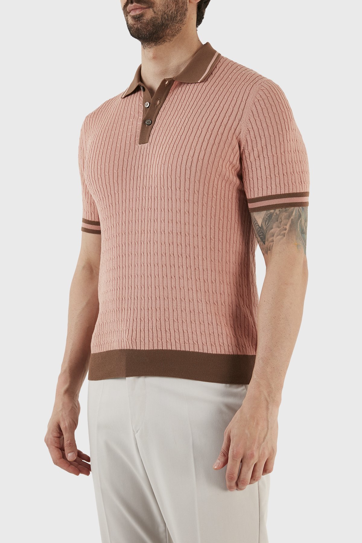 % 100 Pamuk Slim Fit Düğmeli Erkek Polo T Shirt 57113 20625 329 PUDRA