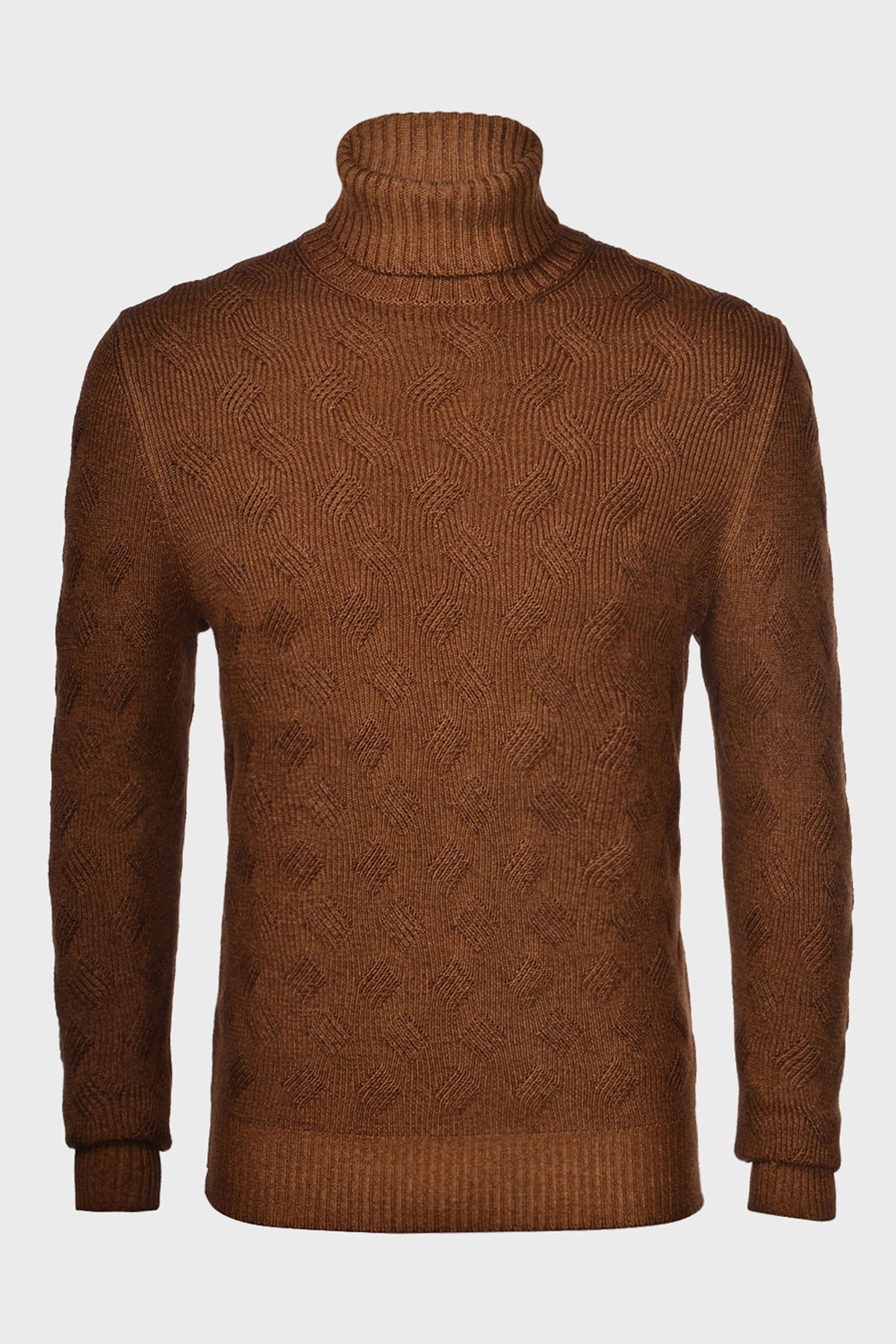 % 100 Yün Balıkçı Yaka Erkek Kazak 23166 31713 123 KAHVE