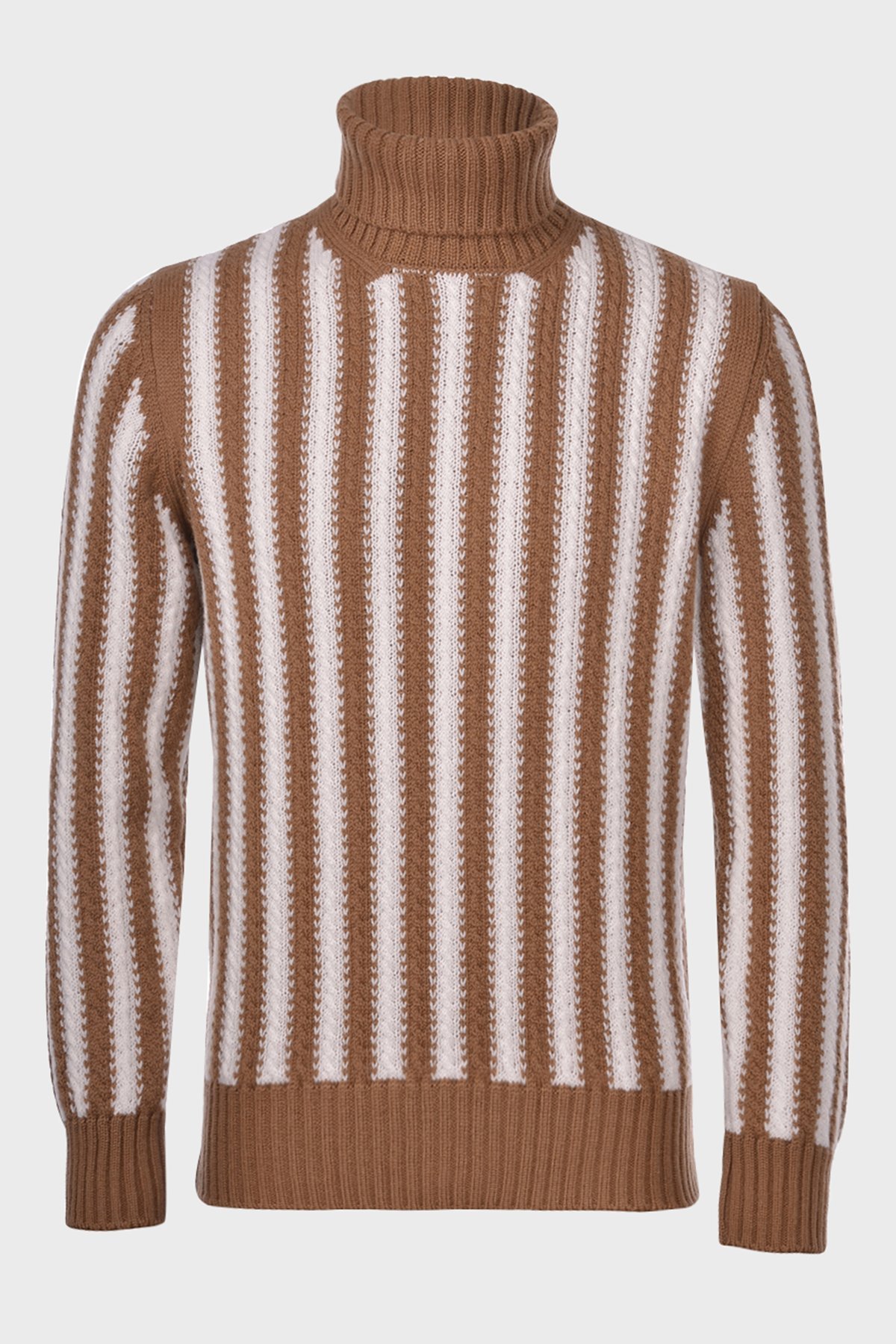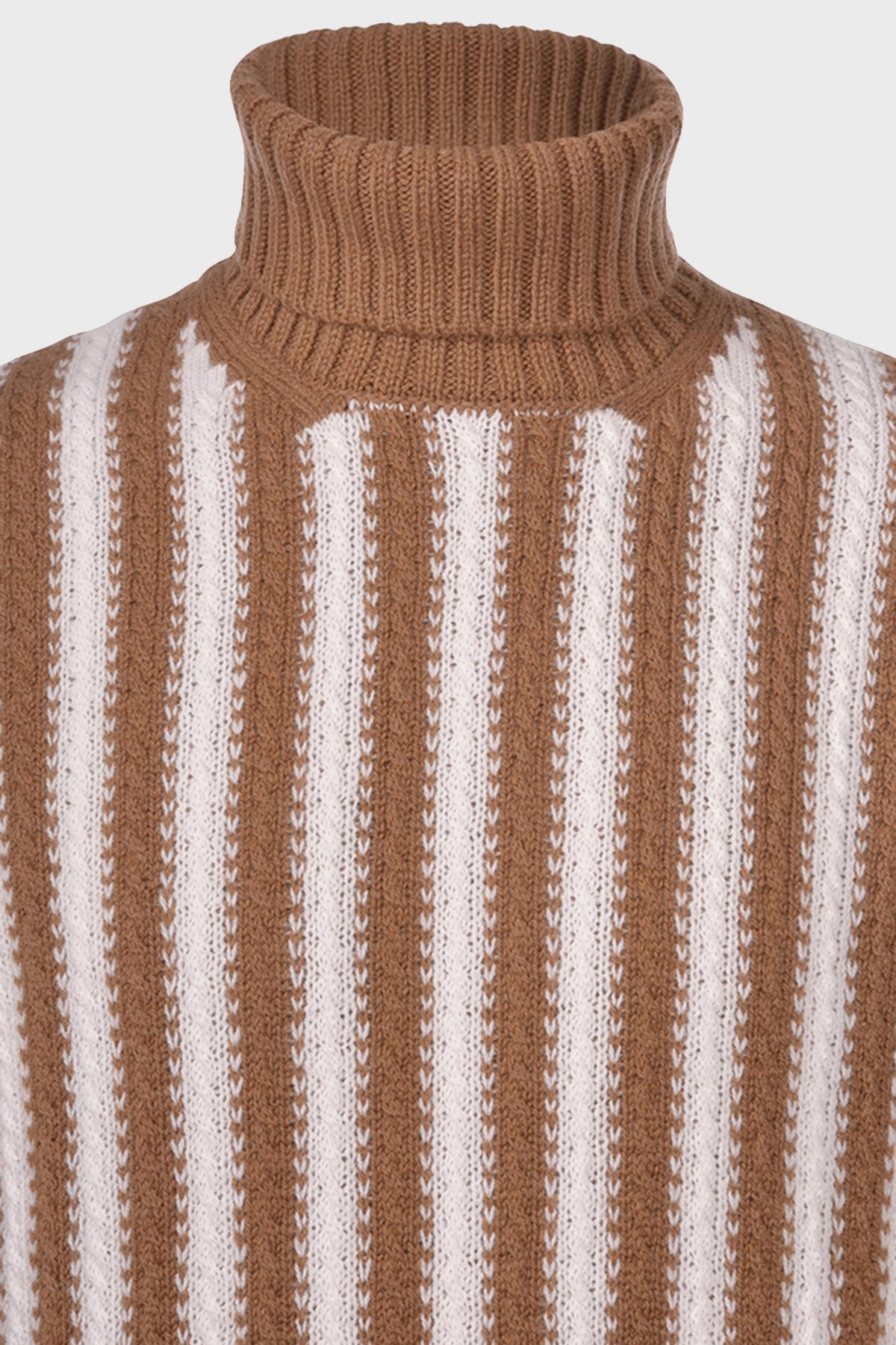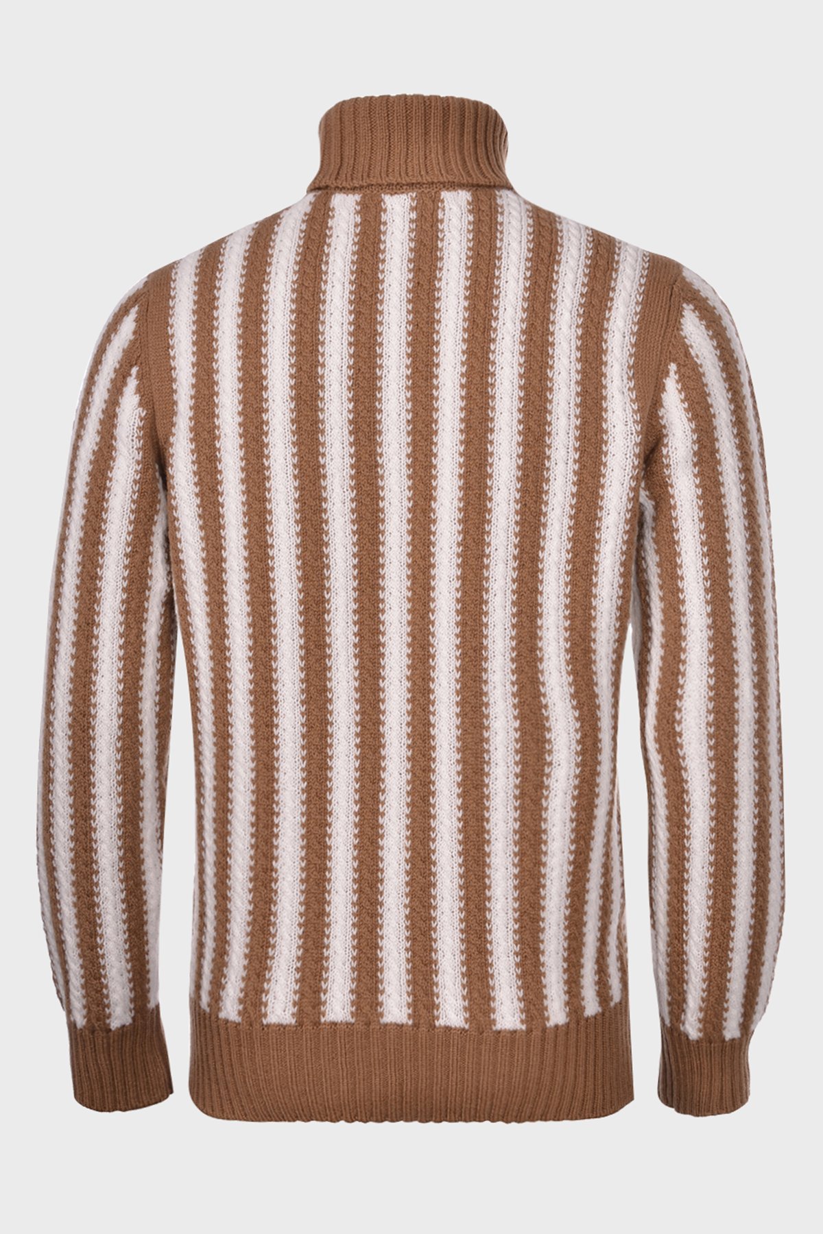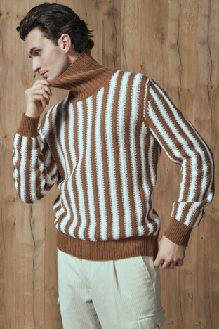 % 100 Yün Çizgili Boğazlı Yaka Erkek Kazak 13121 22647 117 KAHVE