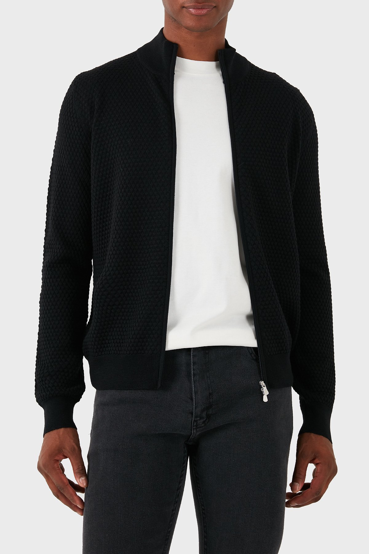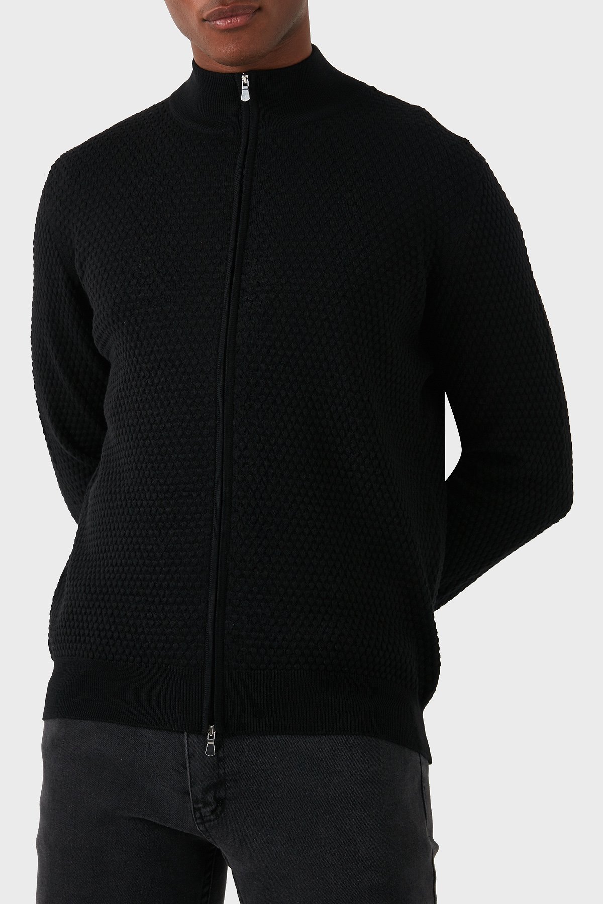 % 100 Yün Regular Fit Dik Yaka Fermuarlı Erkek Hırka 57178 14222 099 SİYAH
