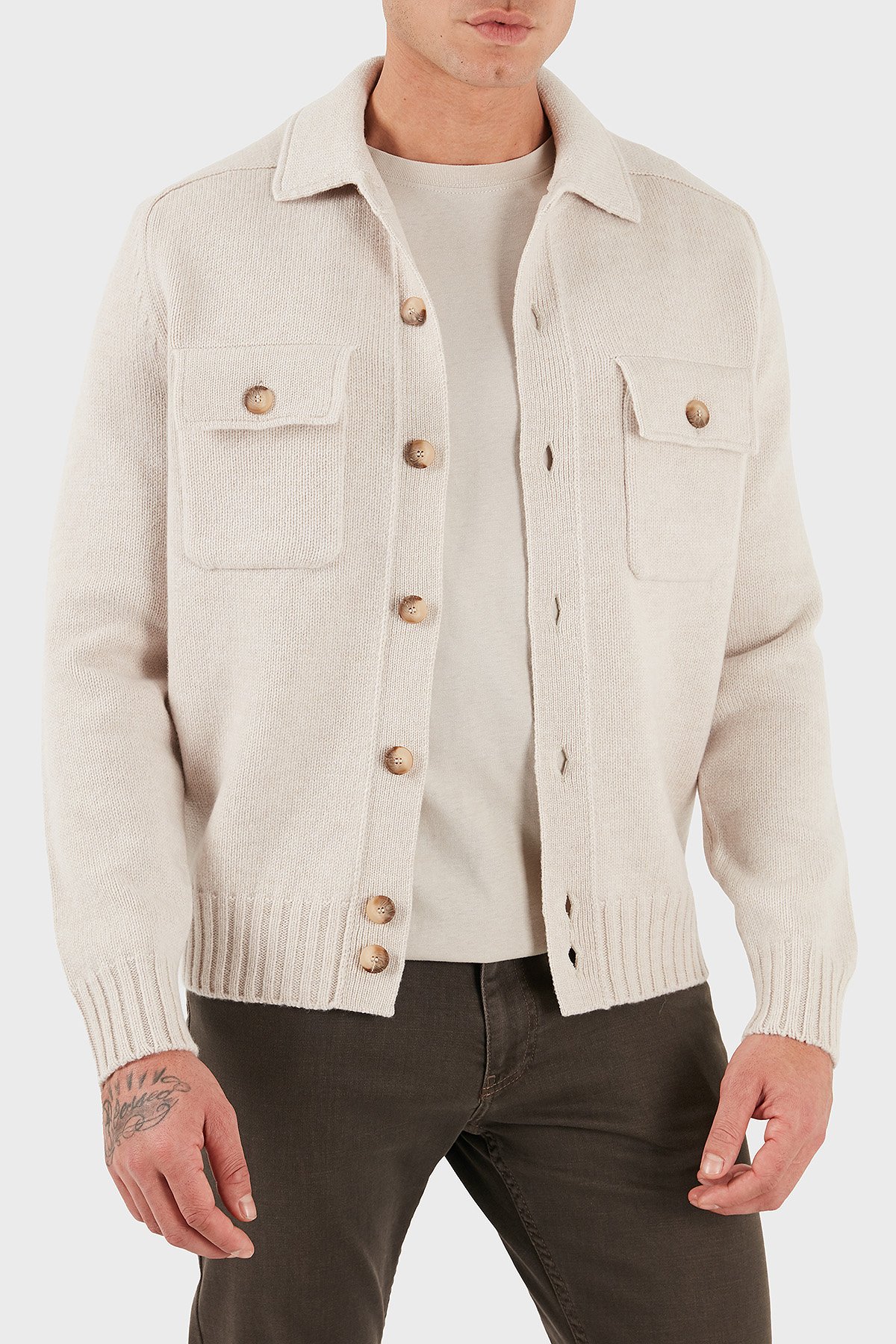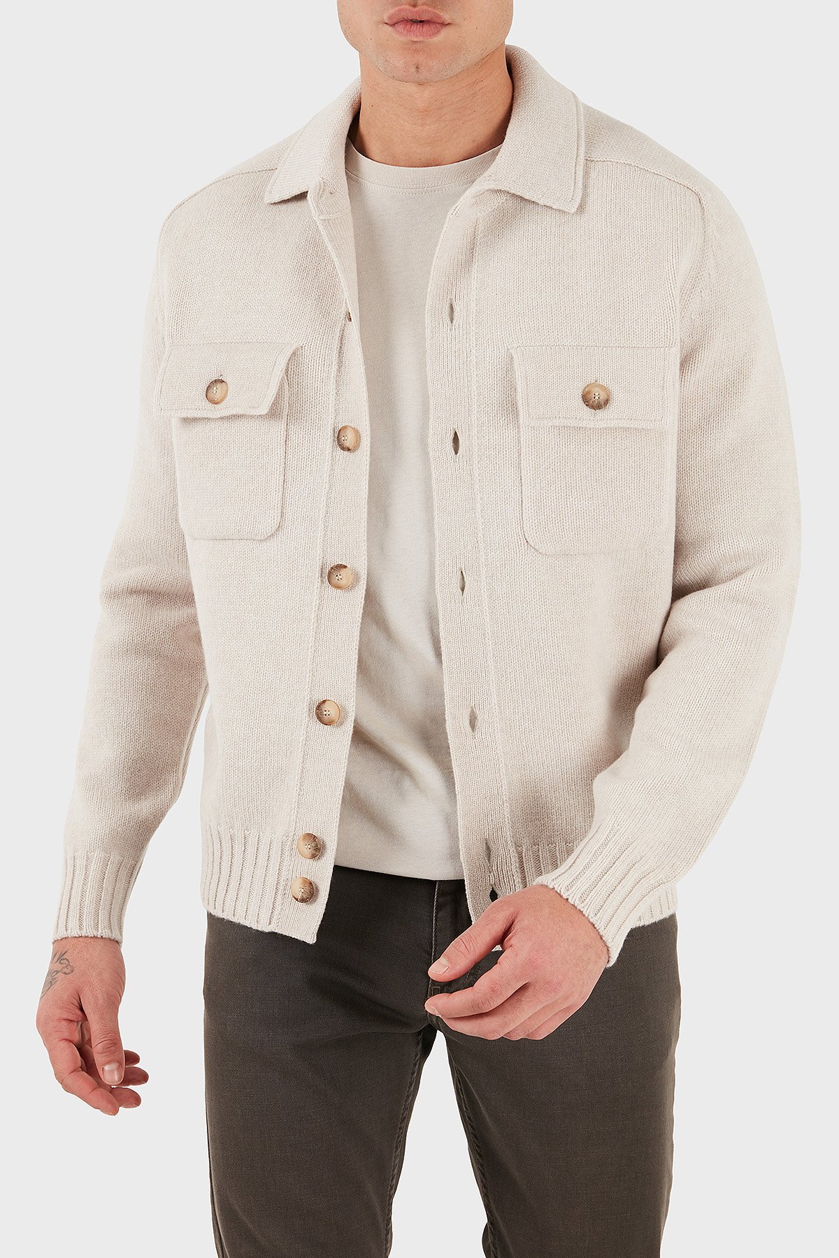 % 100 Yün Regular Fit Düğmeli Cepli Örme Erkek Ceket 13109 25079 054 EKRU