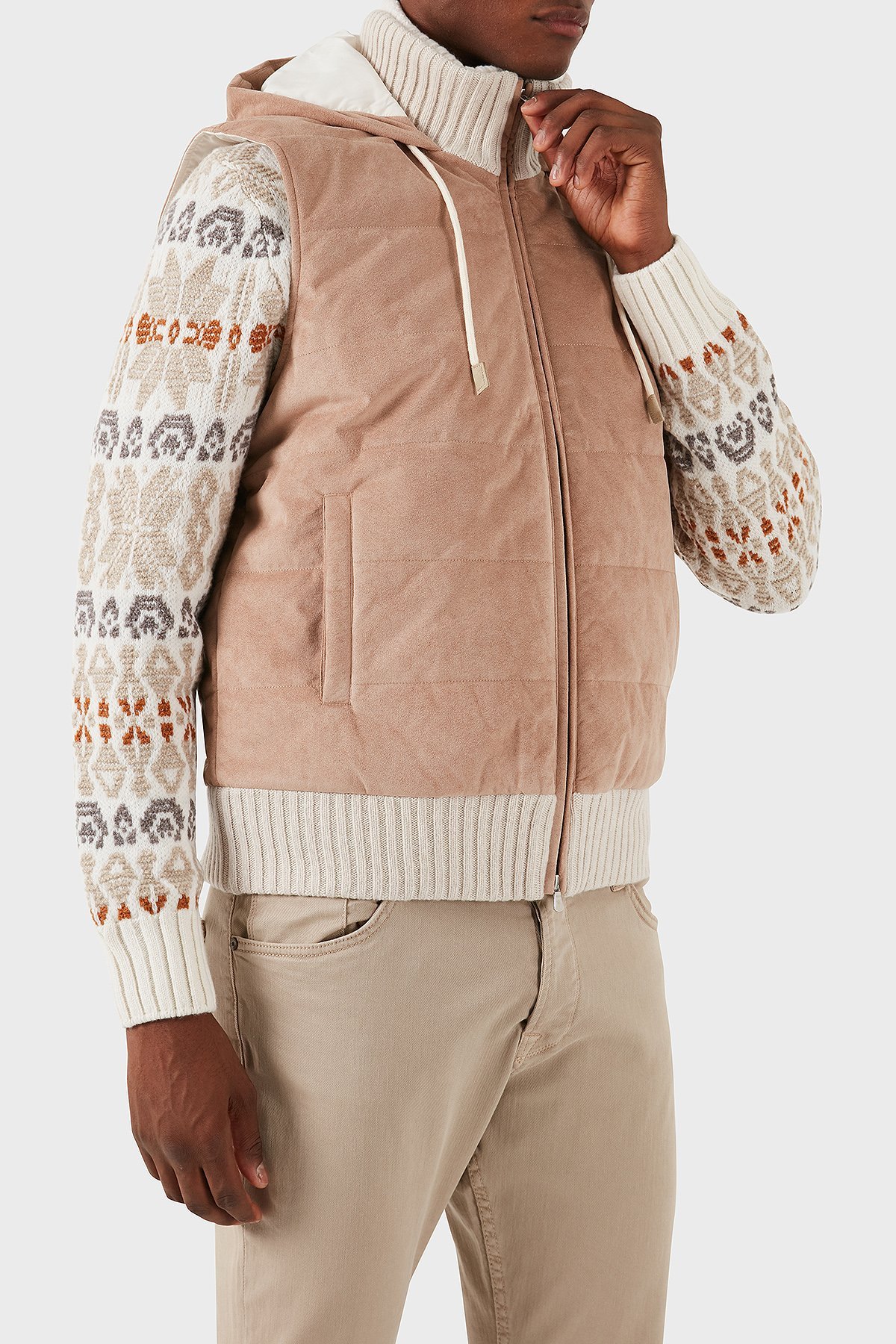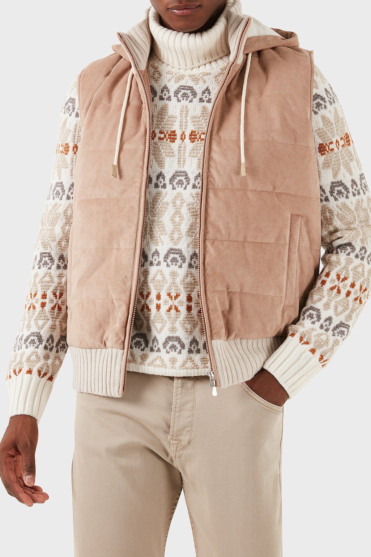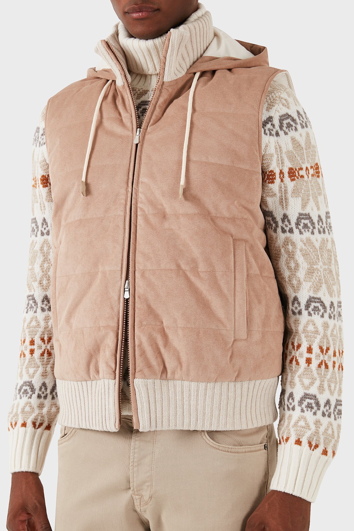 % 100 Yün Regular Fit Kapüşonlu Erkek Yelek 78145 55006 110 VİZON