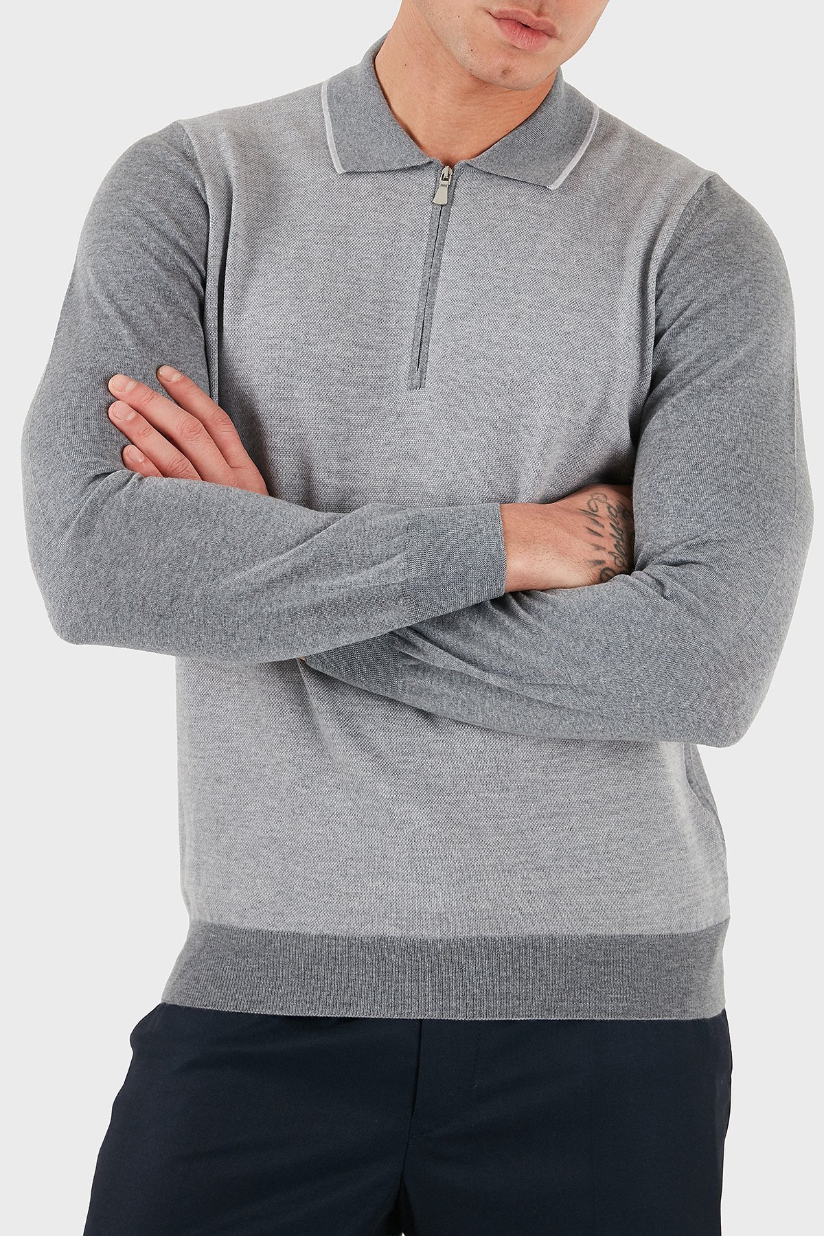 % 100 Yün Regular Fit Yarım Fermuarlı Erkek Polo Yaka Kazak 43108 14713 090 GRİ