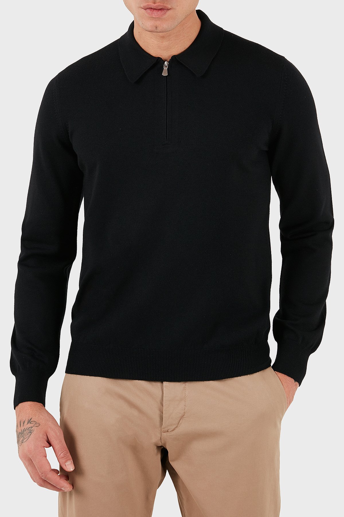% 100 Yün Regular Fit Yarım Fermuarlı Erkek Polo Yaka Kazak 55125 14290 099 SİYAH