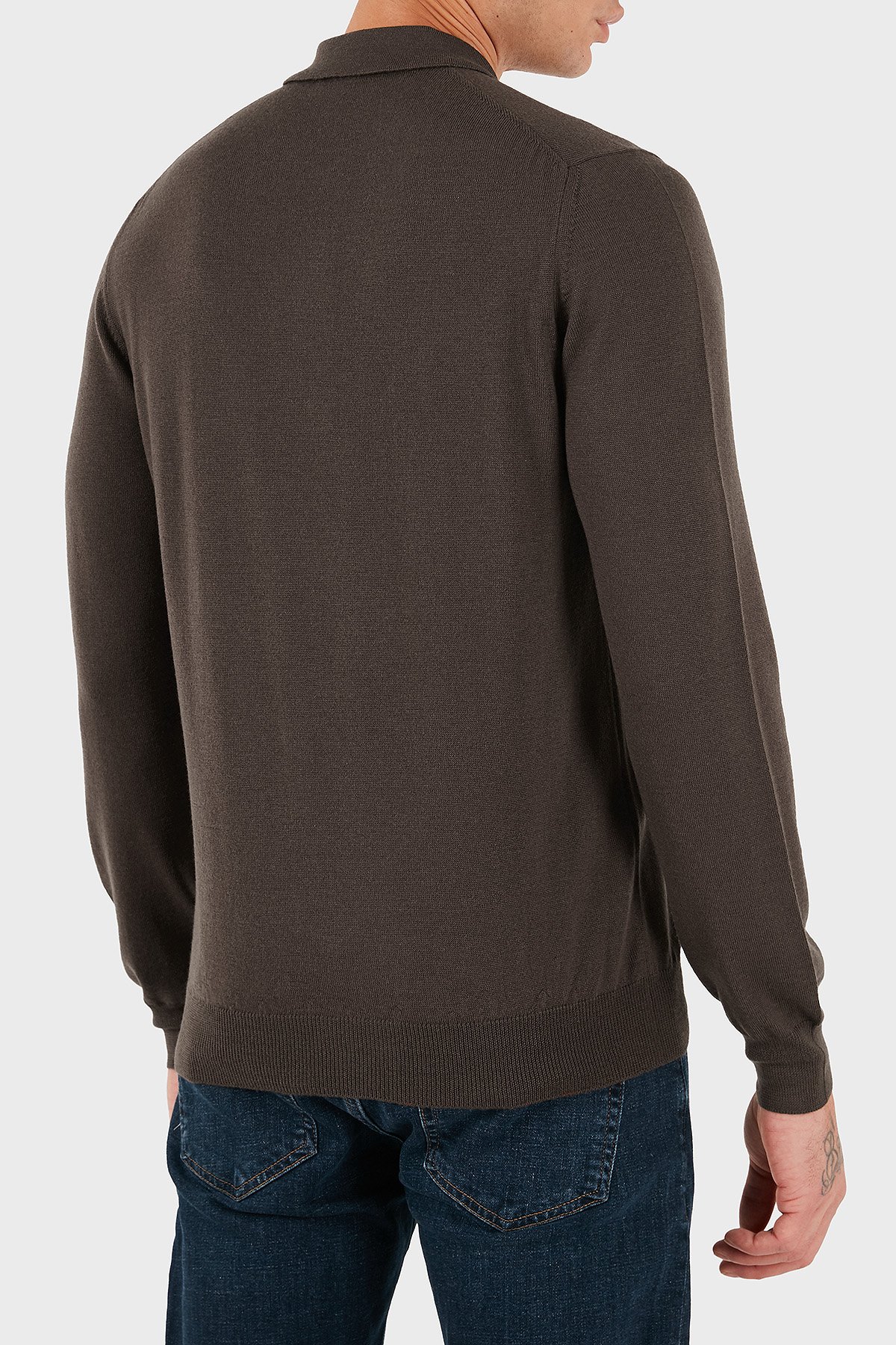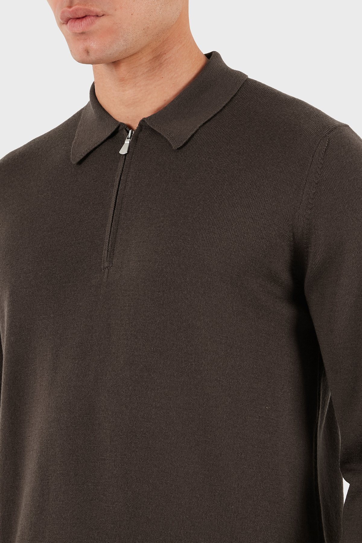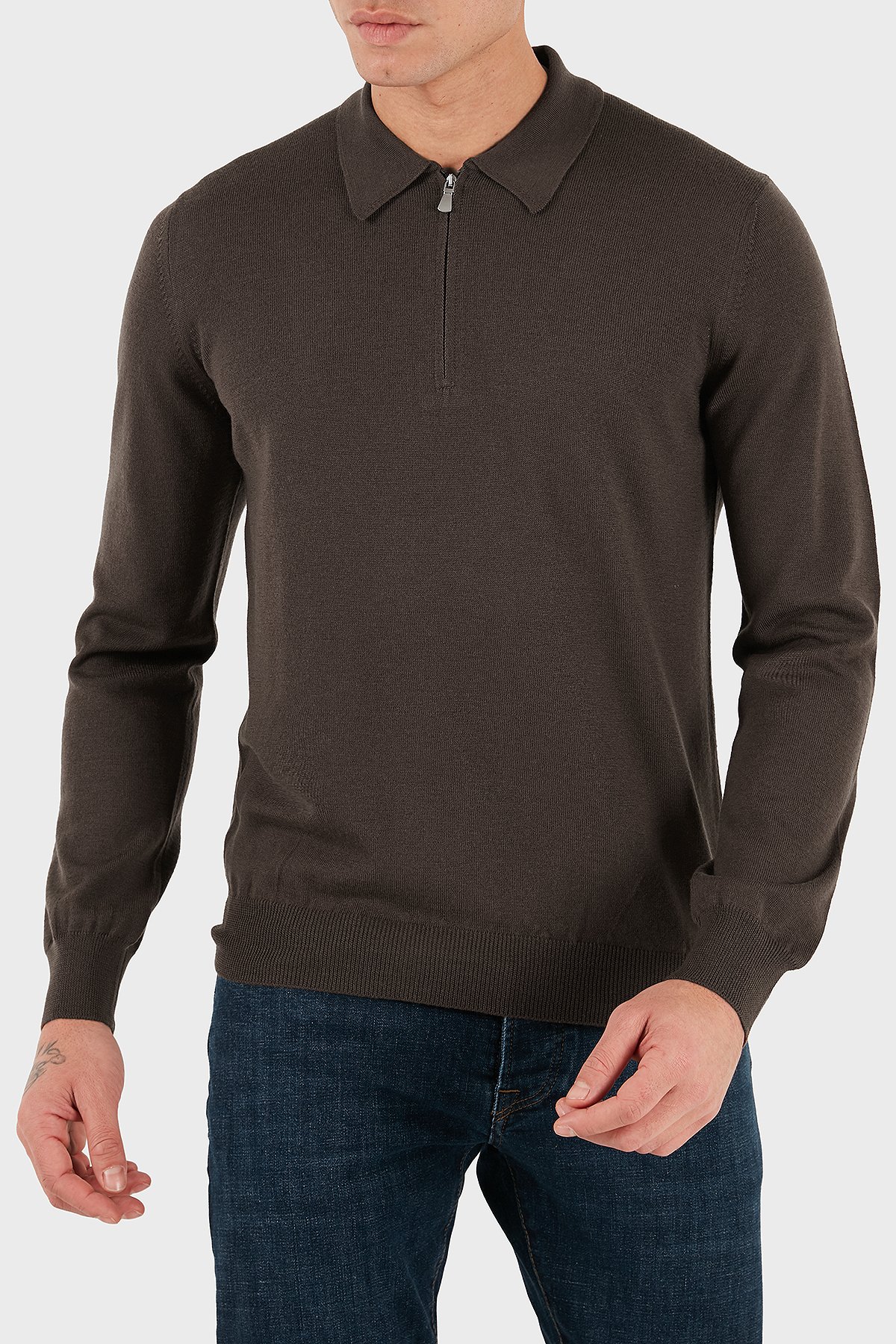 % 100 Yün Regular Fit Yarım Fermuarlı Erkek Polo Yaka Kazak 55125 14290 177 KAHVE