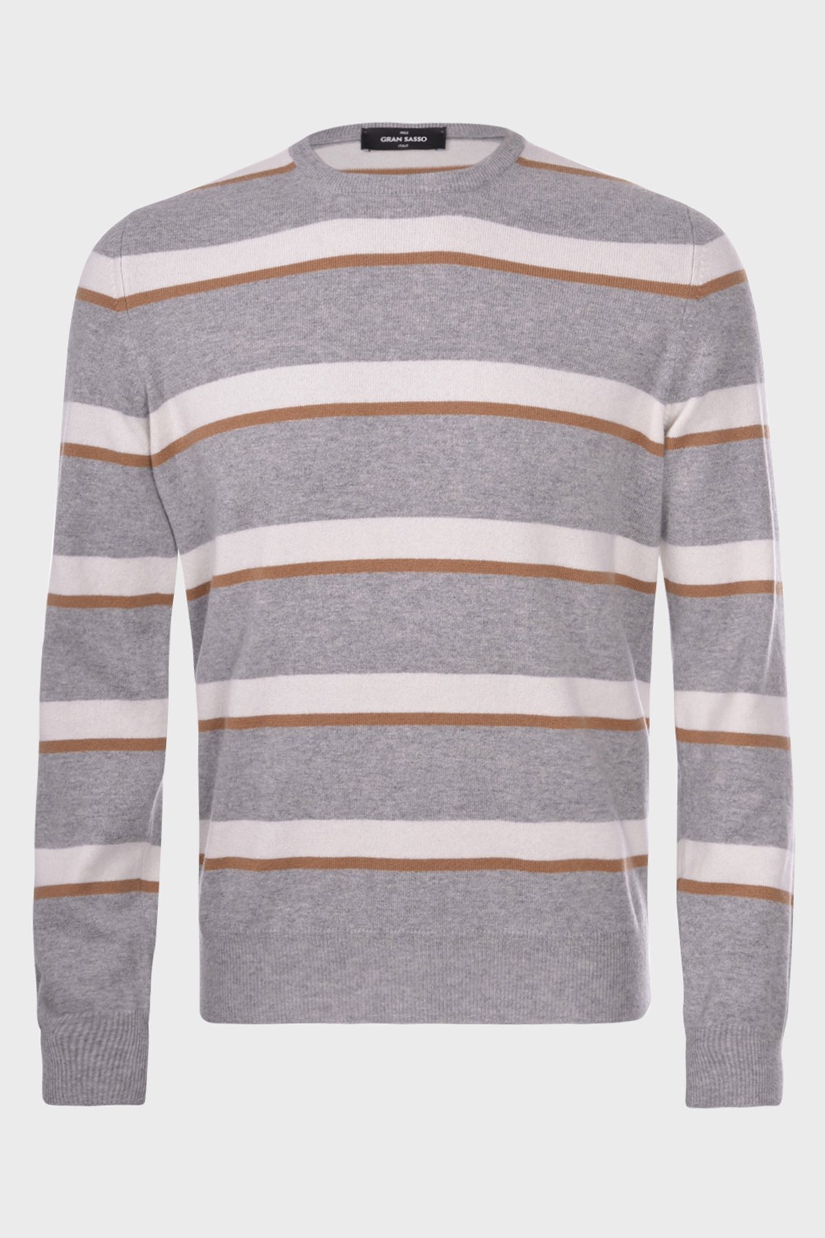Çizgili Yün ve Kaşmir Karışımlı Erkek Kazak 57167 19670 061 GRİ