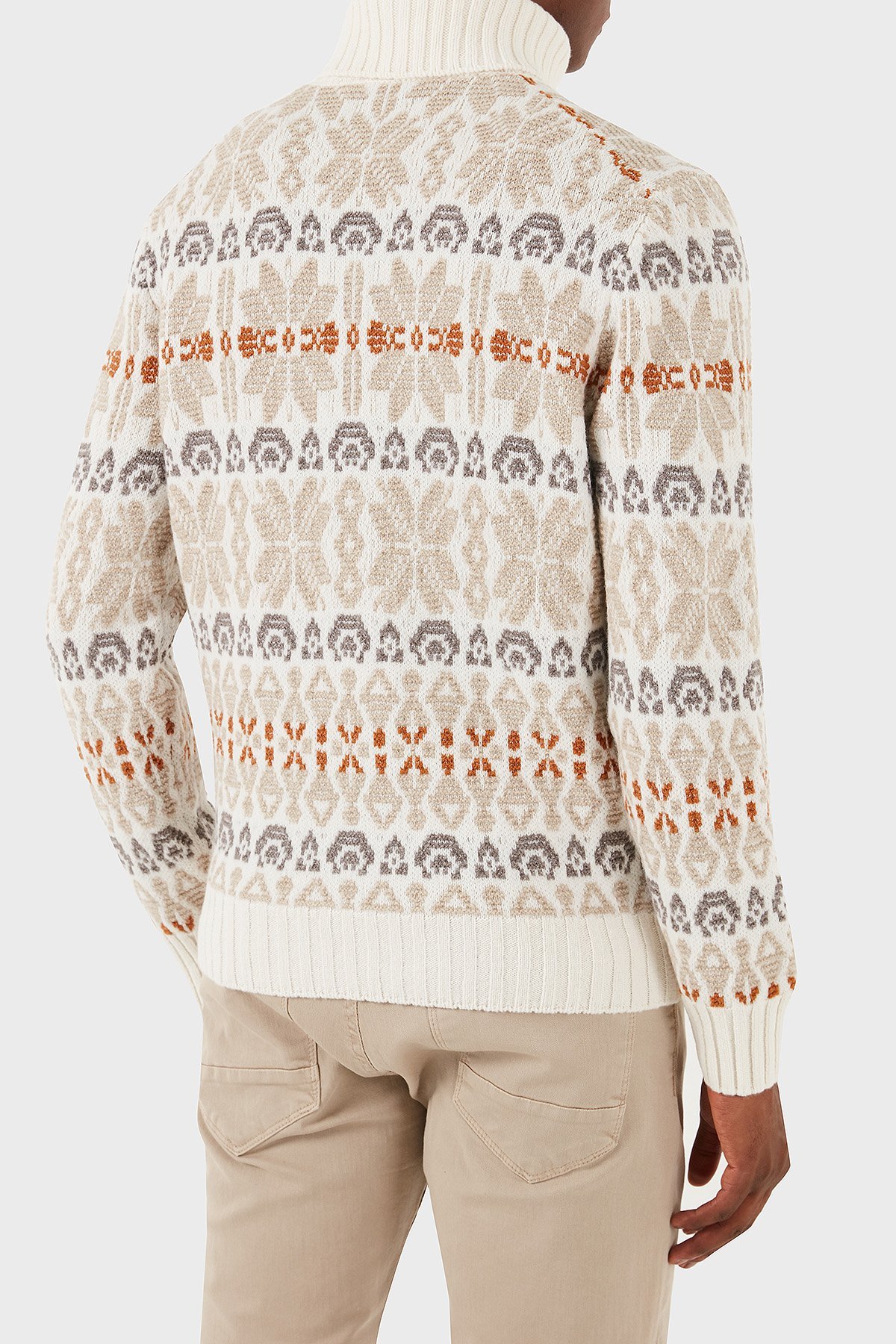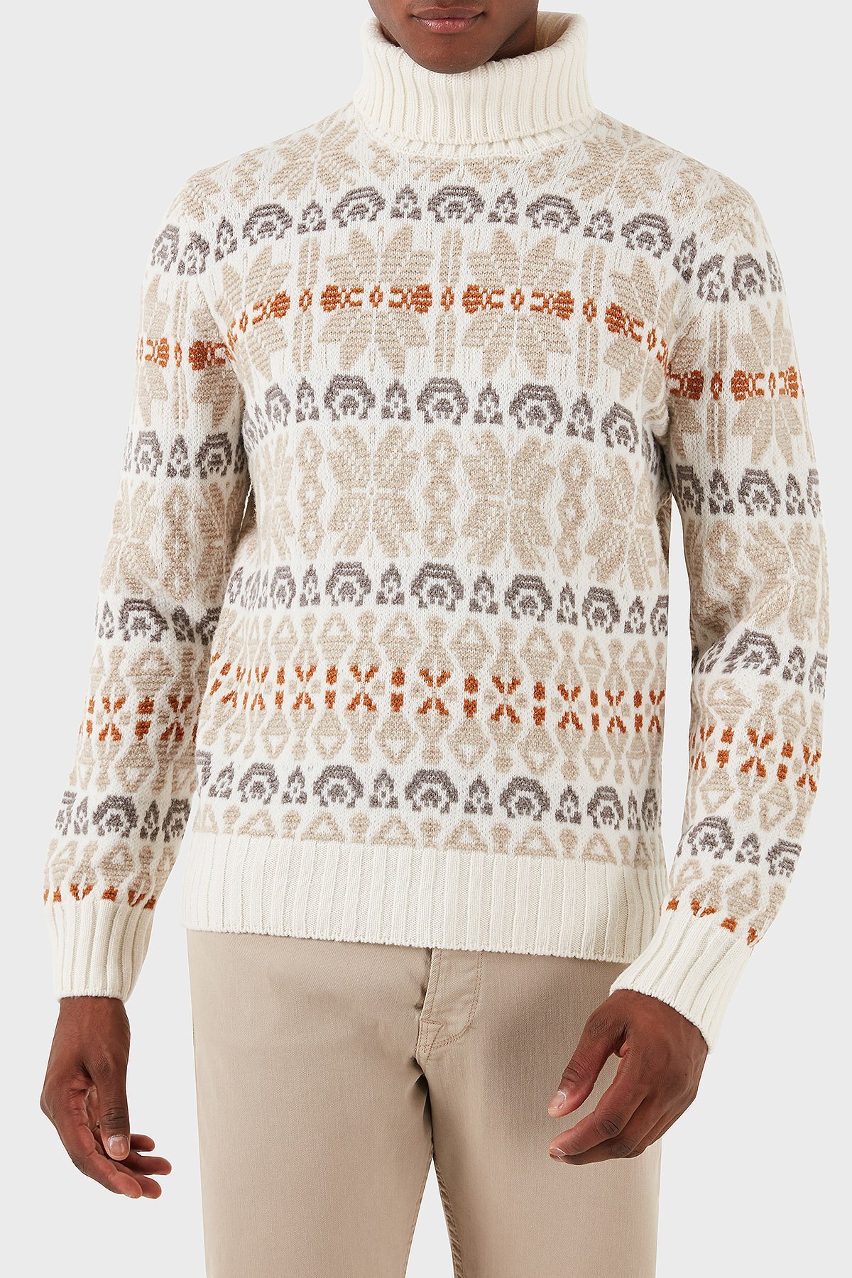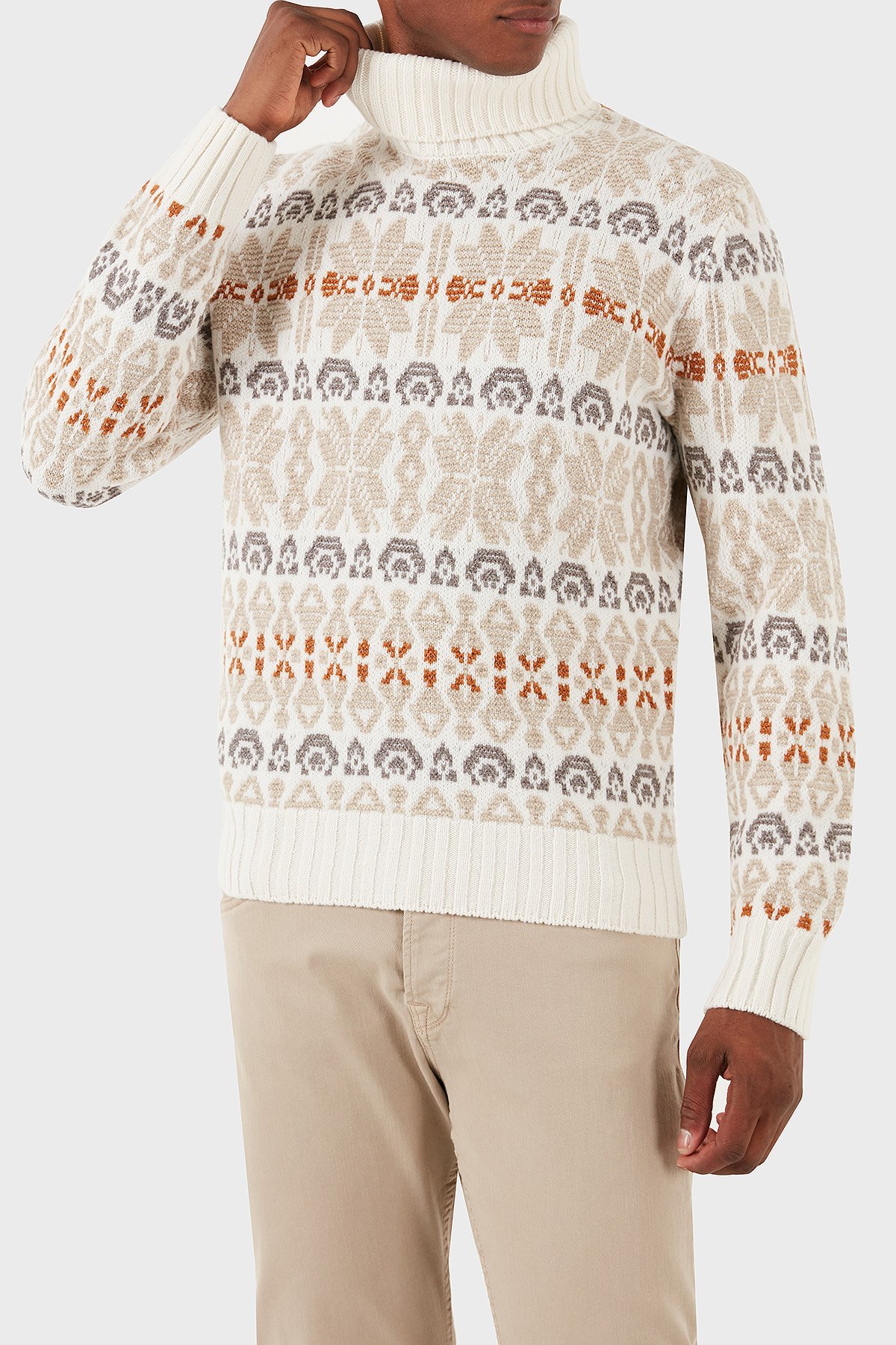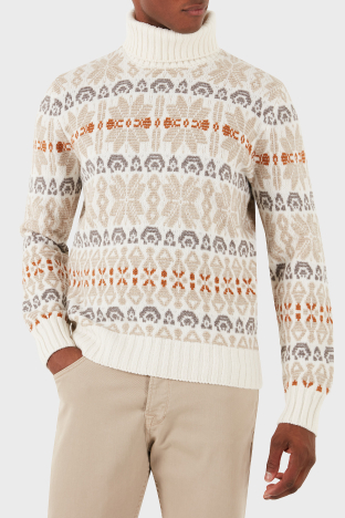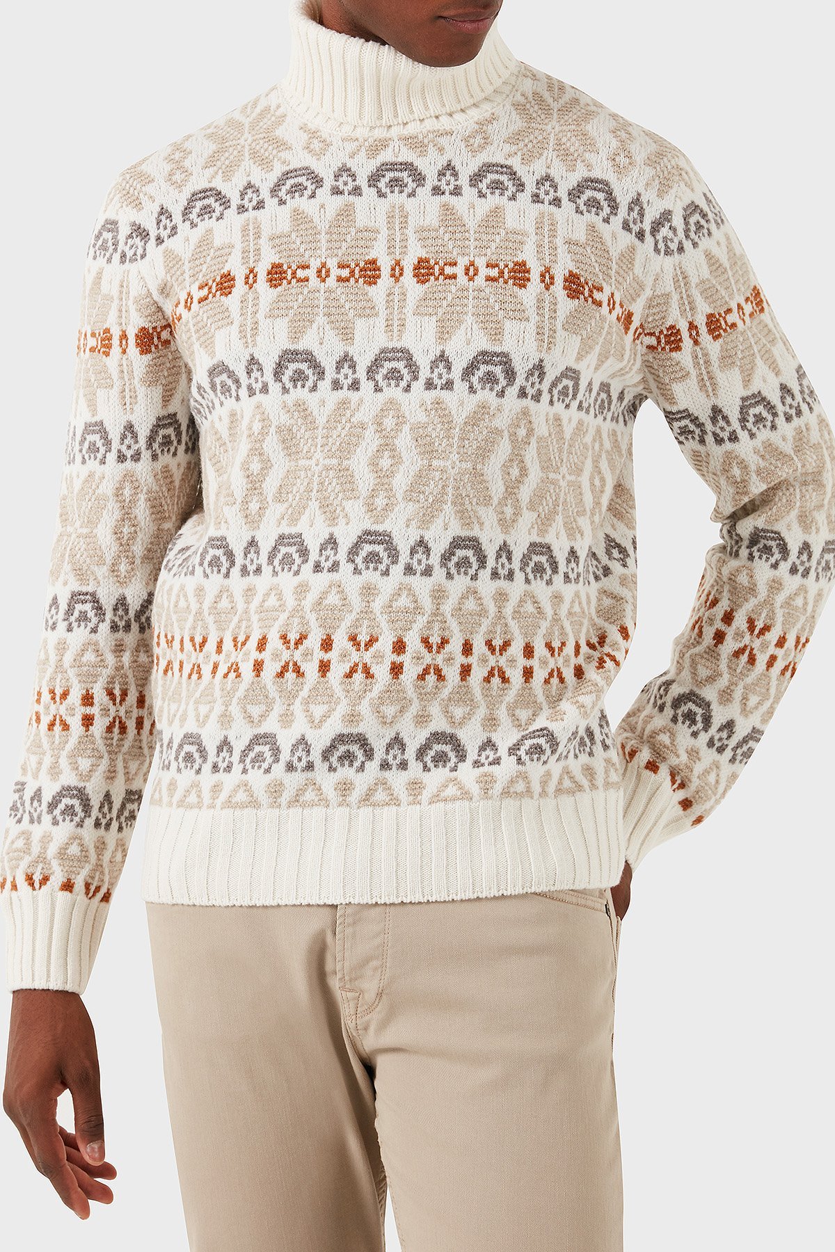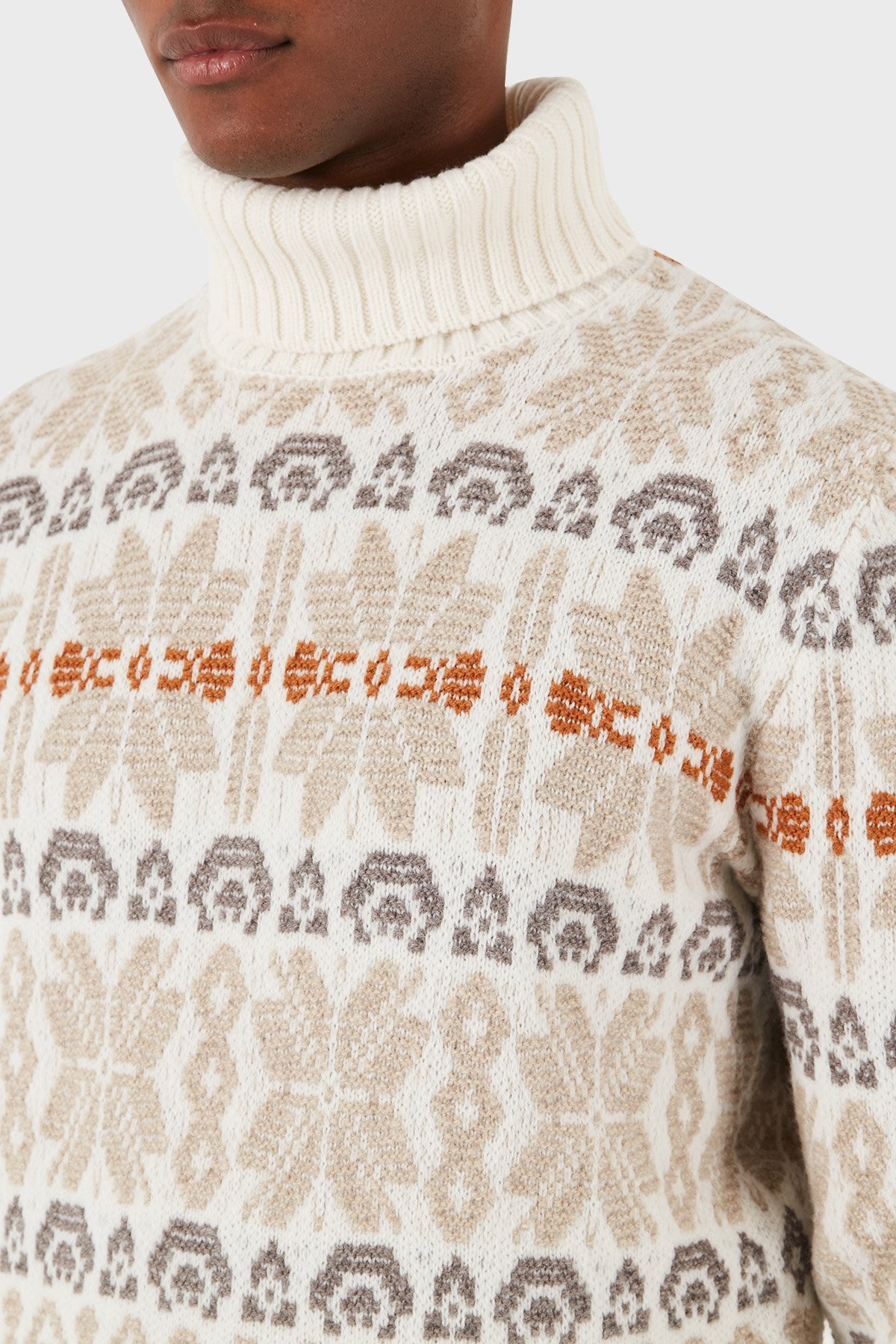 Desenli % 100 Yün Regular Fit Balıkçı Yaka Erkek Kazak 13147 25061 001 EKRU-KAHVE