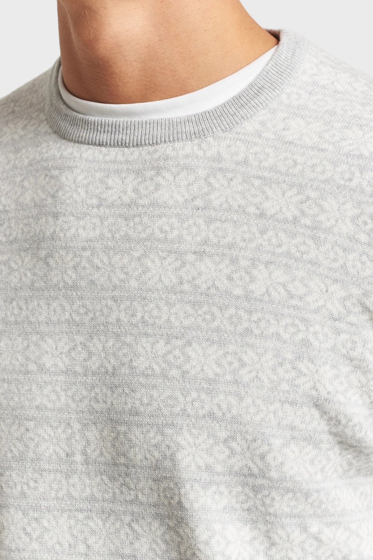 Desenli Yün ve Kaşmir Karışımlı Slim Fit Bisiklet Yaka Erkek Kazak 58124 19655 044 GRİ
