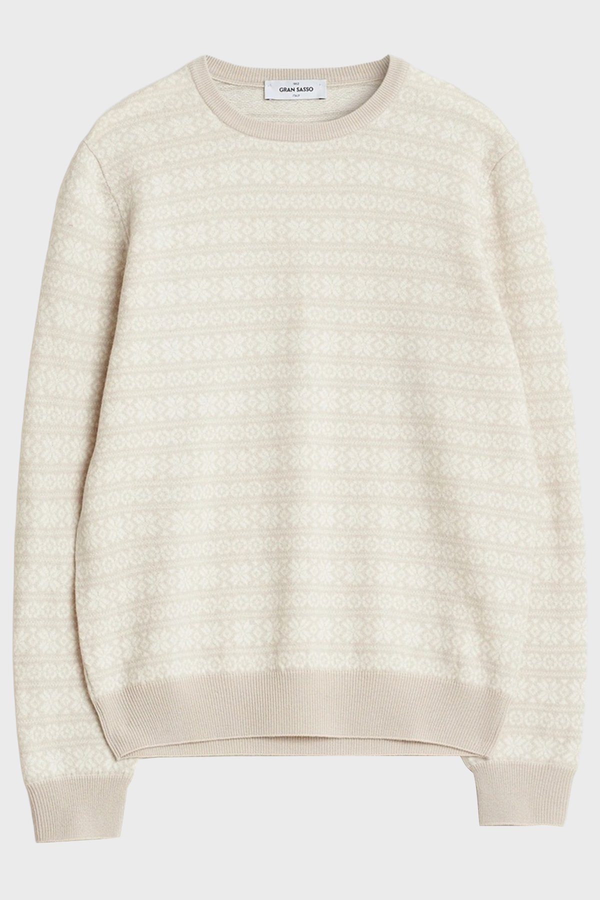Desenli Yün ve Kaşmir Karışımlı Slim Fit Bisiklet Yaka Erkek Kazak 58124 19655 113 EKRU