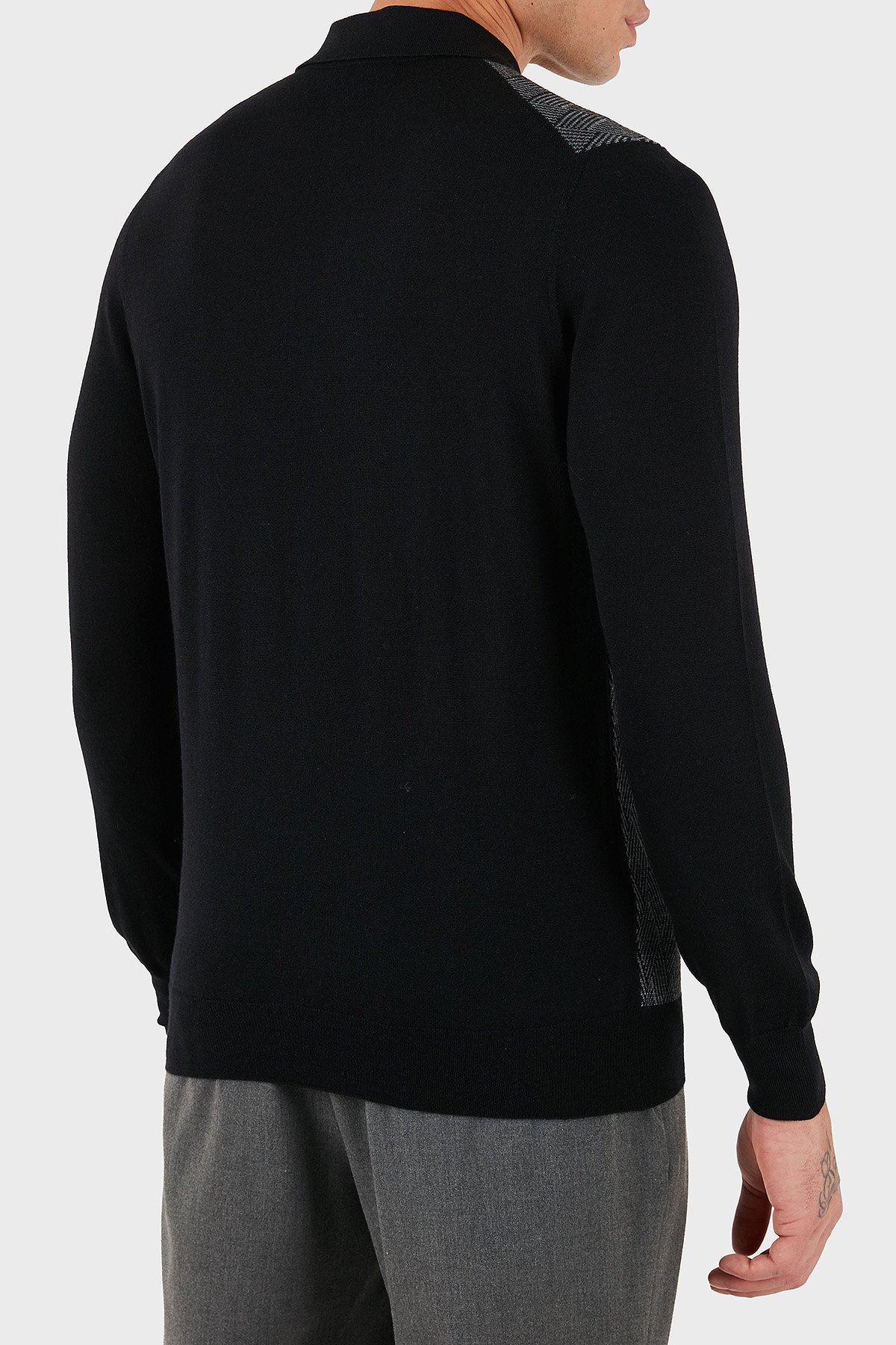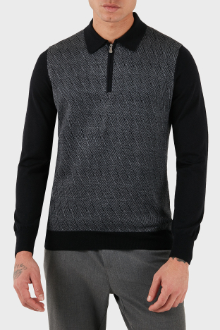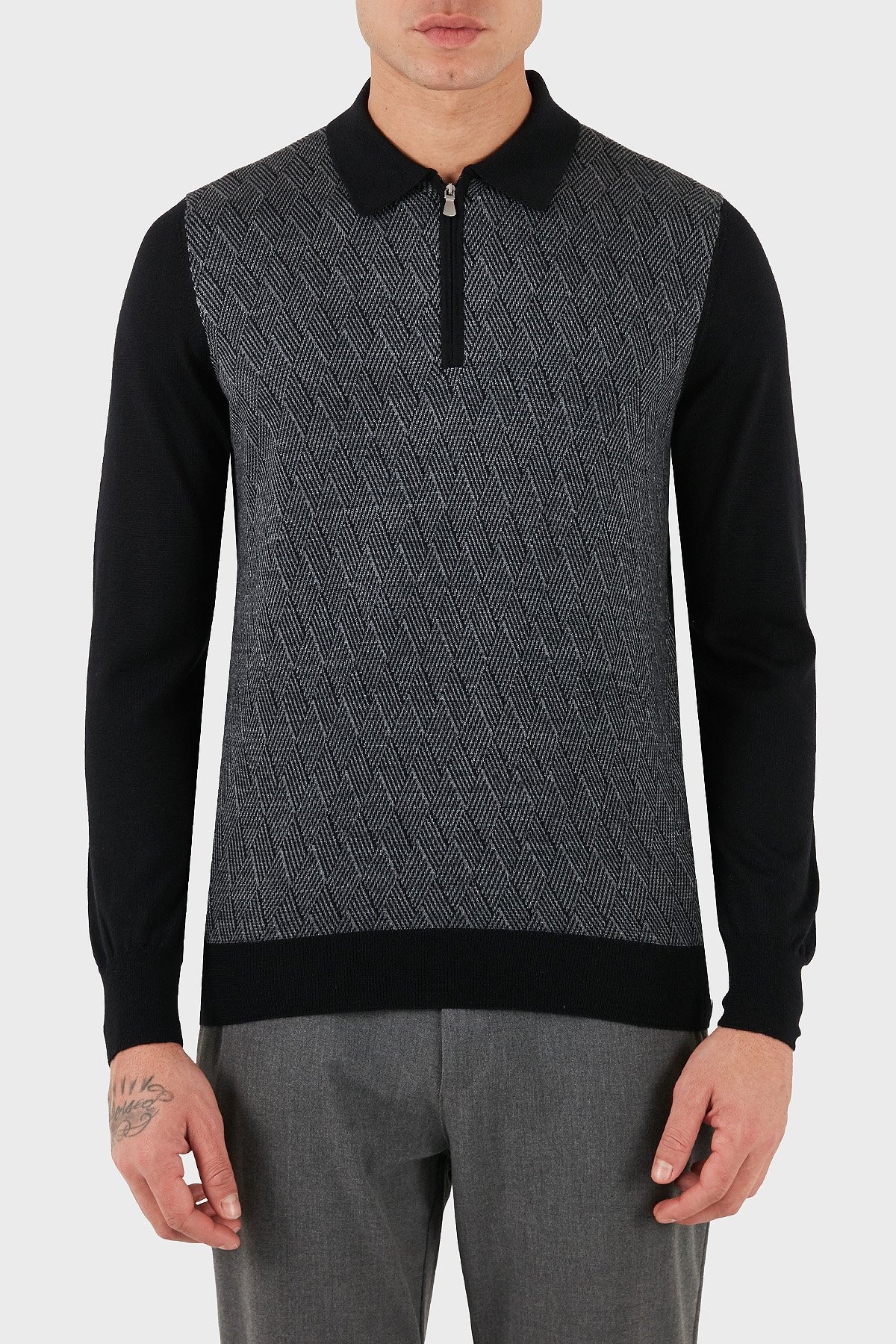 Desenli Yün ve Pamuk Karışımlı Slim Fit Yarım Fermuarlı Polo Yaka Erkek Kazak 57137 13126 099 SİYAH
