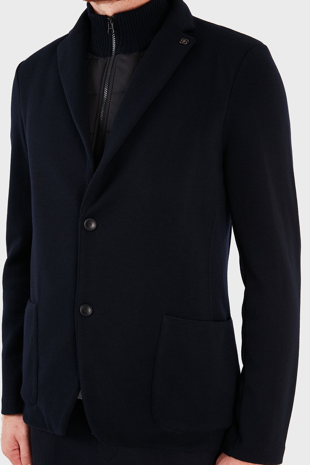 Dik Yaka Cepli % 100 Yün Erkek Mont 57199 24616 598 LACİVERT