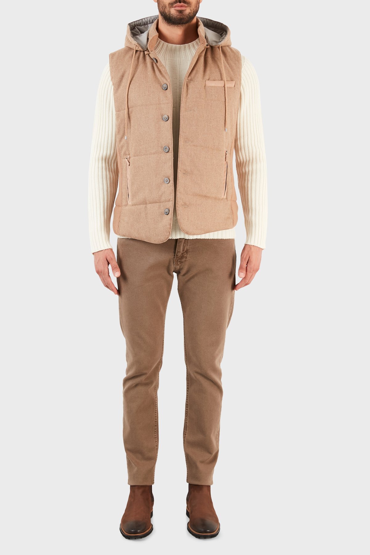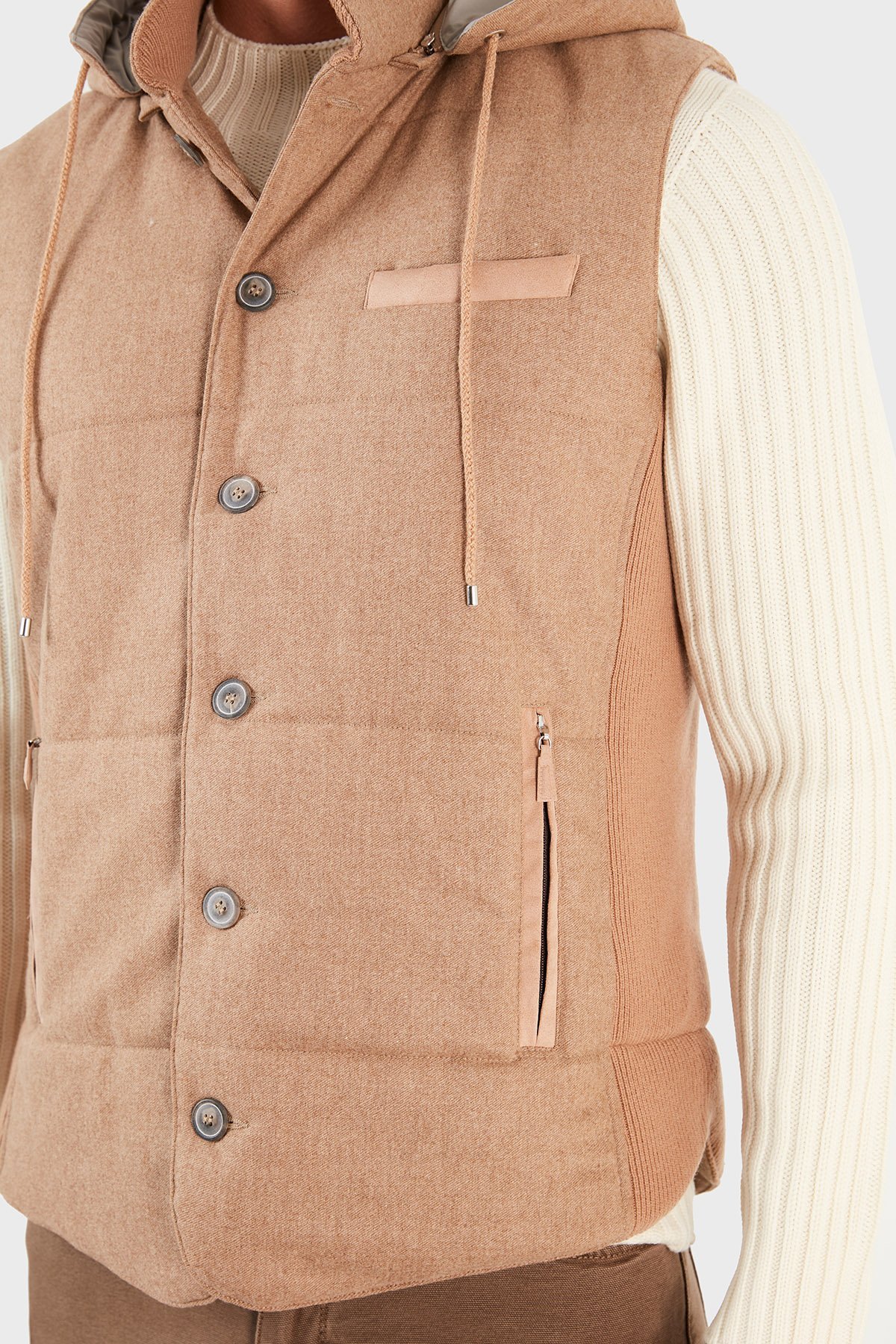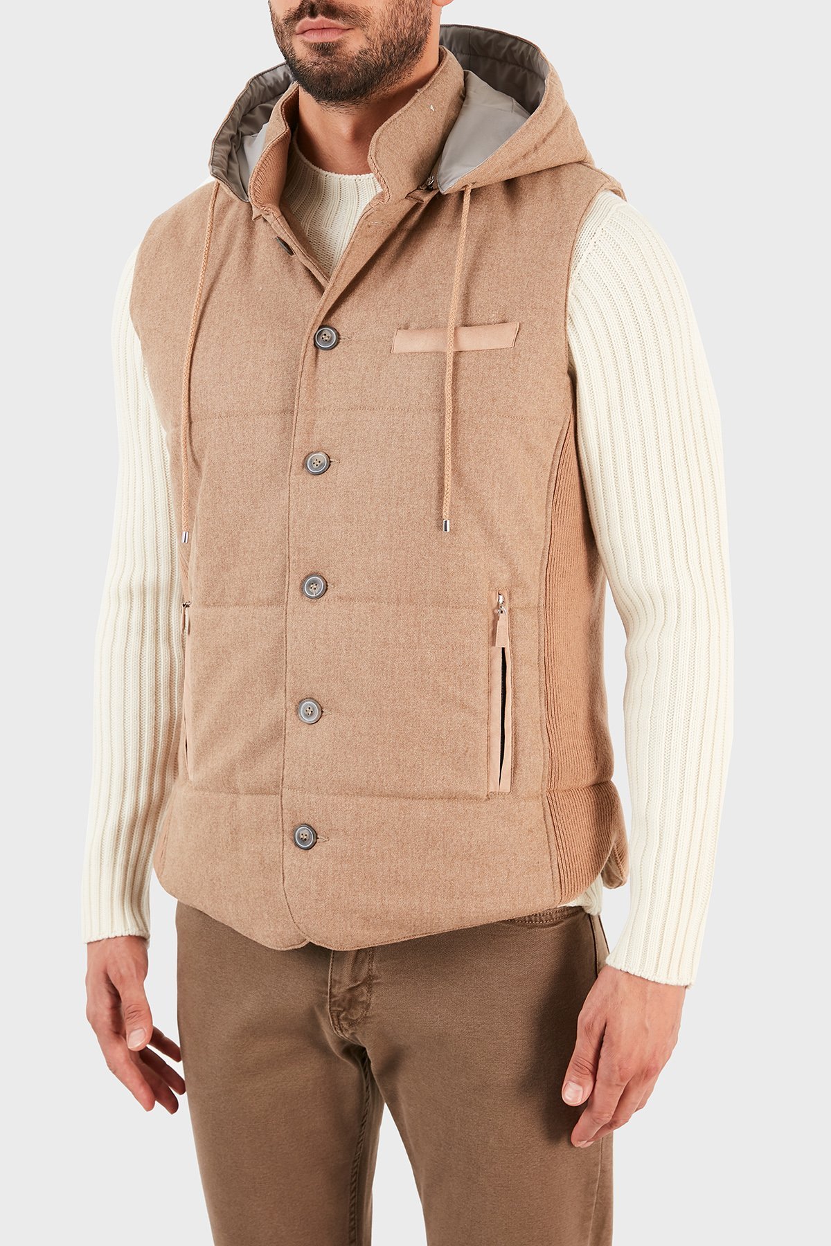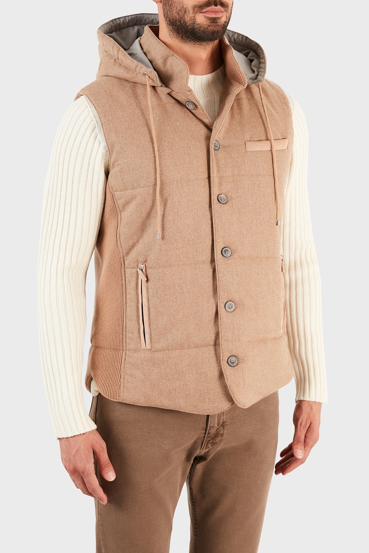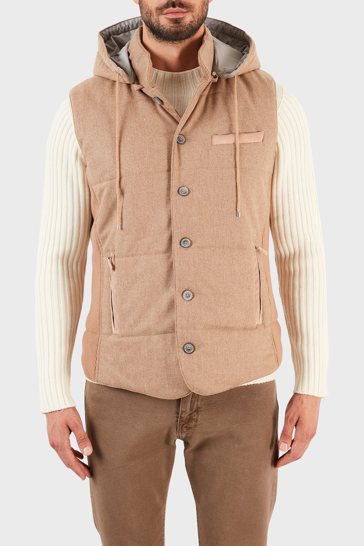 Kapüşonlu Cepli Yünlü Erkek Yelek 23192 51303 116 SÜTLÜ KAHVE
