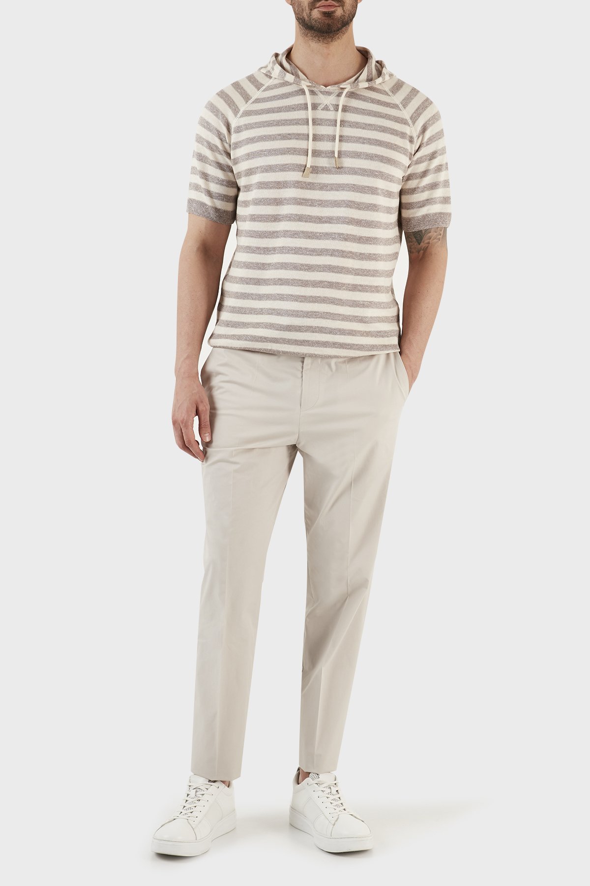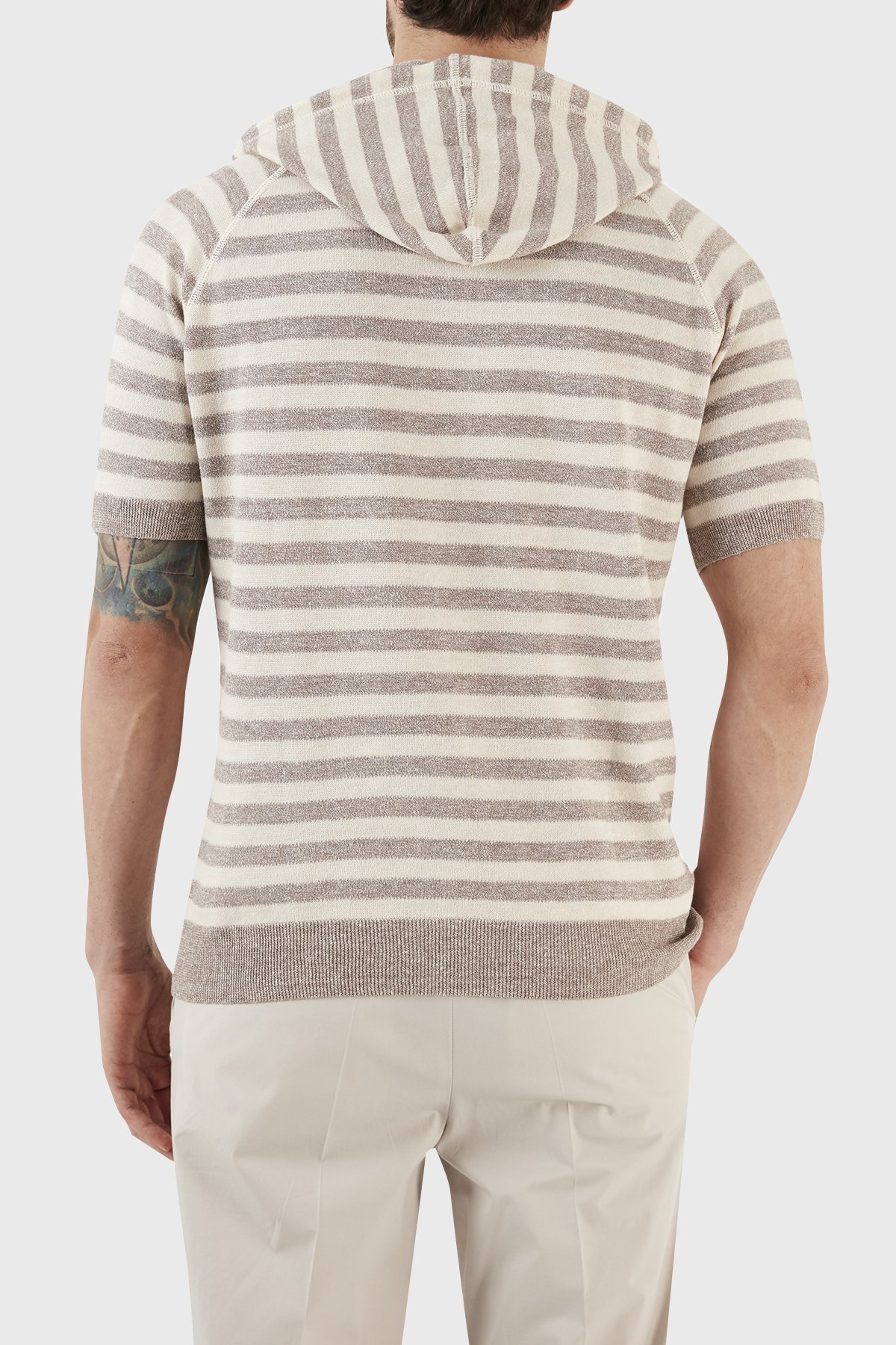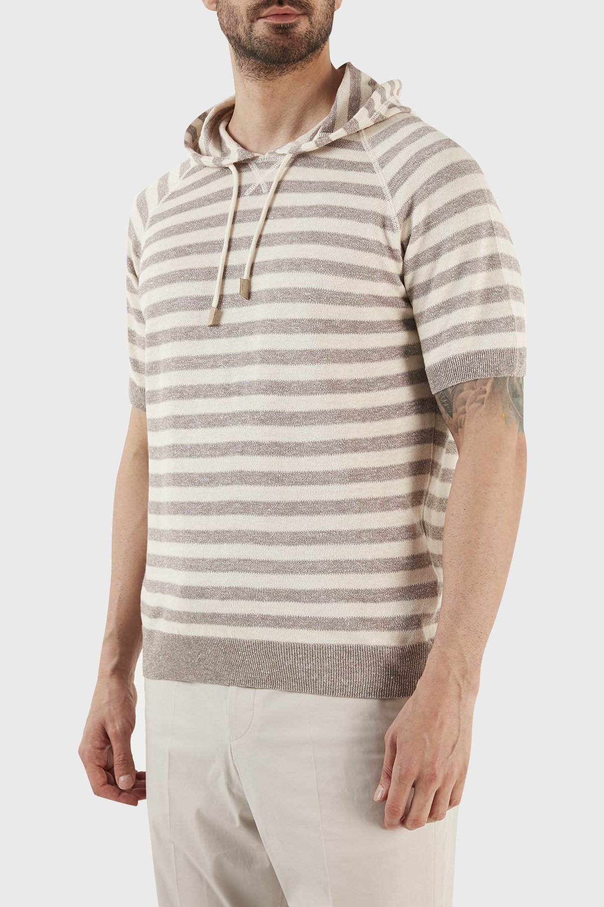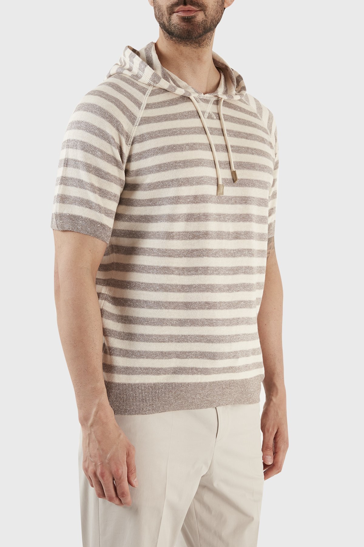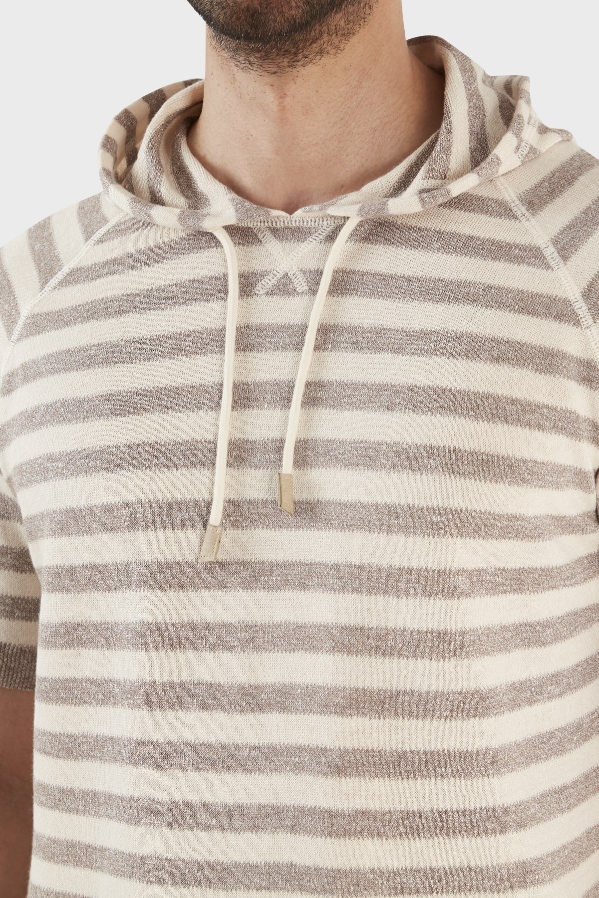 Keten ve Pamuk Karışımlı Kapüşonlu Kısa Kollu Triko Erkek Sweat 57149 18621 120 BEJ