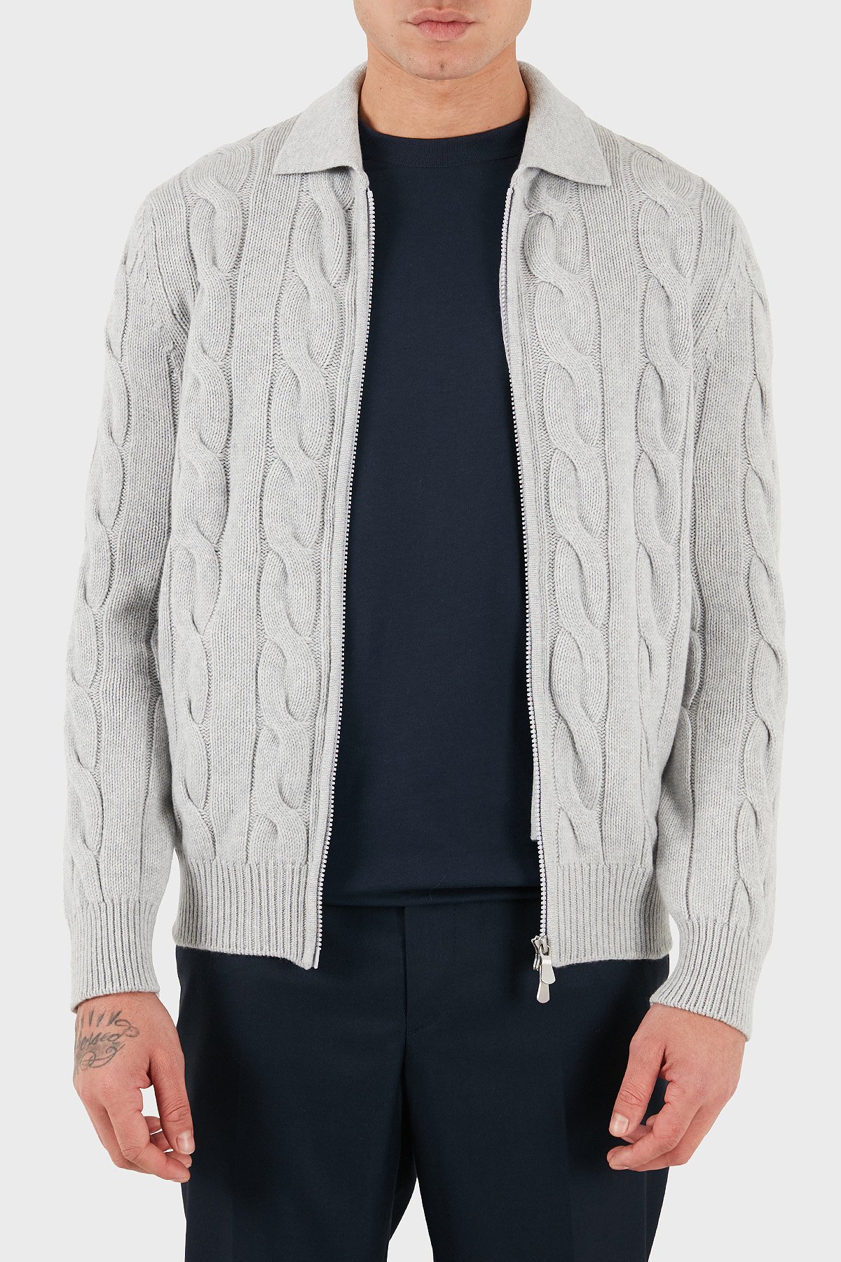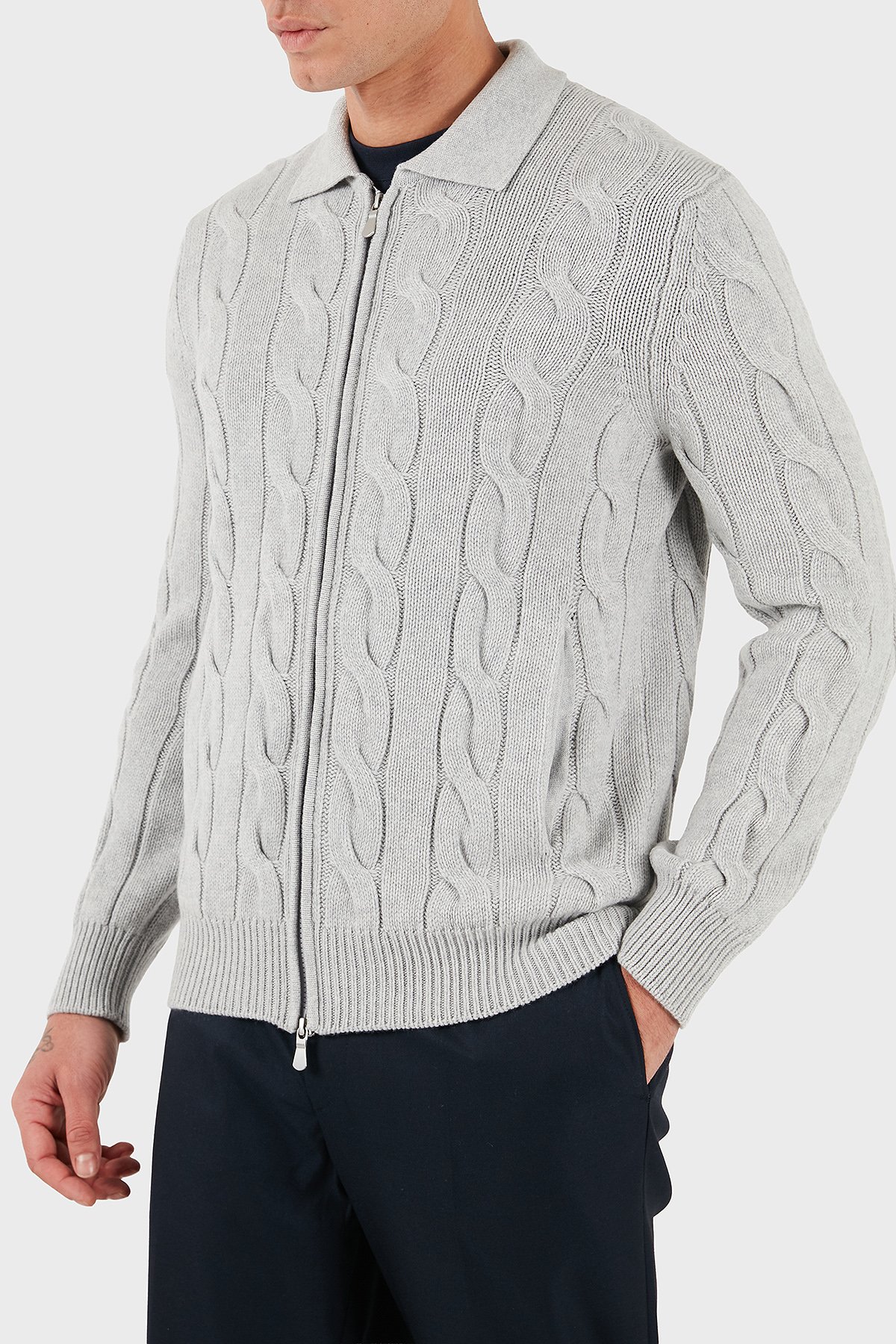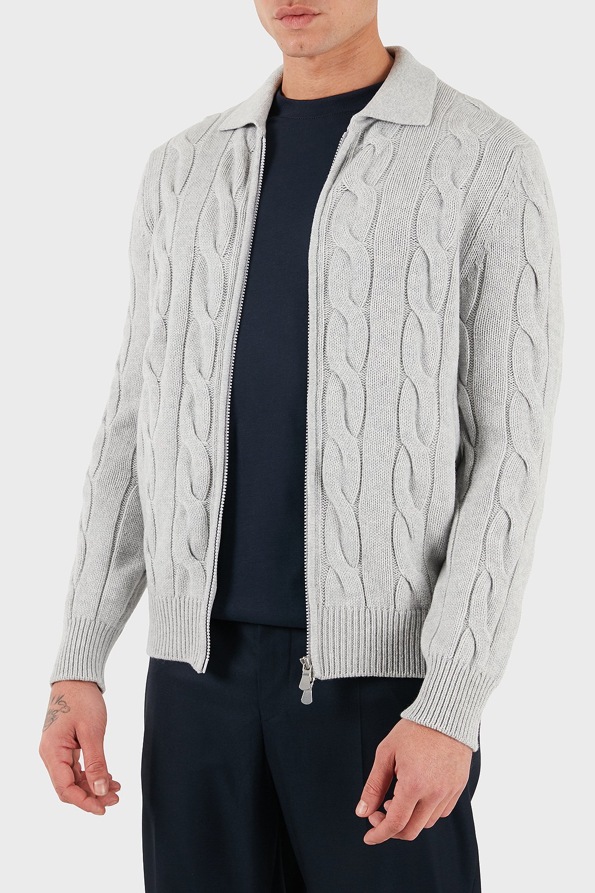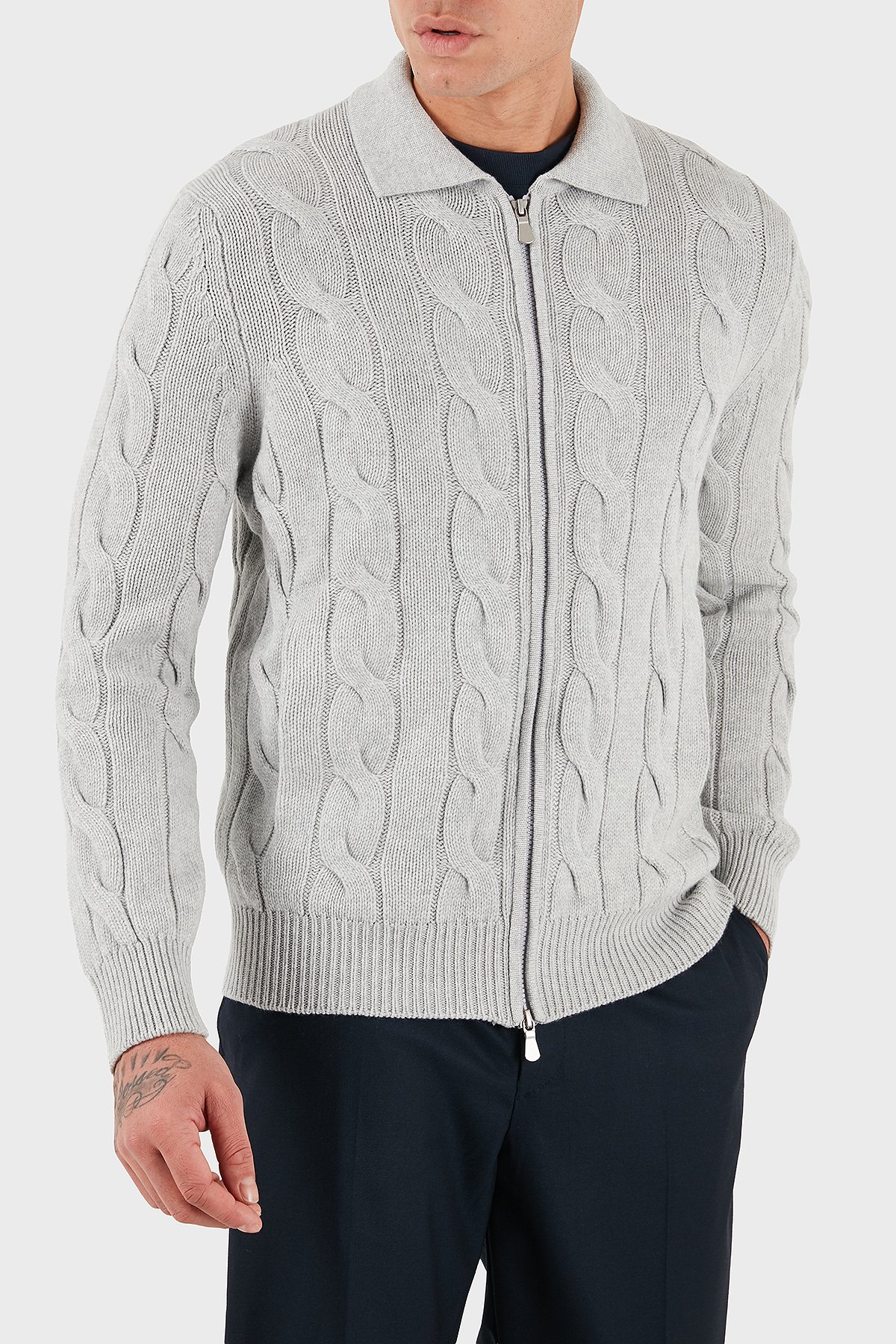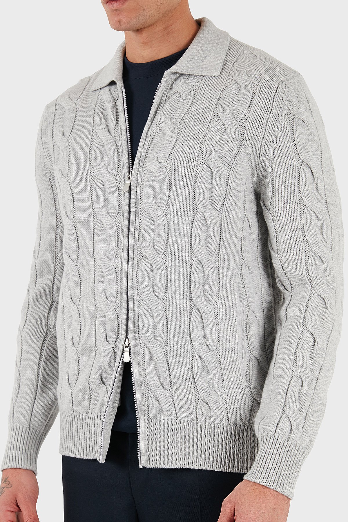 Örgü Desenli Yün ve Kaşmir Karışımlı Regular Fit Erkek Ceket 13180 19652 044 GRİ