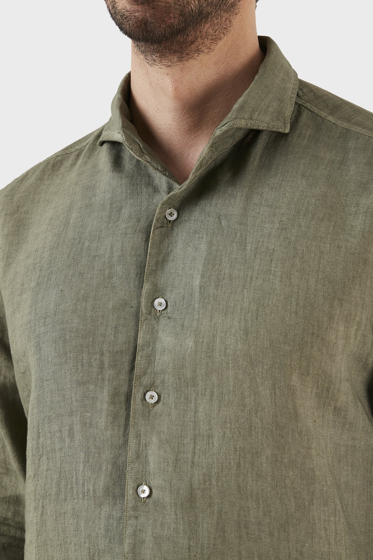 Regular Fit % 100 Keten Erkek Gömlek 61183 50002 810 HAKİ