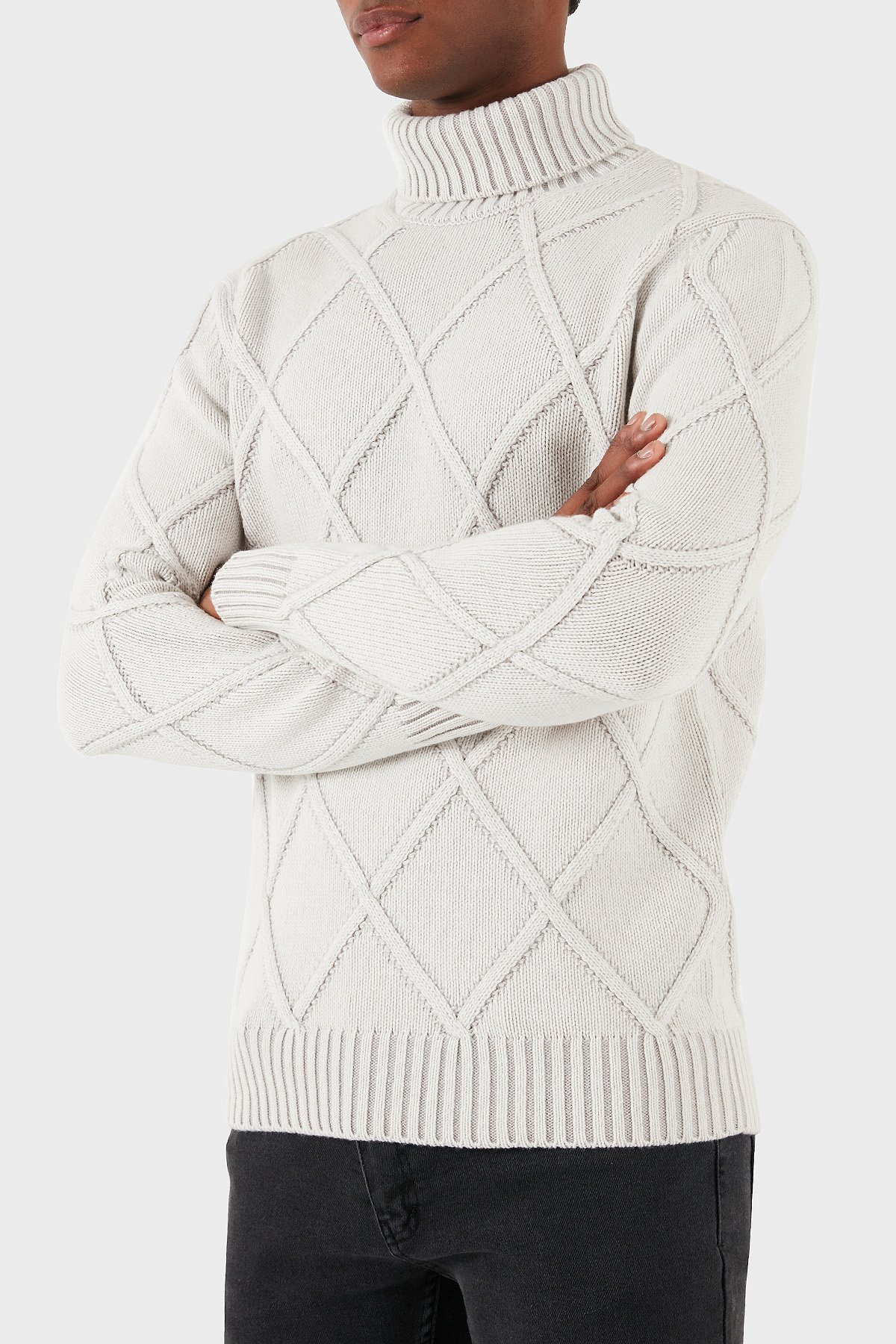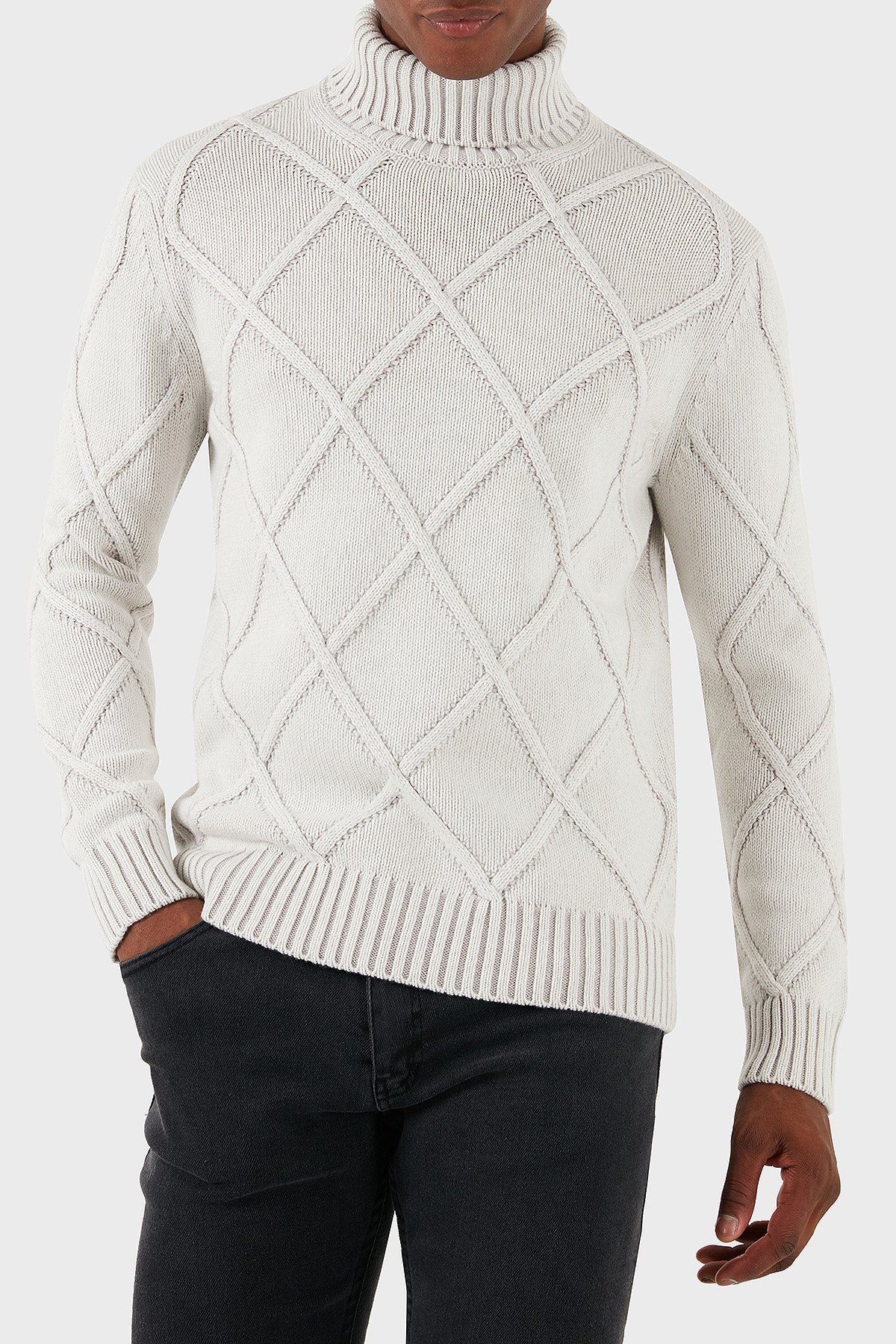 Yün Karışımlı Desenli Regular Fit Balıkçı Yaka Erkek Kazak 13118 19678 812 GRİ