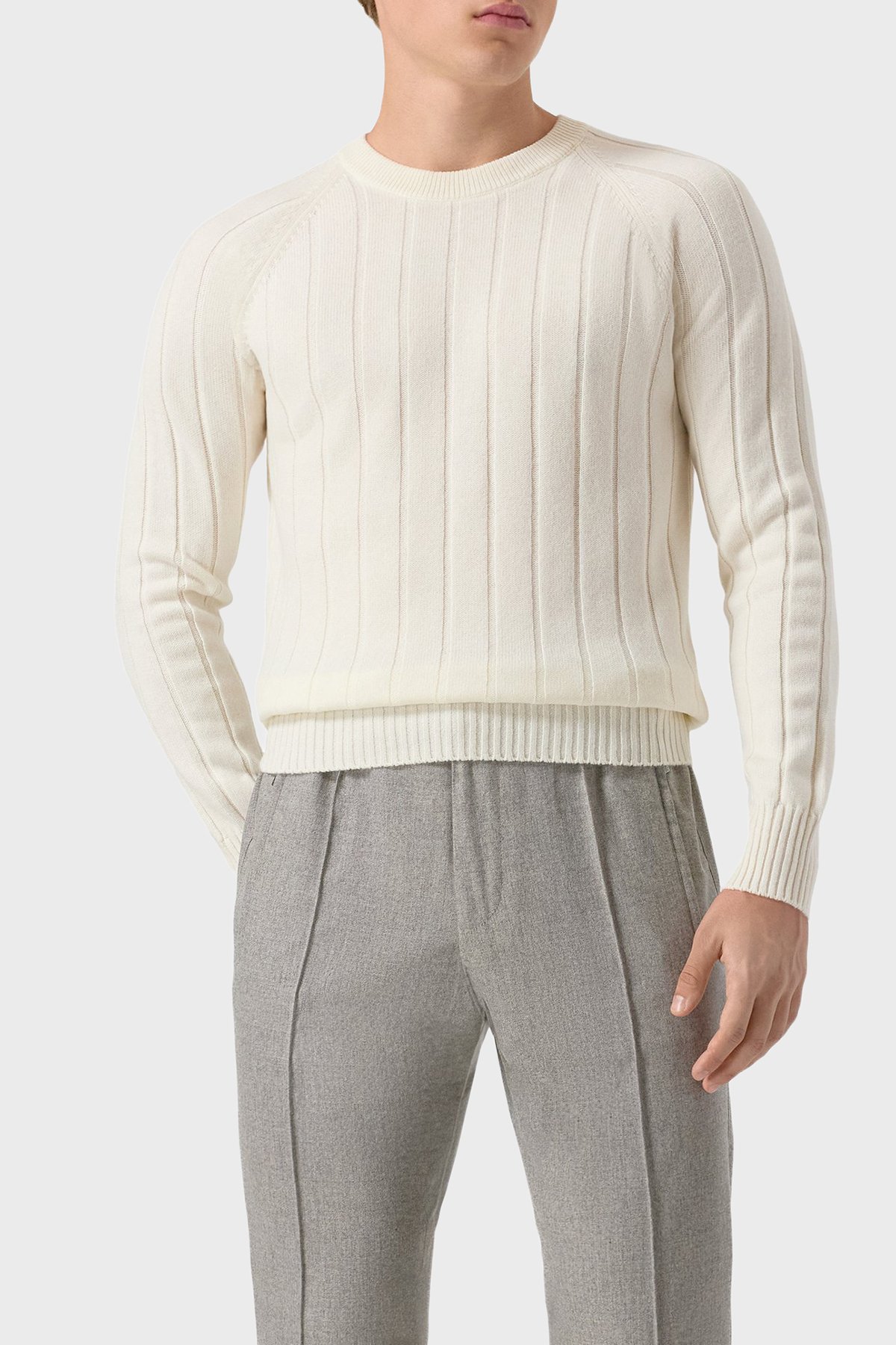 Yün ve Kaşmir Karışımlı Regular Fit Bisiklet Yaka Erkek Kazak 23135 19657 001 EKRU