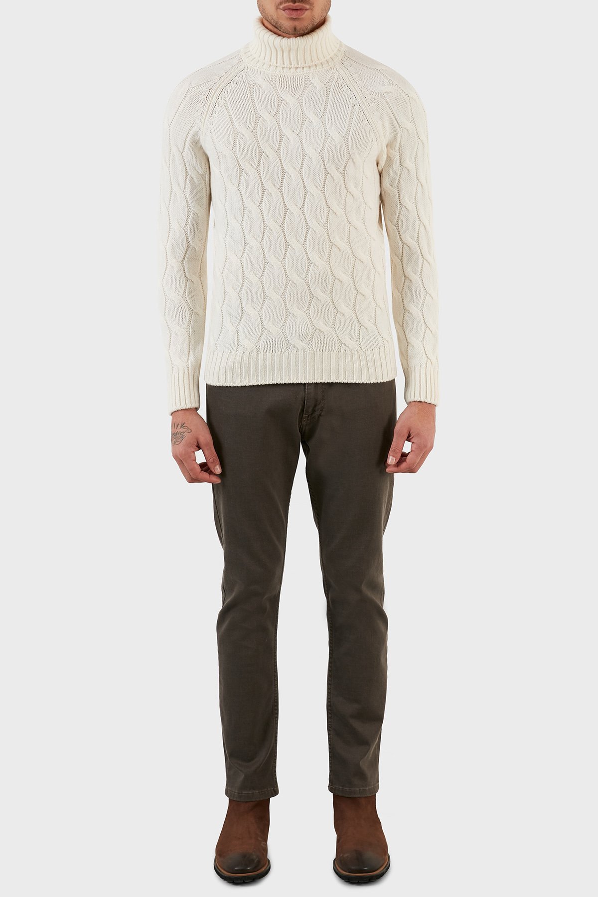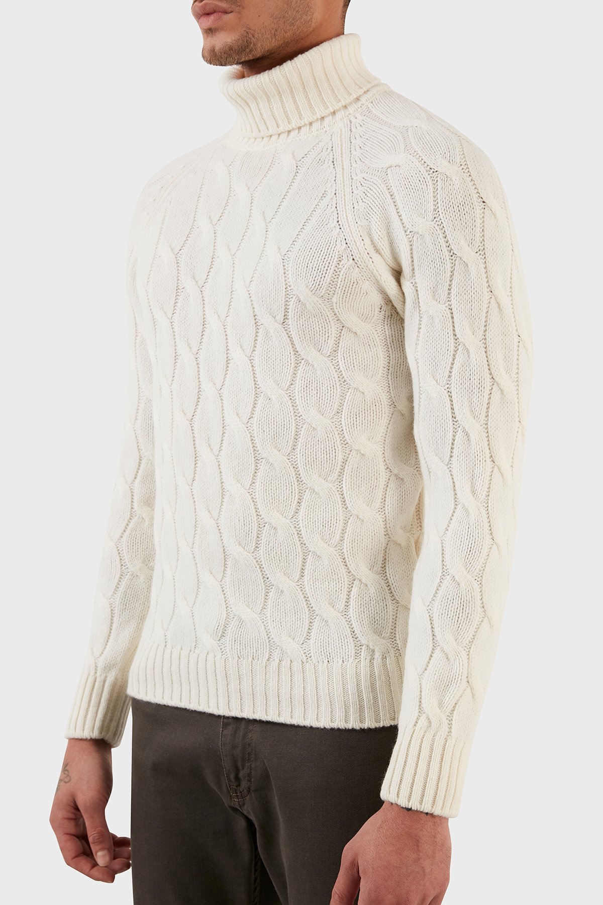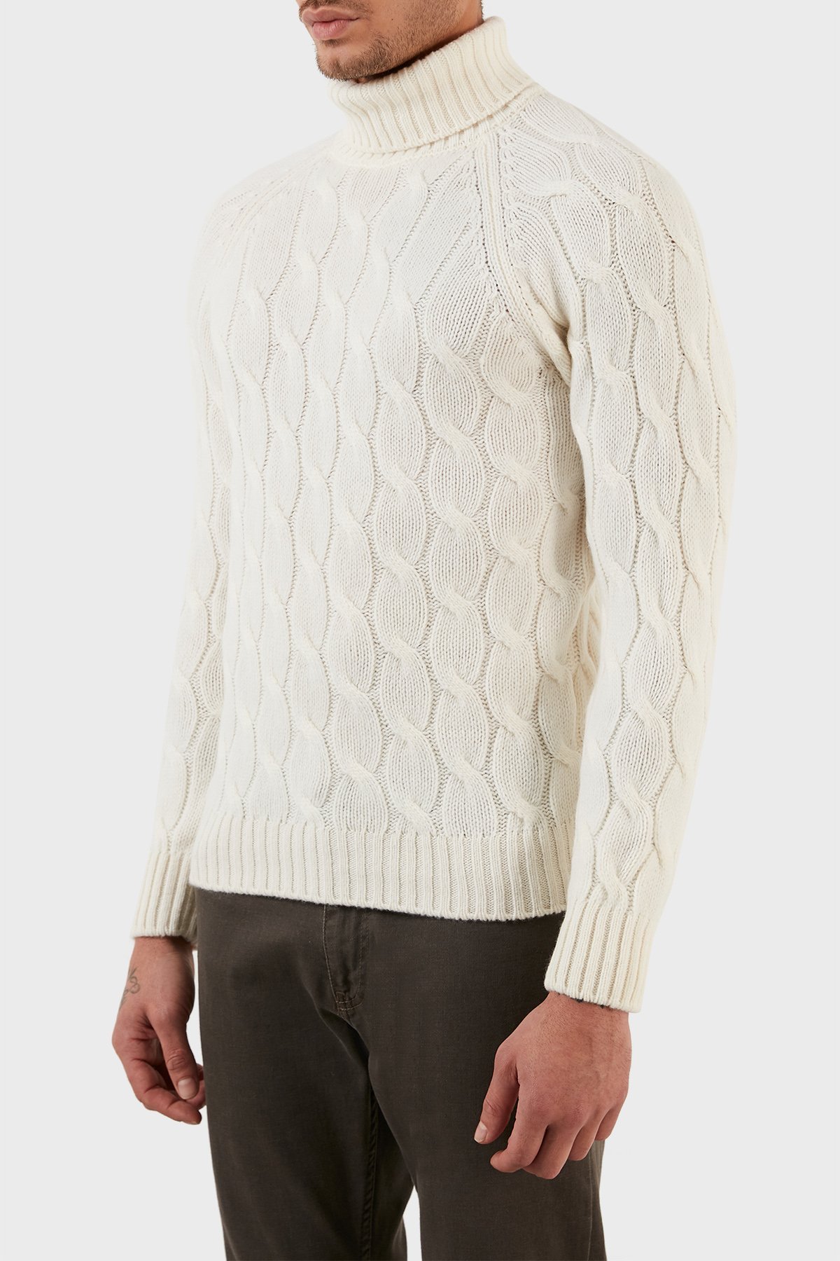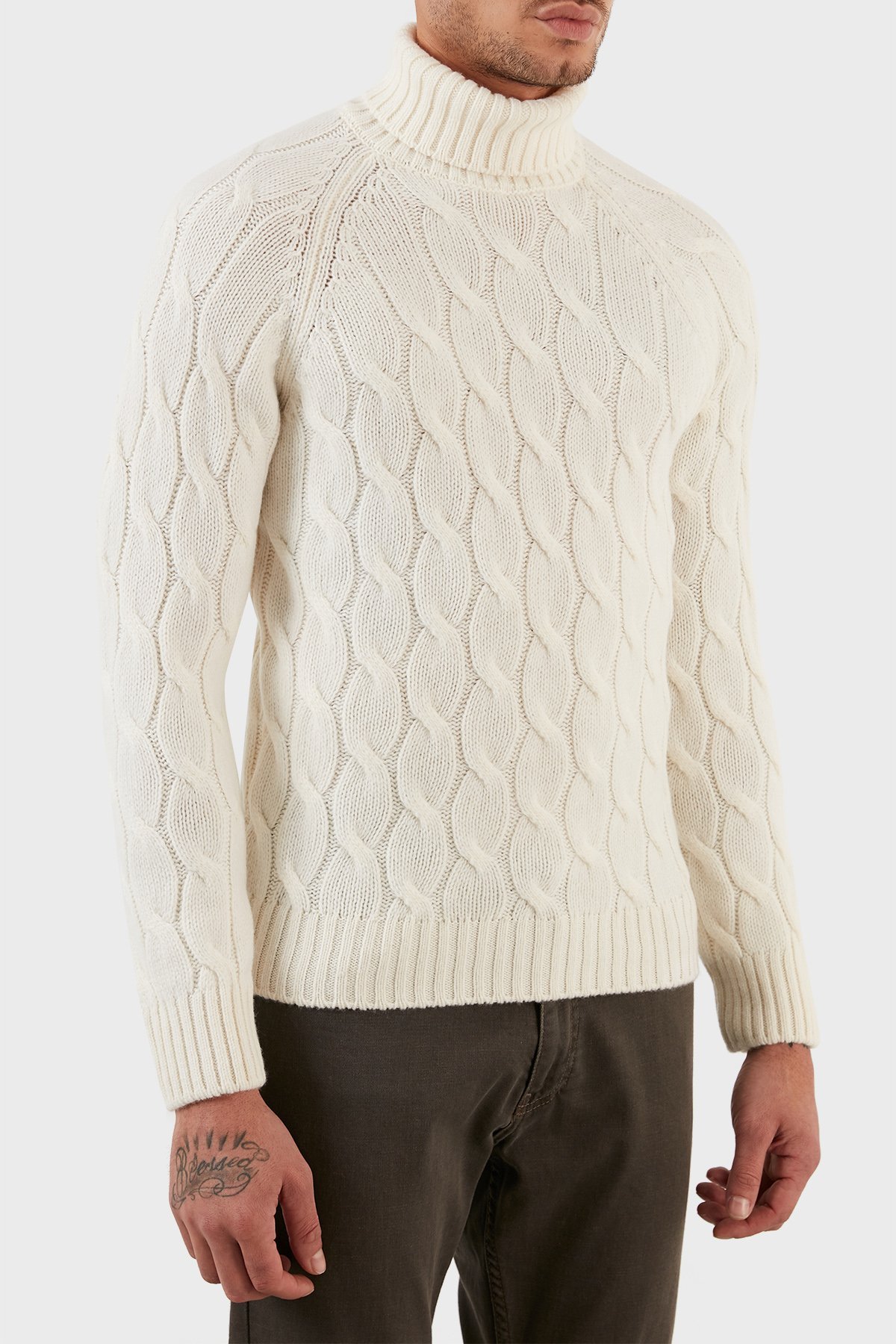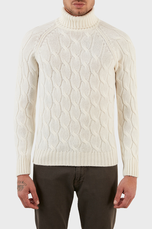 Yünlü Balıkçı Yaka Örgü Desenli Erkek Kazak 13117 22622 005 EKRU