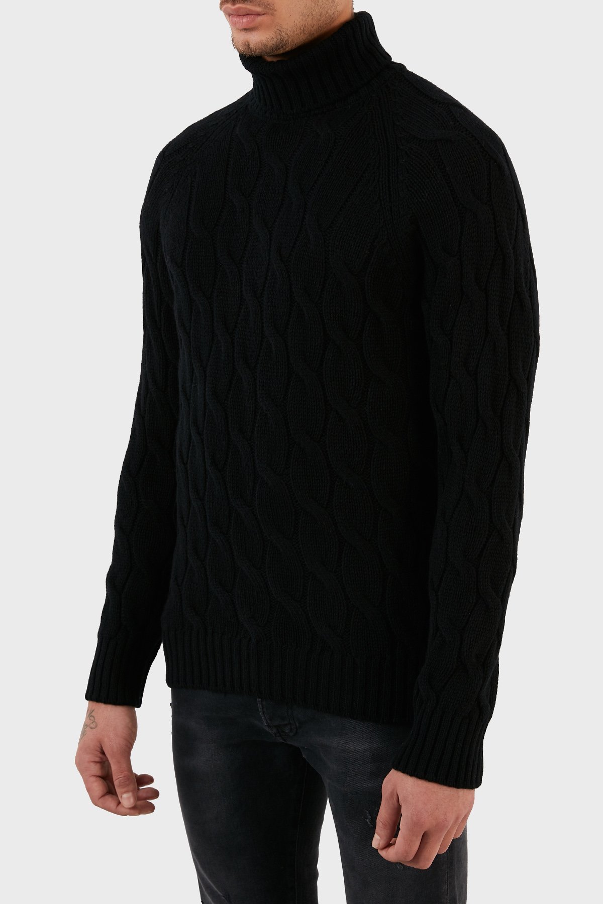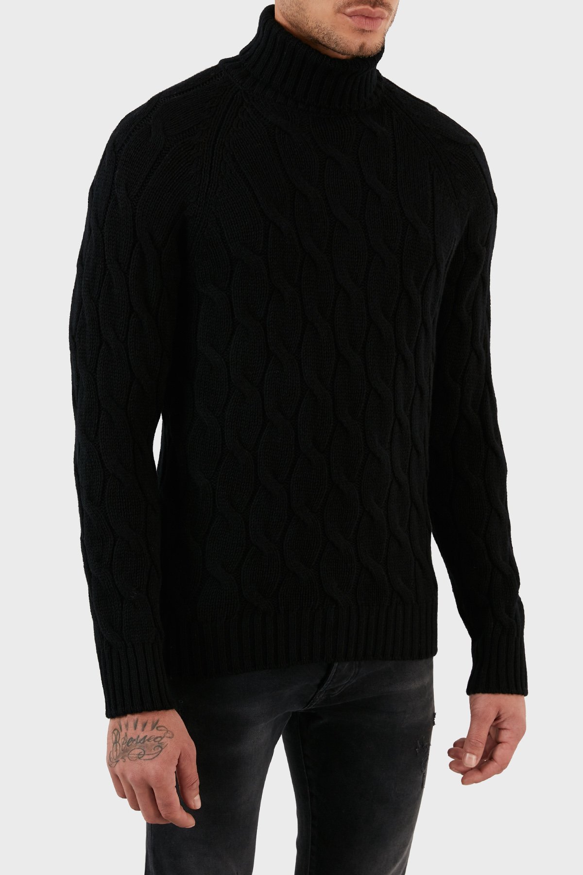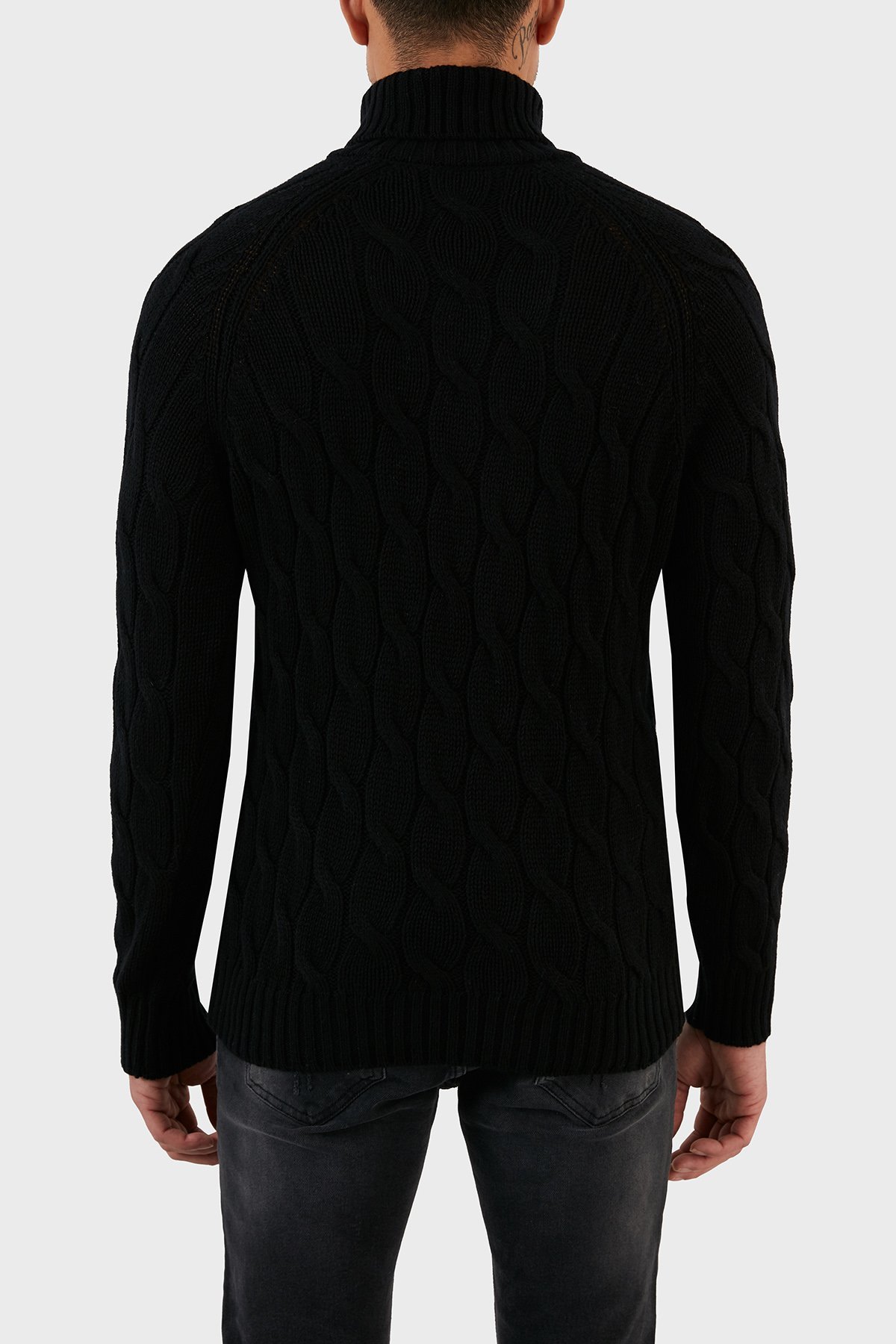 Yünlü Balıkçı Yaka Örgü Desenli Erkek Kazak 13117 22622 099 SİYAH