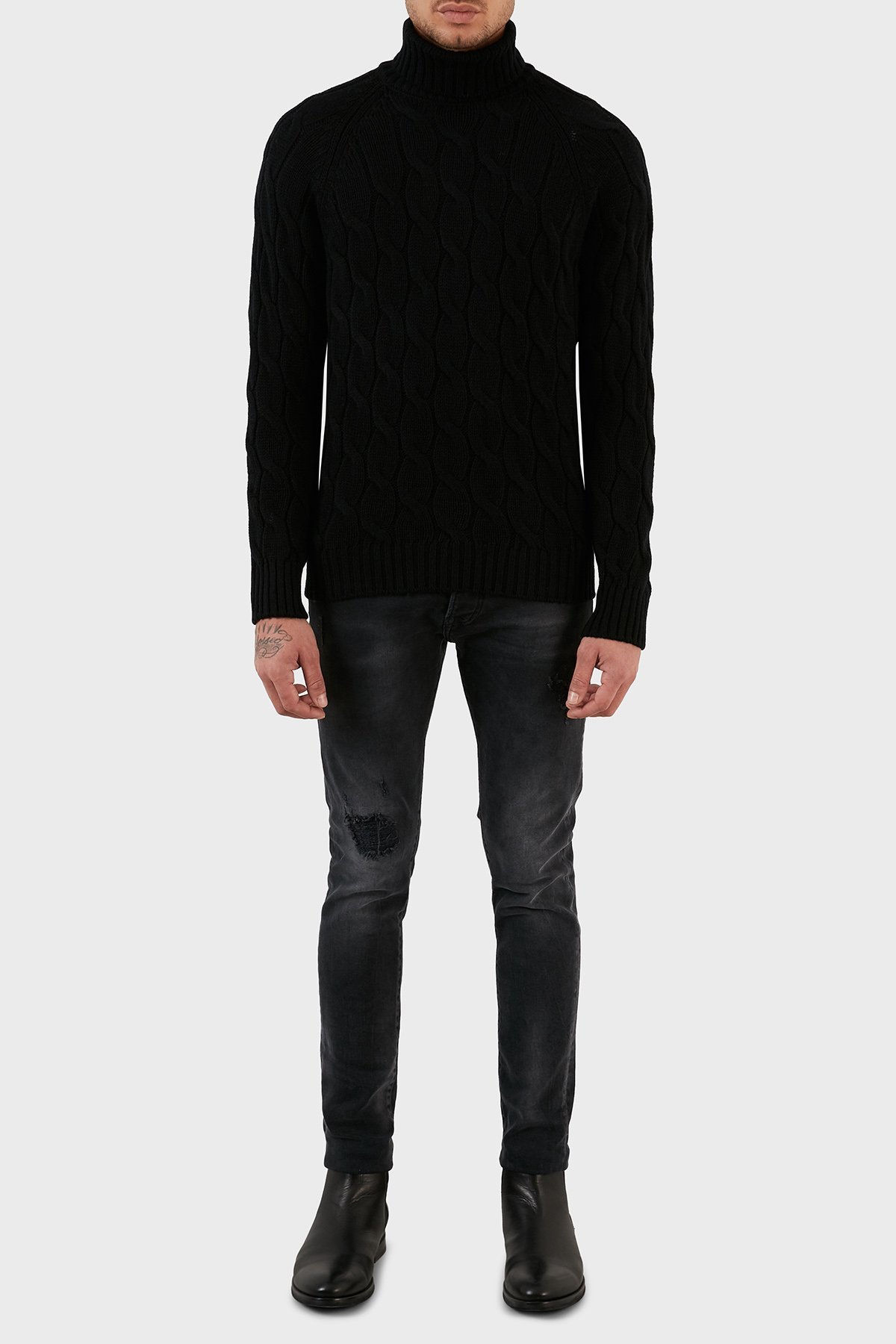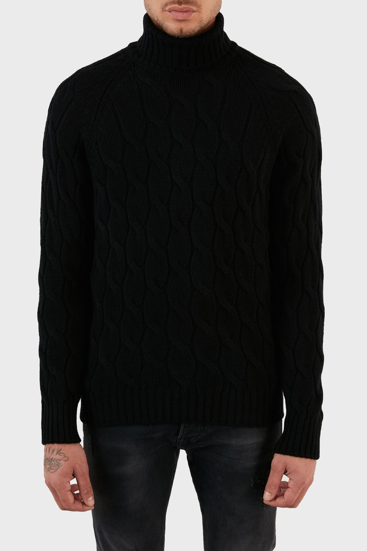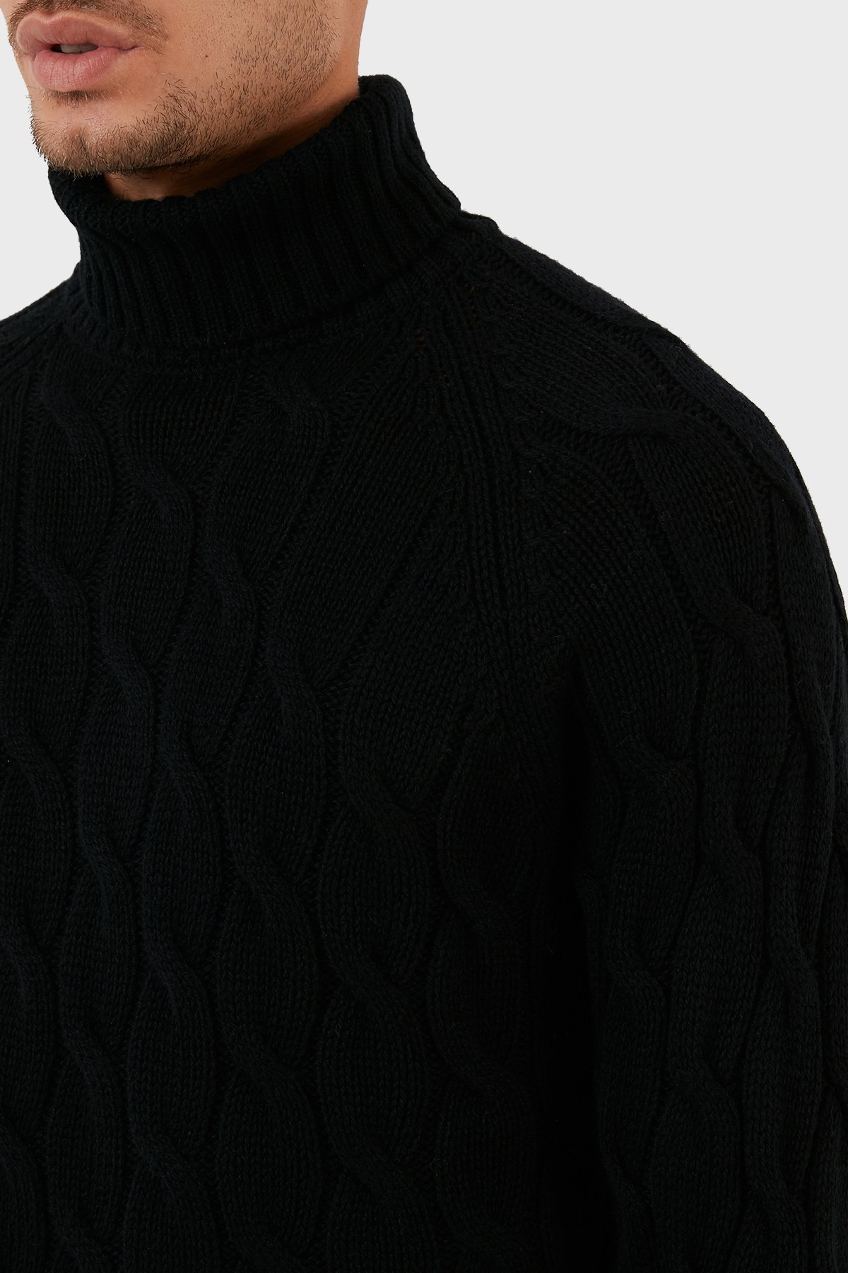 Yünlü Balıkçı Yaka Örgü Desenli Erkek Kazak 13117 22622 099 SİYAH