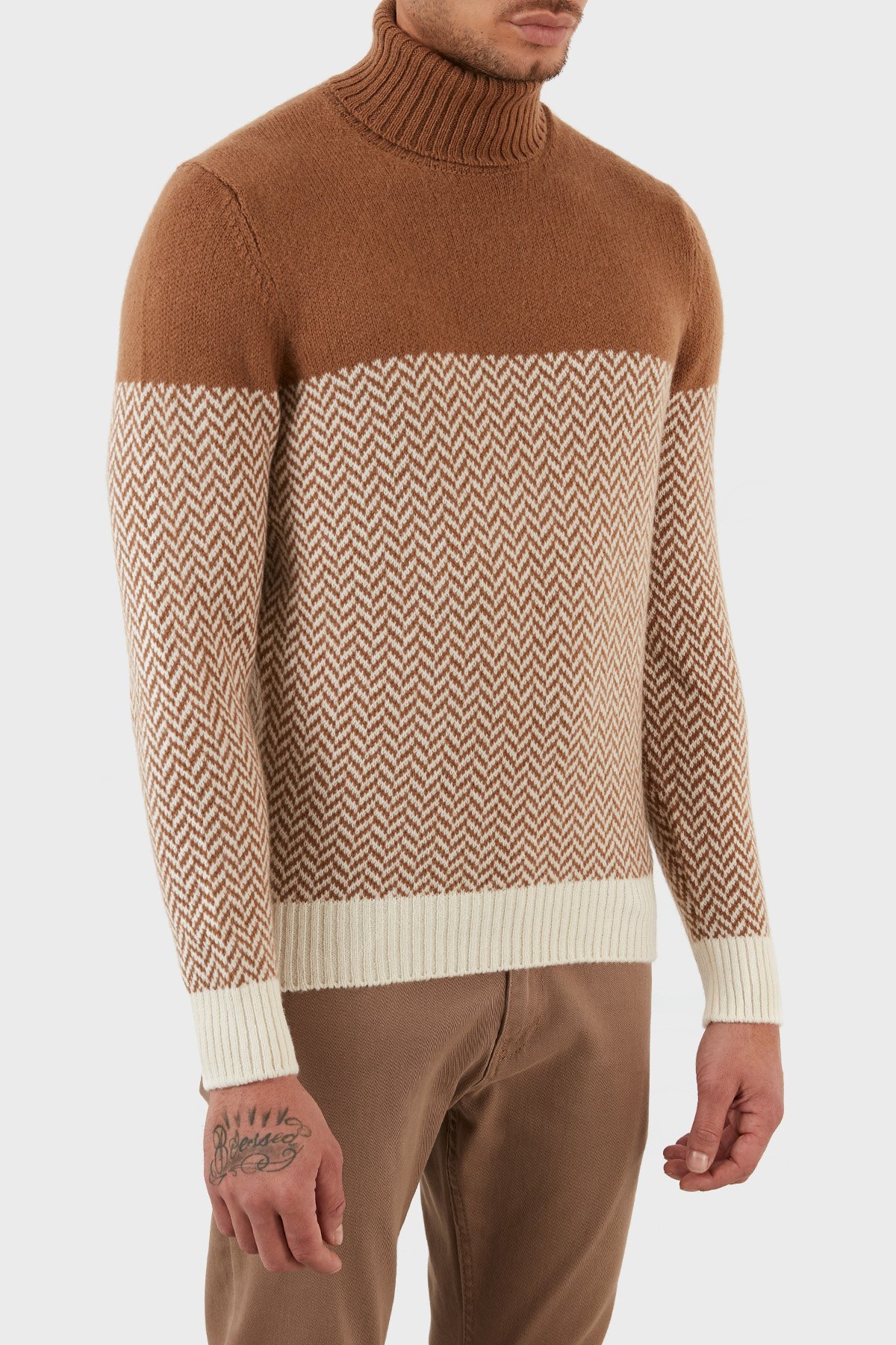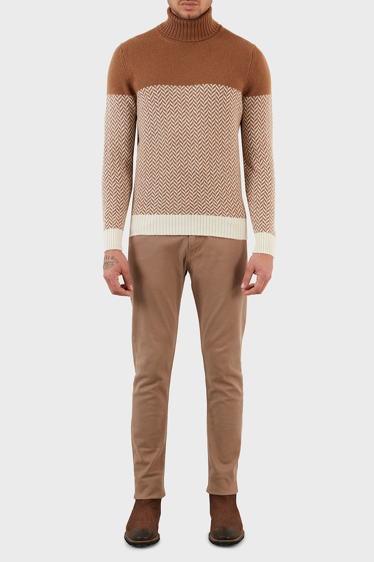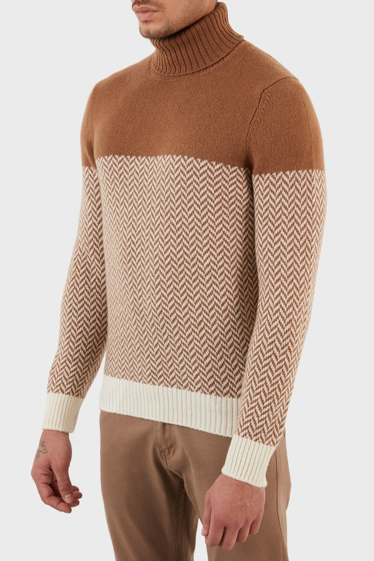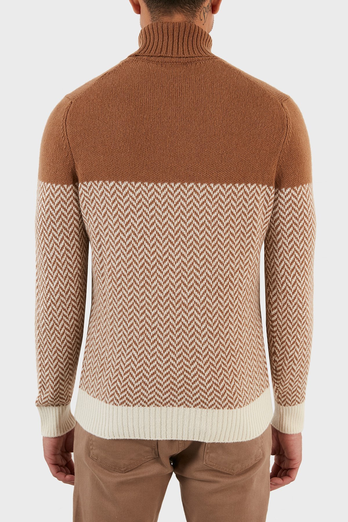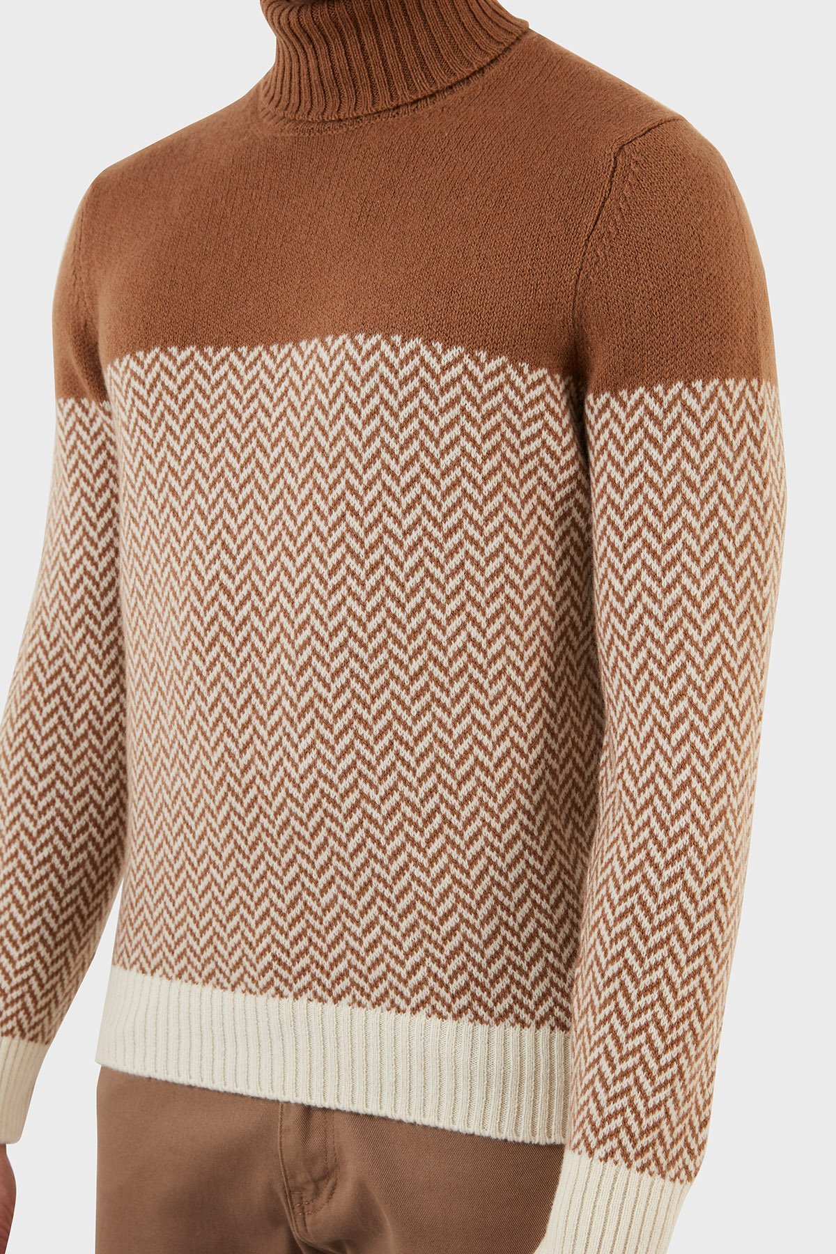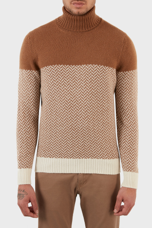 Yünlü Desenli Balıkçı Yaka Erkek Kazak 13117 22617 006 KAHVE