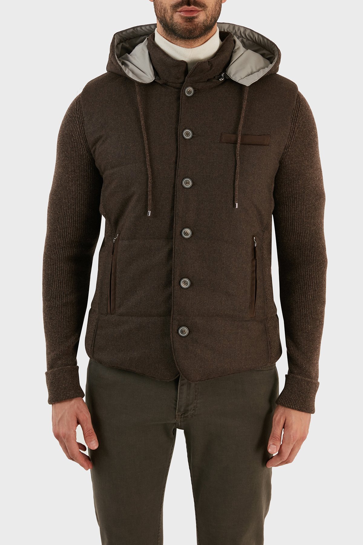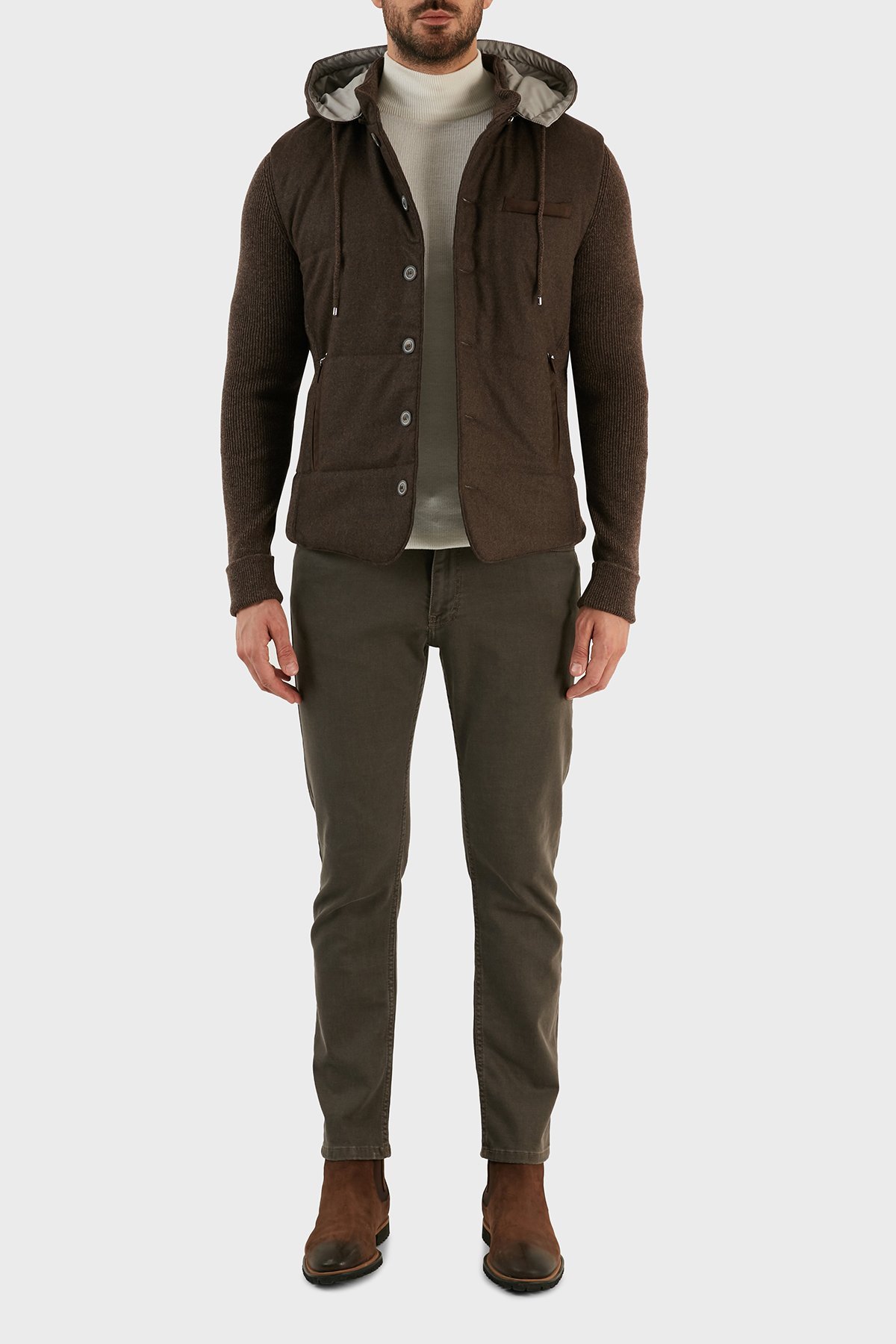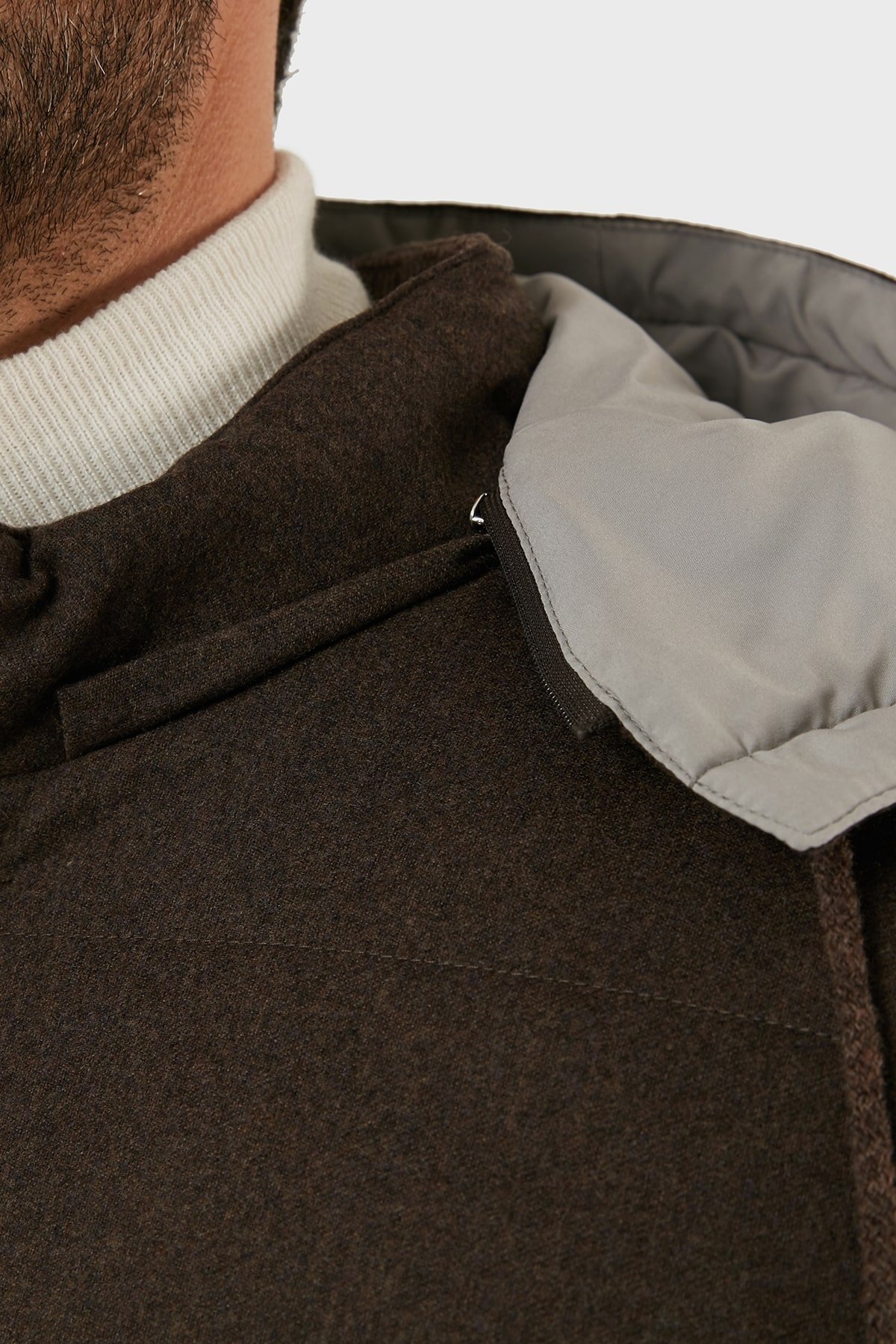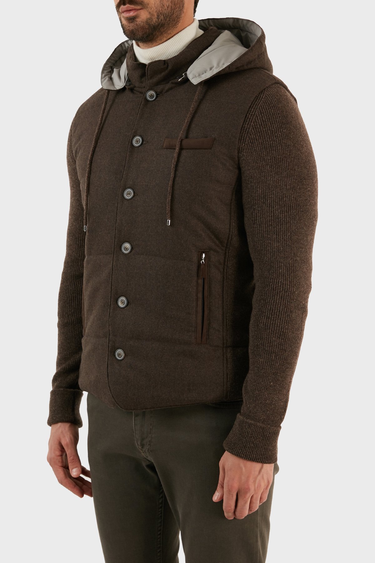 Yünlü Düğmeli Çıkarılabilir Kapüşonlu Erkek Mont 23191 51303 194 KAHVE