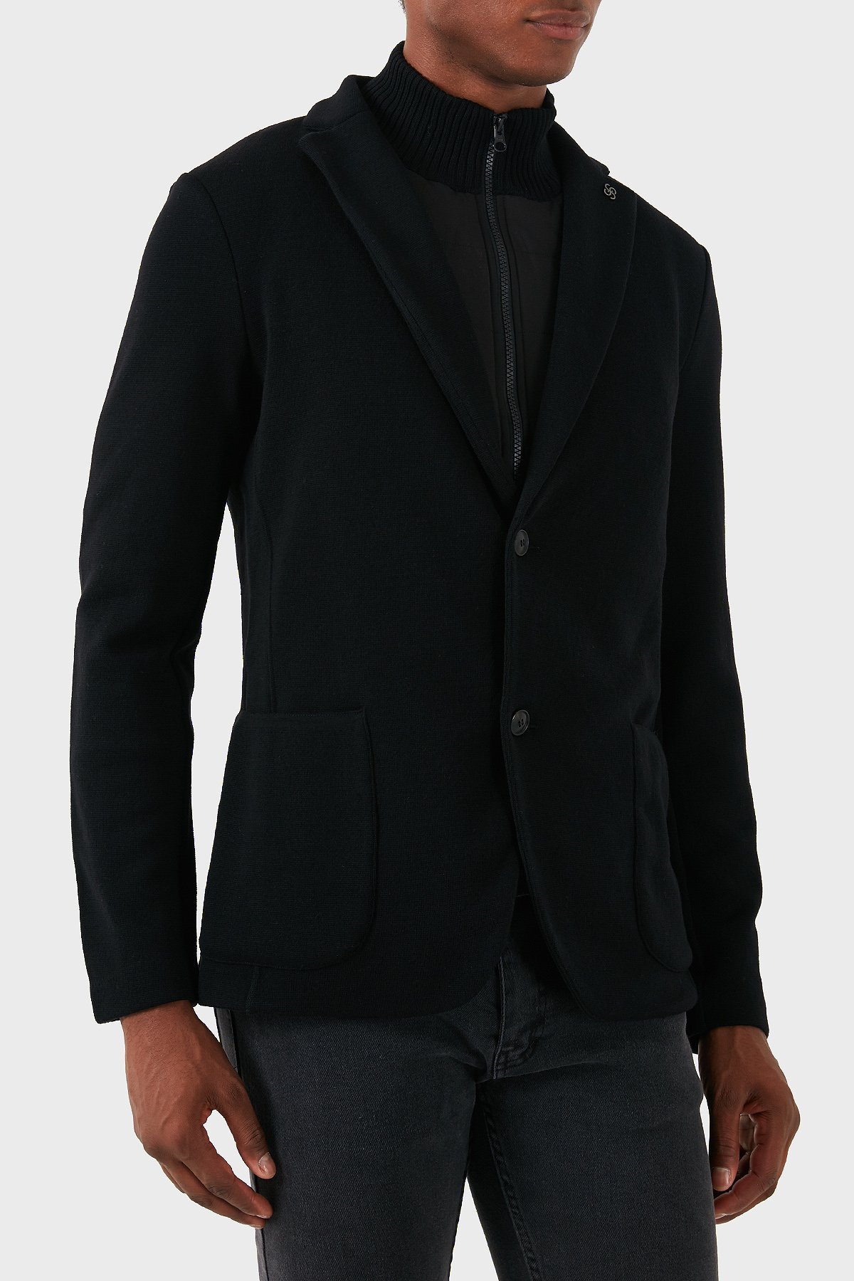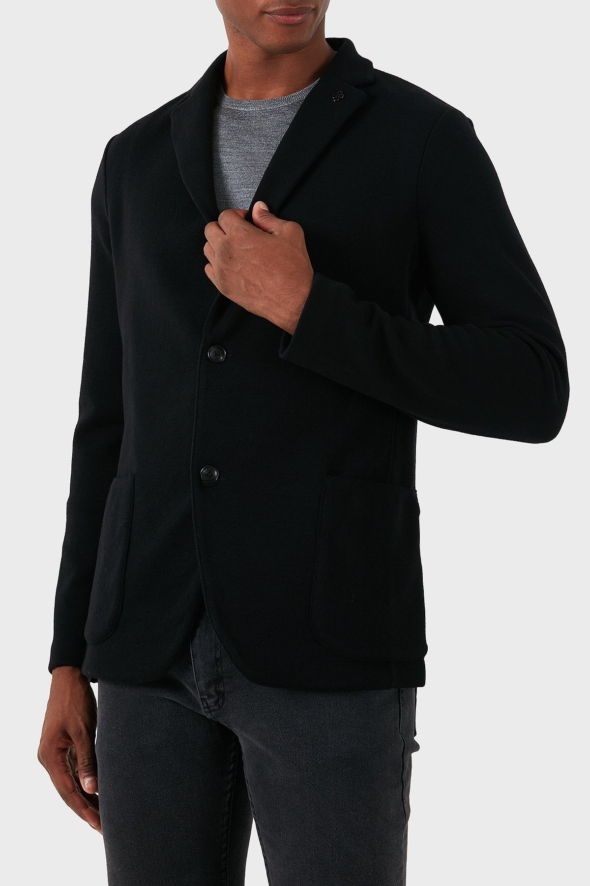Yünlü İç Katmanlı Dik Yaka Blazer Erkek Ceket 57199 24616 099 SİYAH