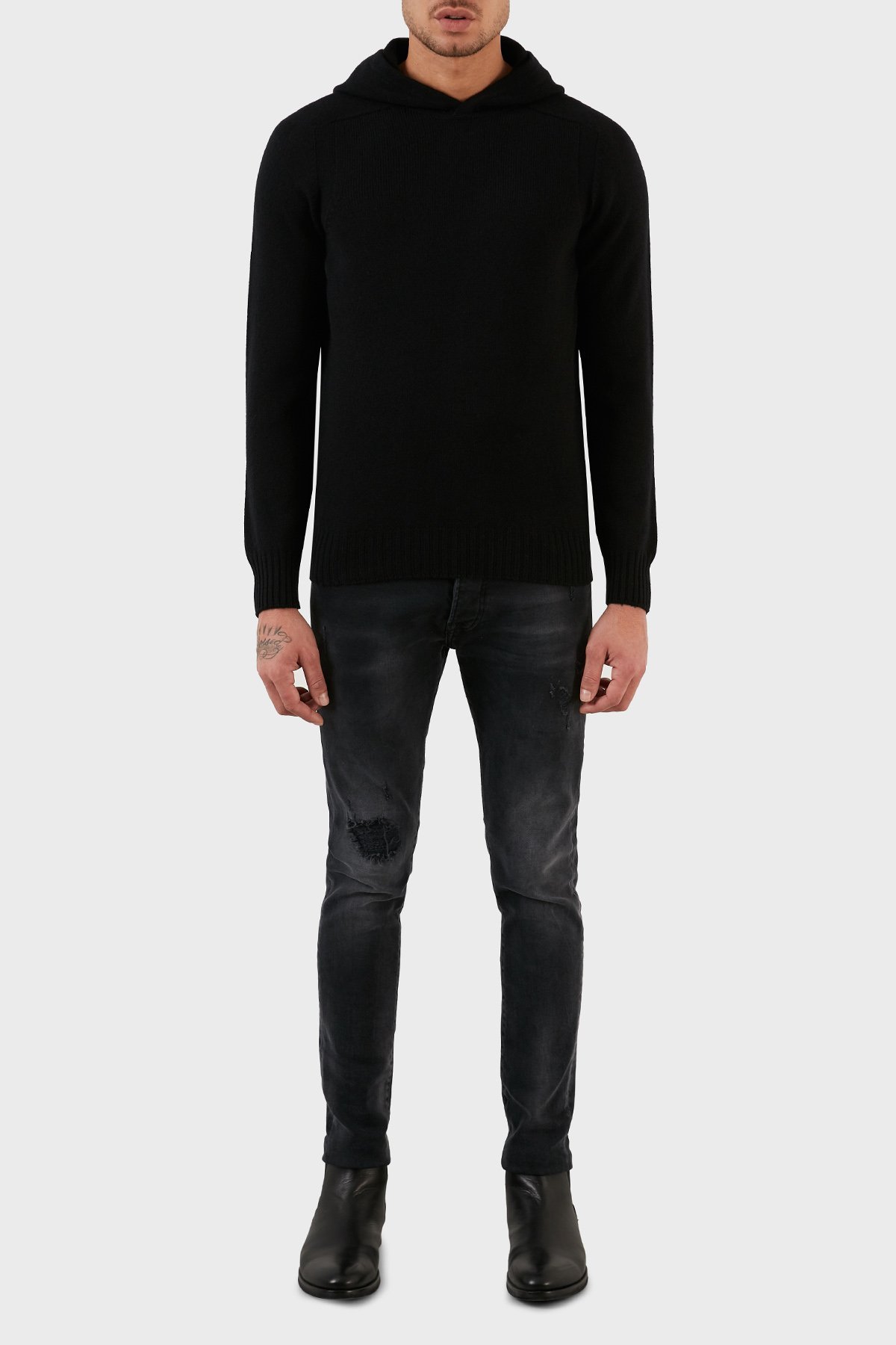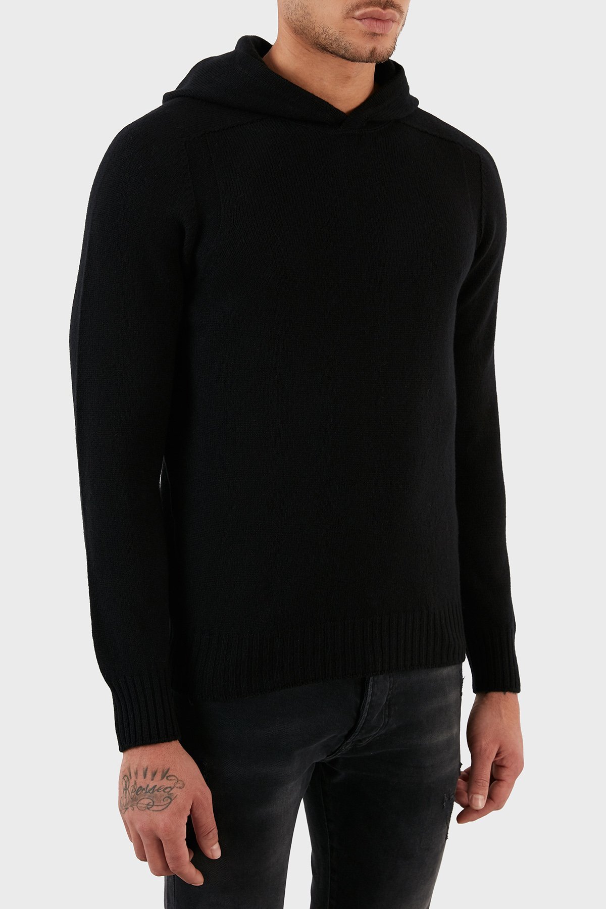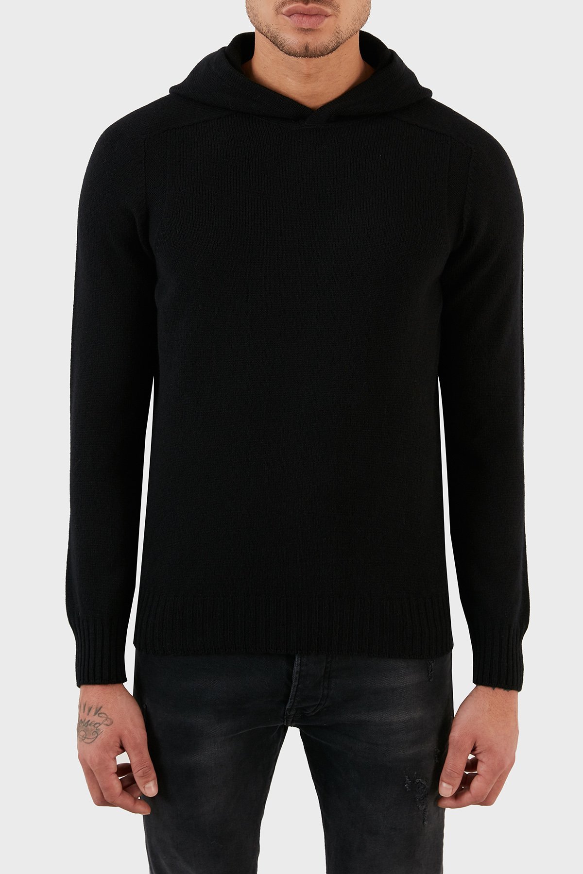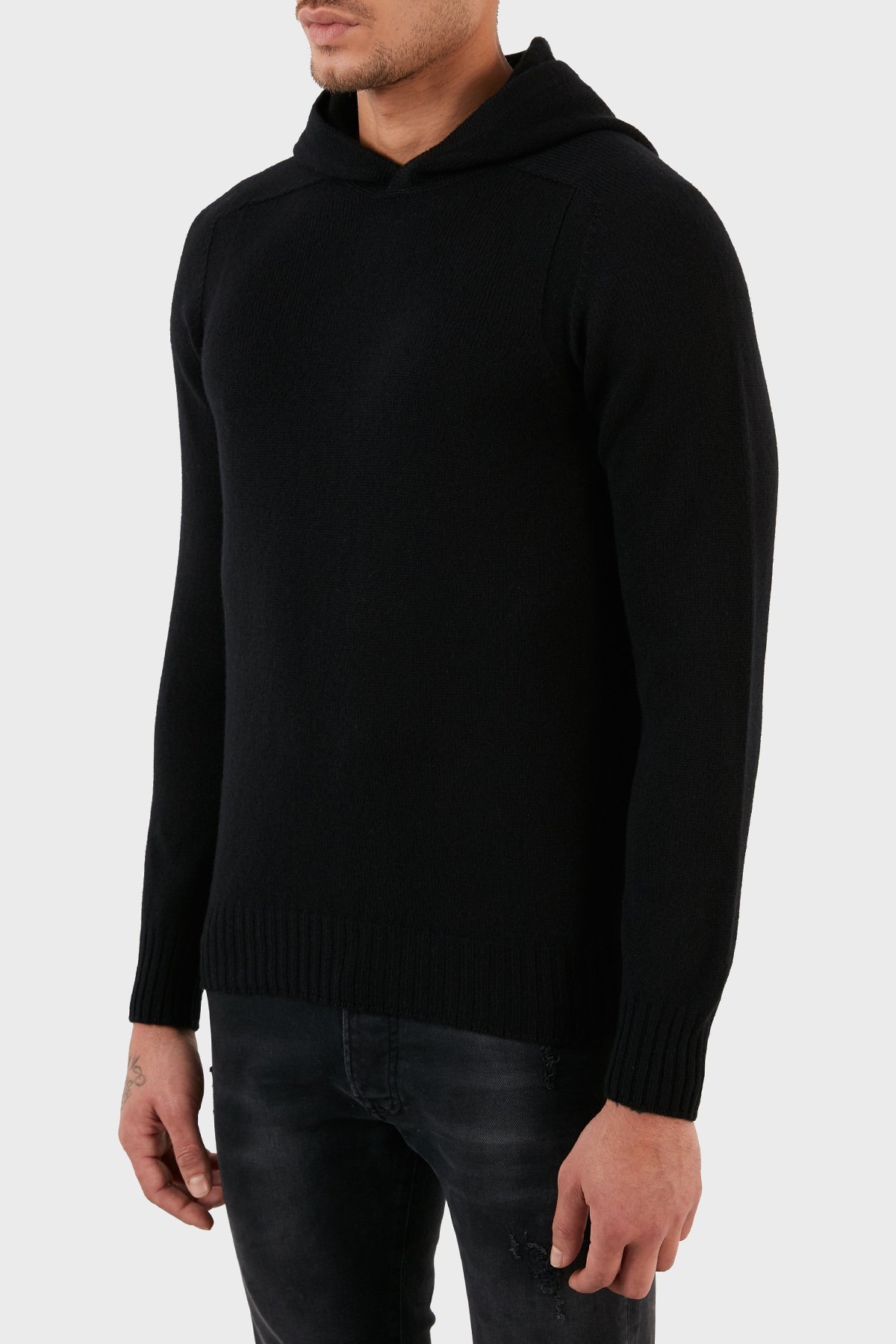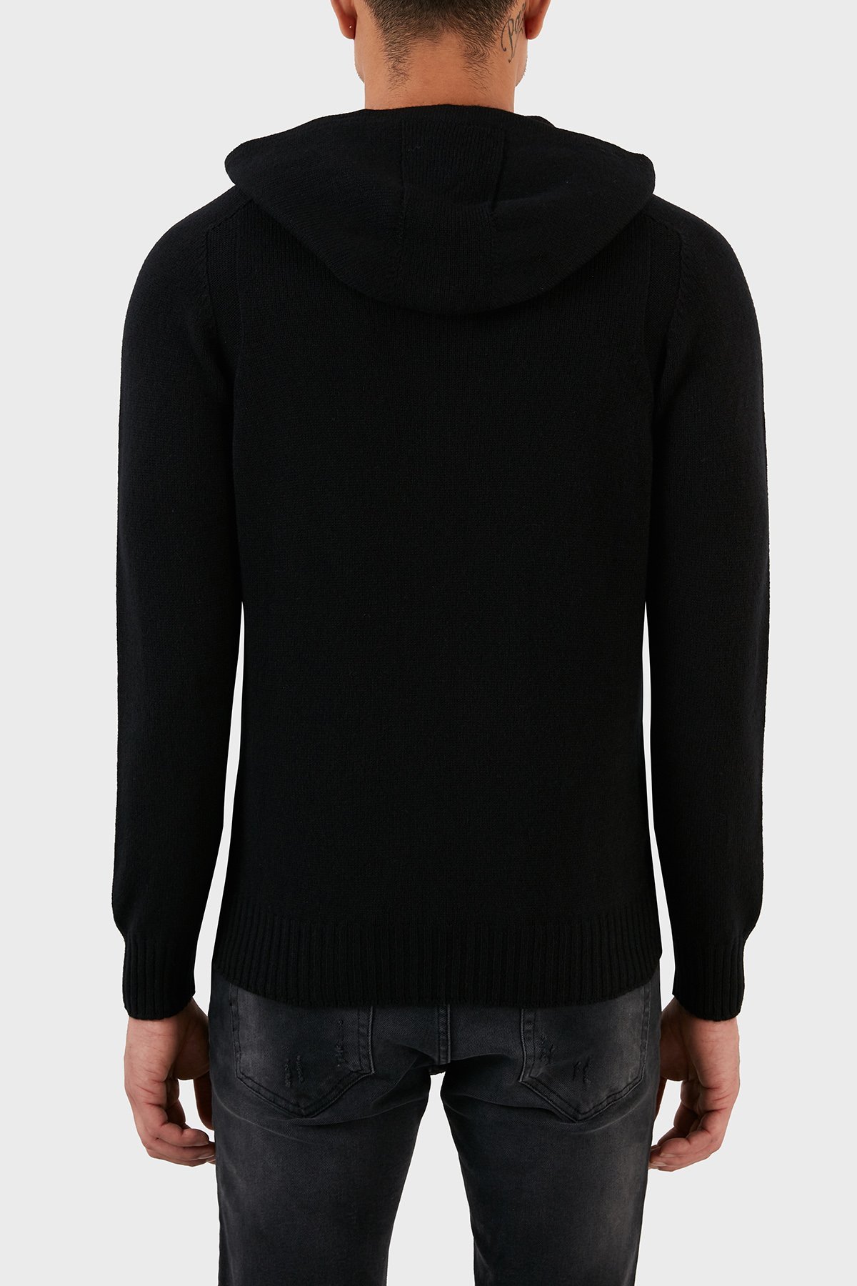 Yünlü Yumuşak Dokulu Kapüşonlu Erkek Kazak 24122 25024 099 SİYAH