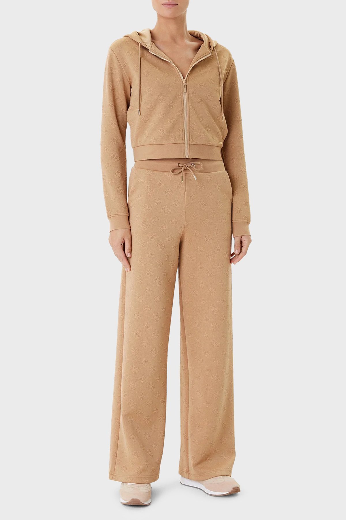 3D Peony Jakarlı Regular Fit Kapüşonlu Crop V5YQ06KBSL2 Bayan Sweat V5YQ06 KBSL2 FNDQ VİZON