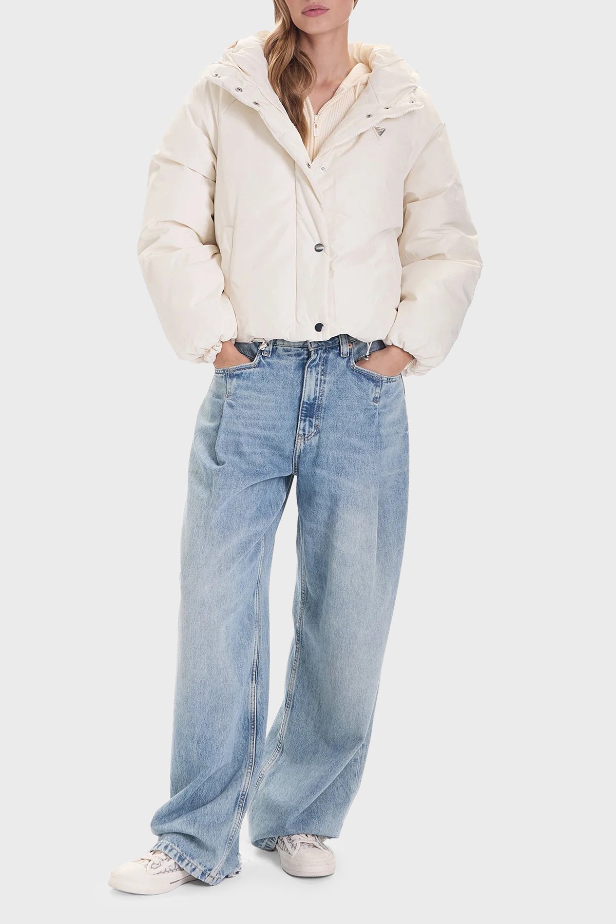 4G Boxy Tamamı Logolu Relaxed Fit Kapüşonlu Şişme V5BL07WGLW2 Bayan Mont V5BL07 WGLW2 F0YN EKRU