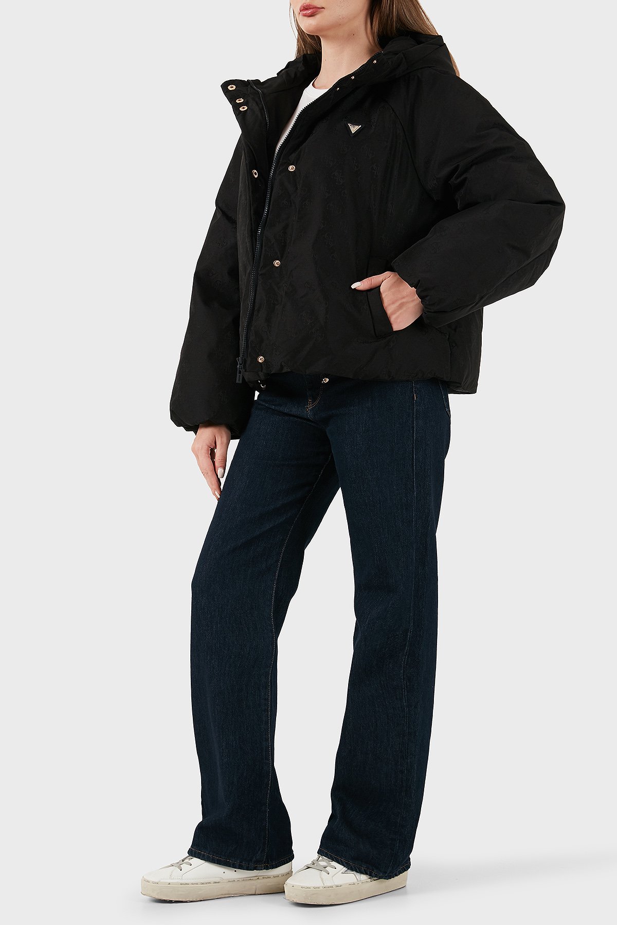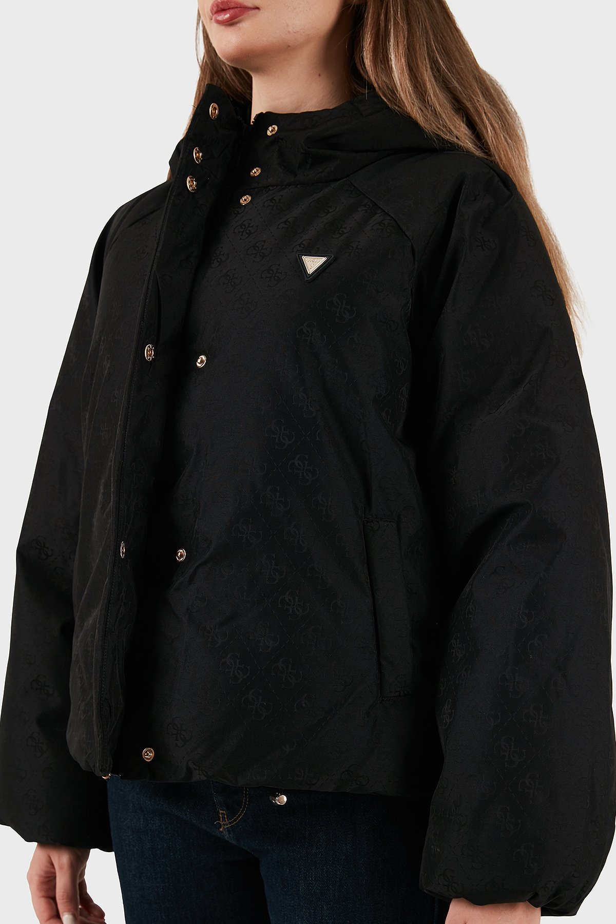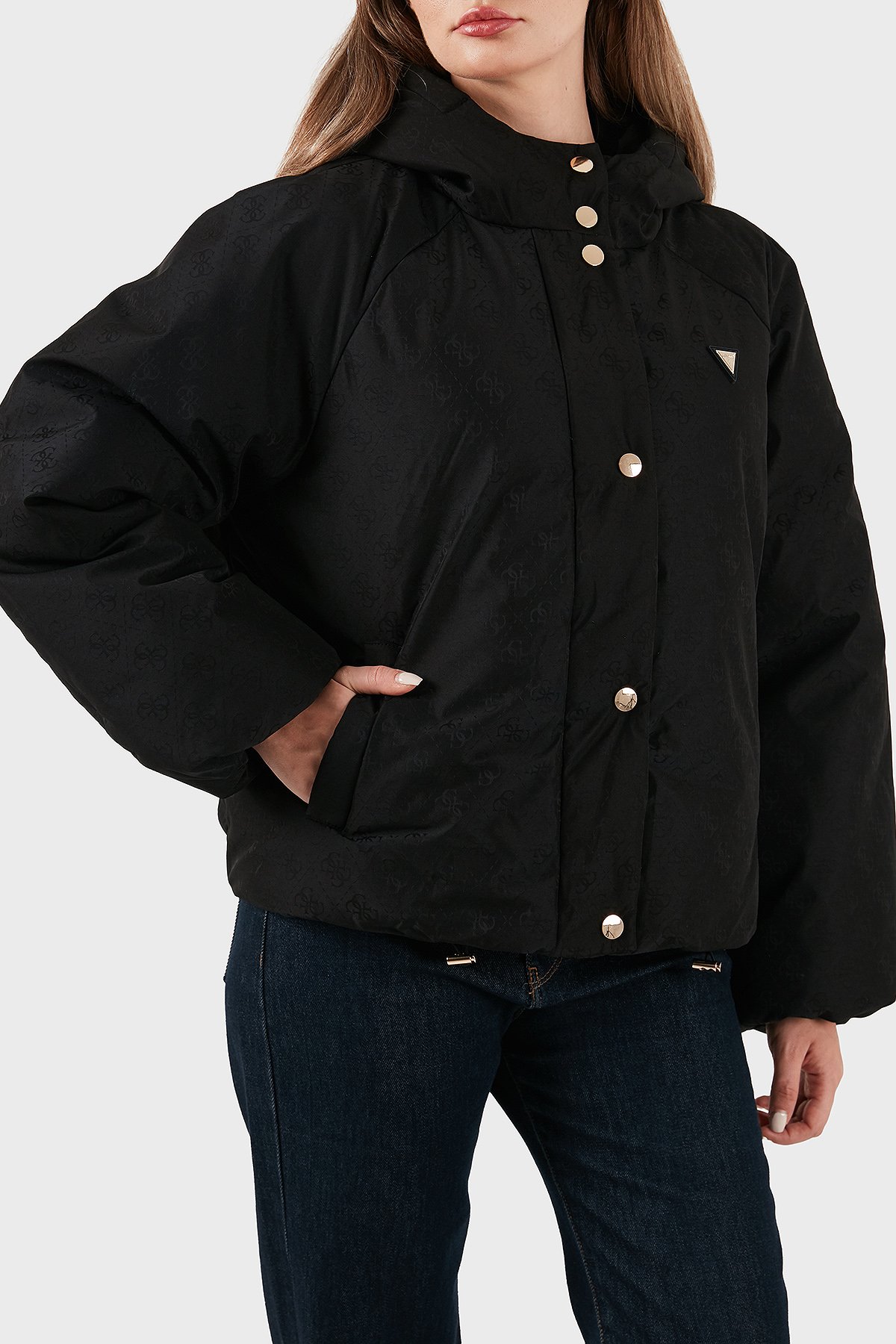 4G Boxy Tamamı Logolu Relaxed Fit Kapüşonlu Şişme V5BL07WGLW2 Bayan Mont V5BL07 WGLW2 FJ9G SİYAH