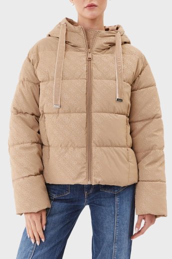 4G Logo Su İtici Rüzgar Geçirmez Kapüşonlu Şişme Bayan Mont W3BL22WFQU0 G1J7 BEJ